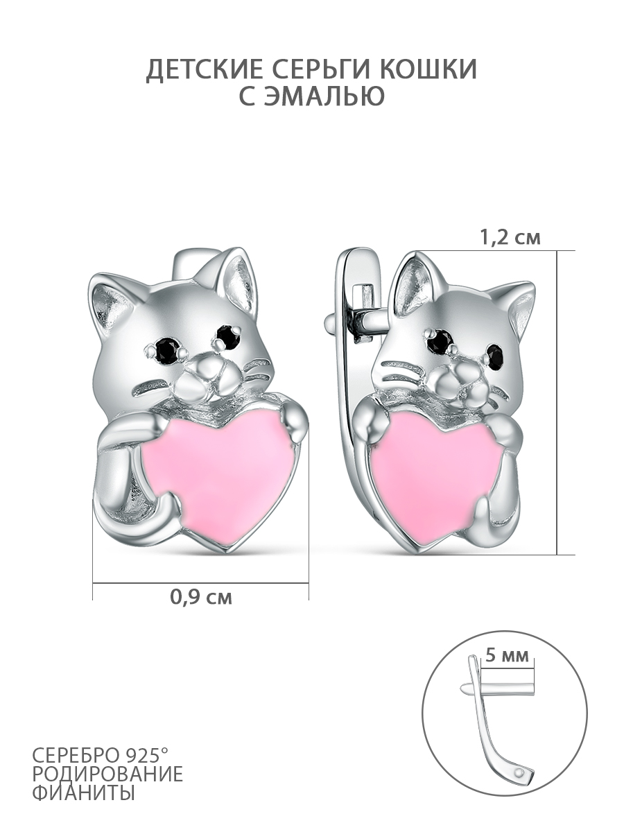 Серьги из серебра с эмалью и фианитами родированные 2313063