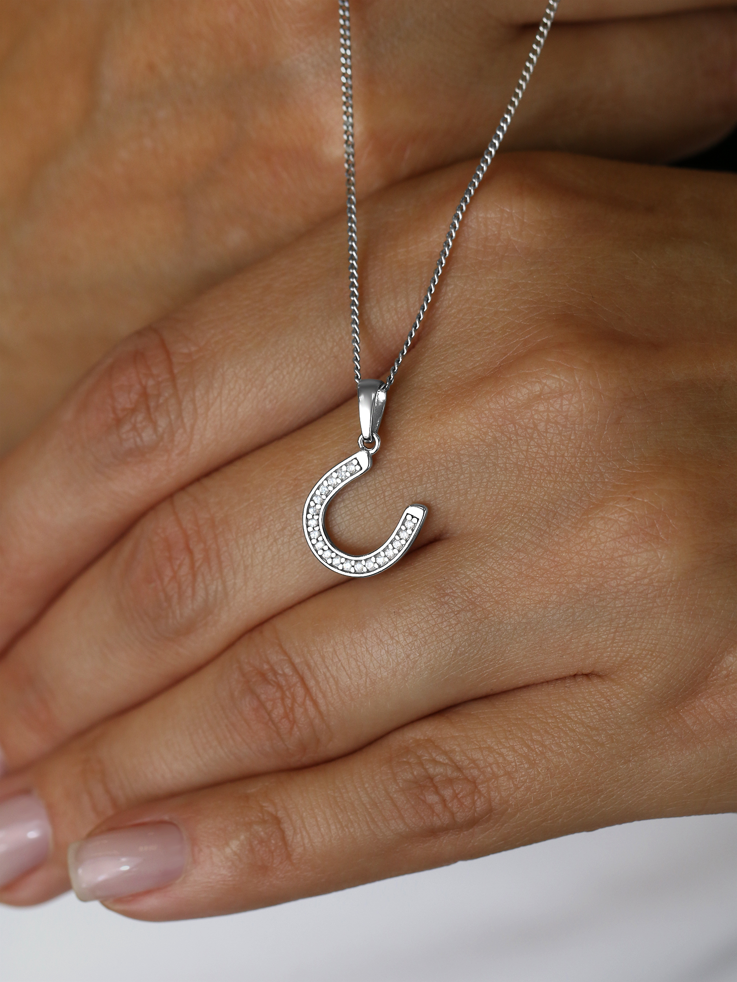 Подвеска из серебра с фианитами родированная - Подкова на удачу 3-002р200