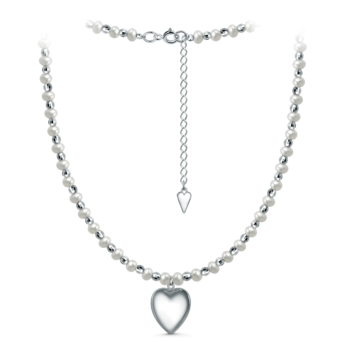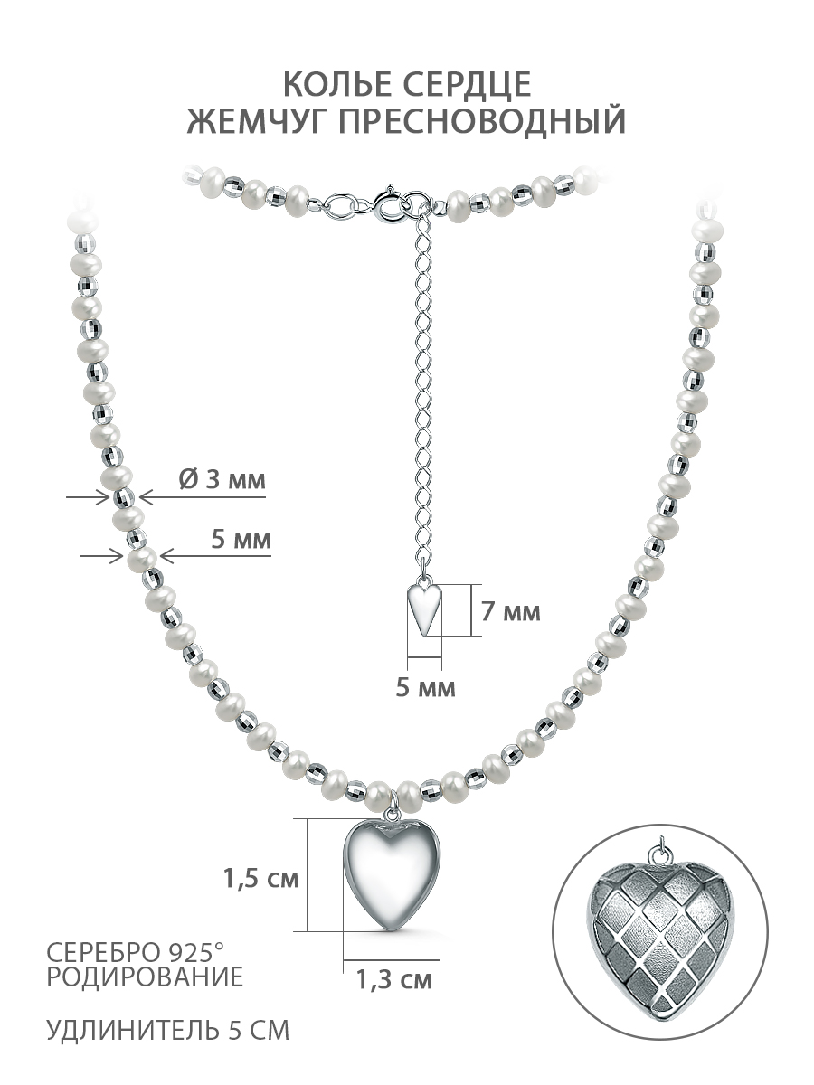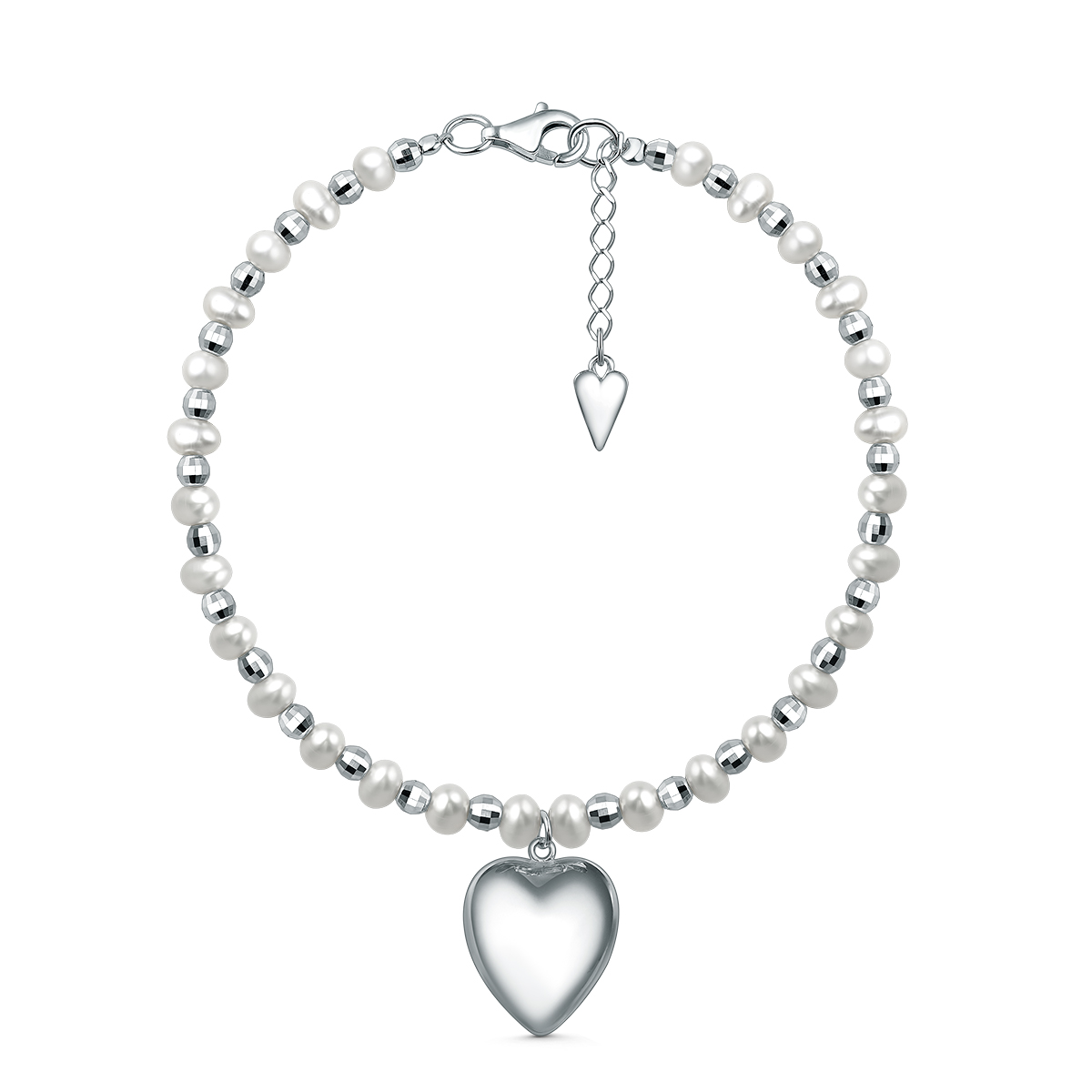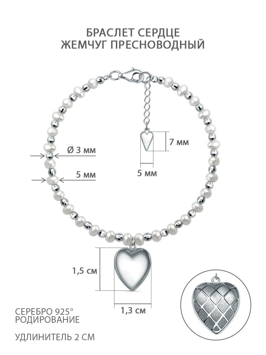 Браслет из серебра с пресноводным культивированным жемчугом родированный - Сердце, 18 см 251-10-293-18р