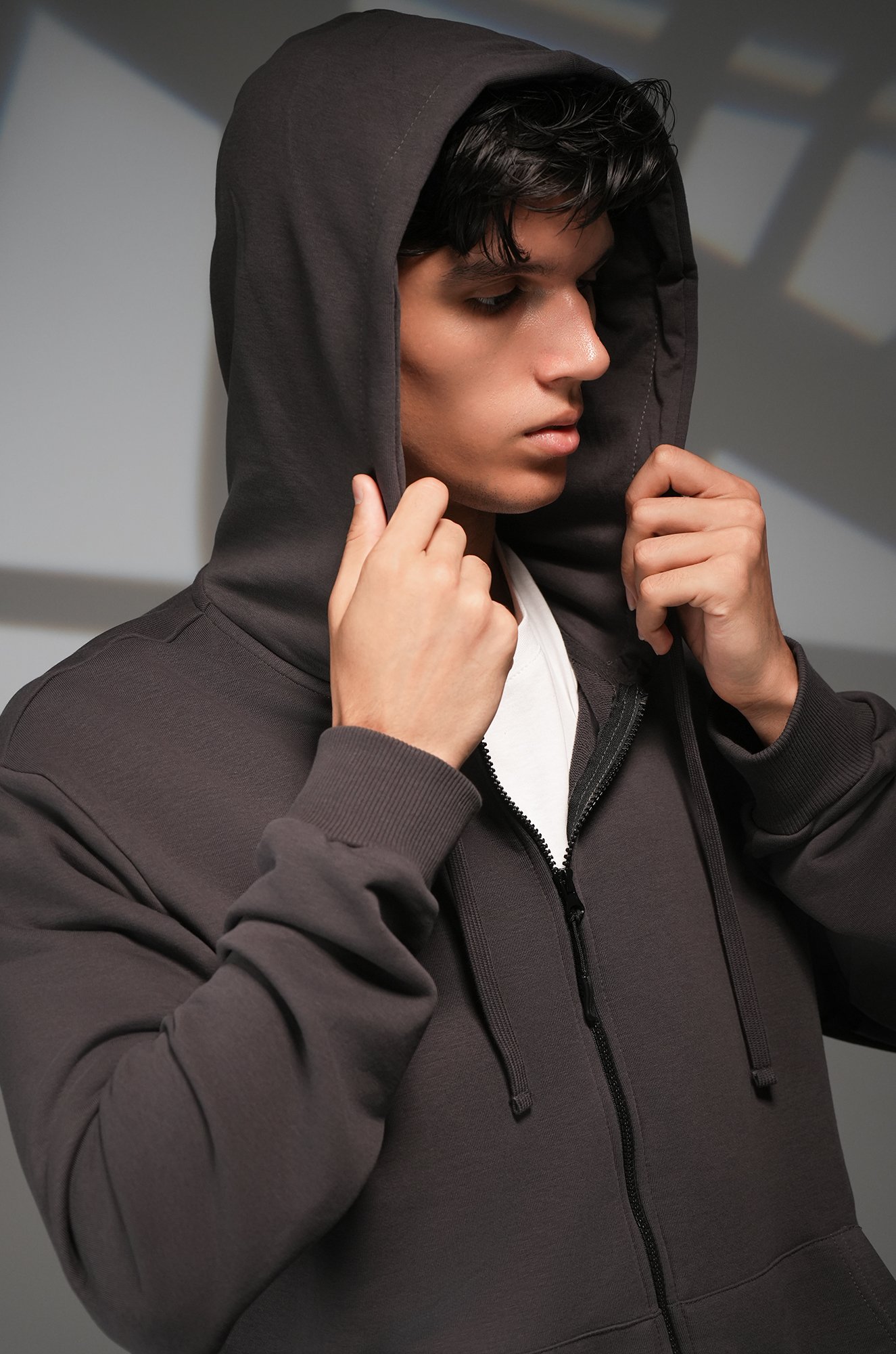 — костюм с толстовкой с глубоким капюшоном дарит уют и комфорт;