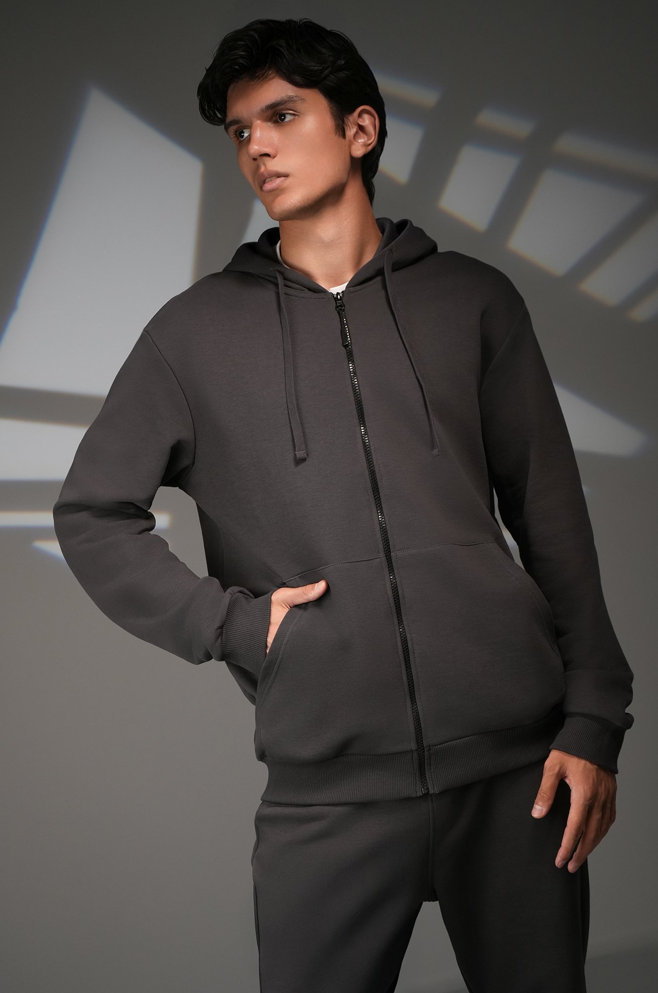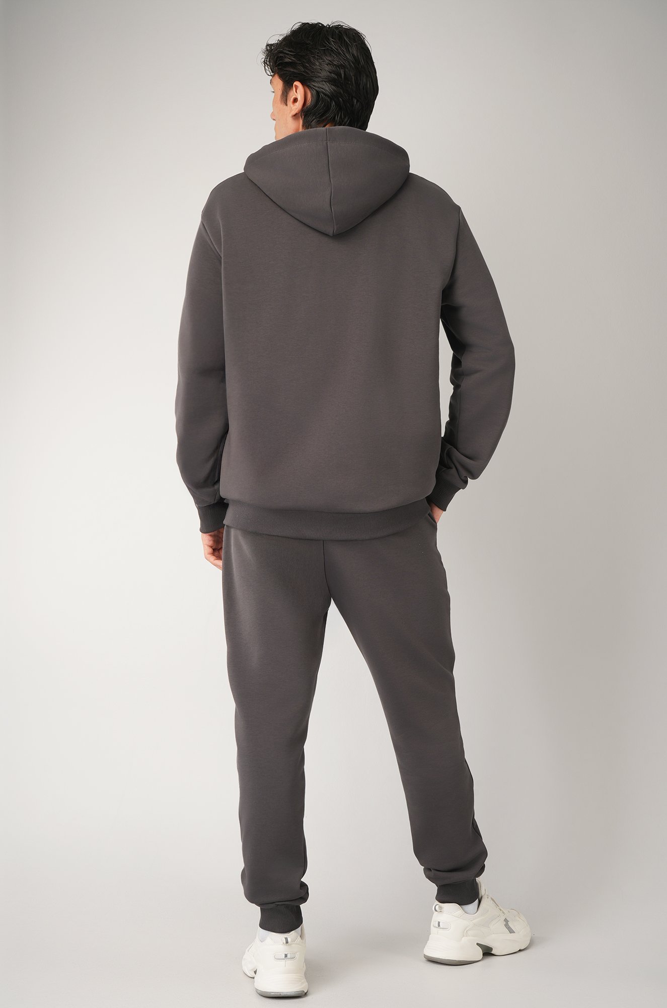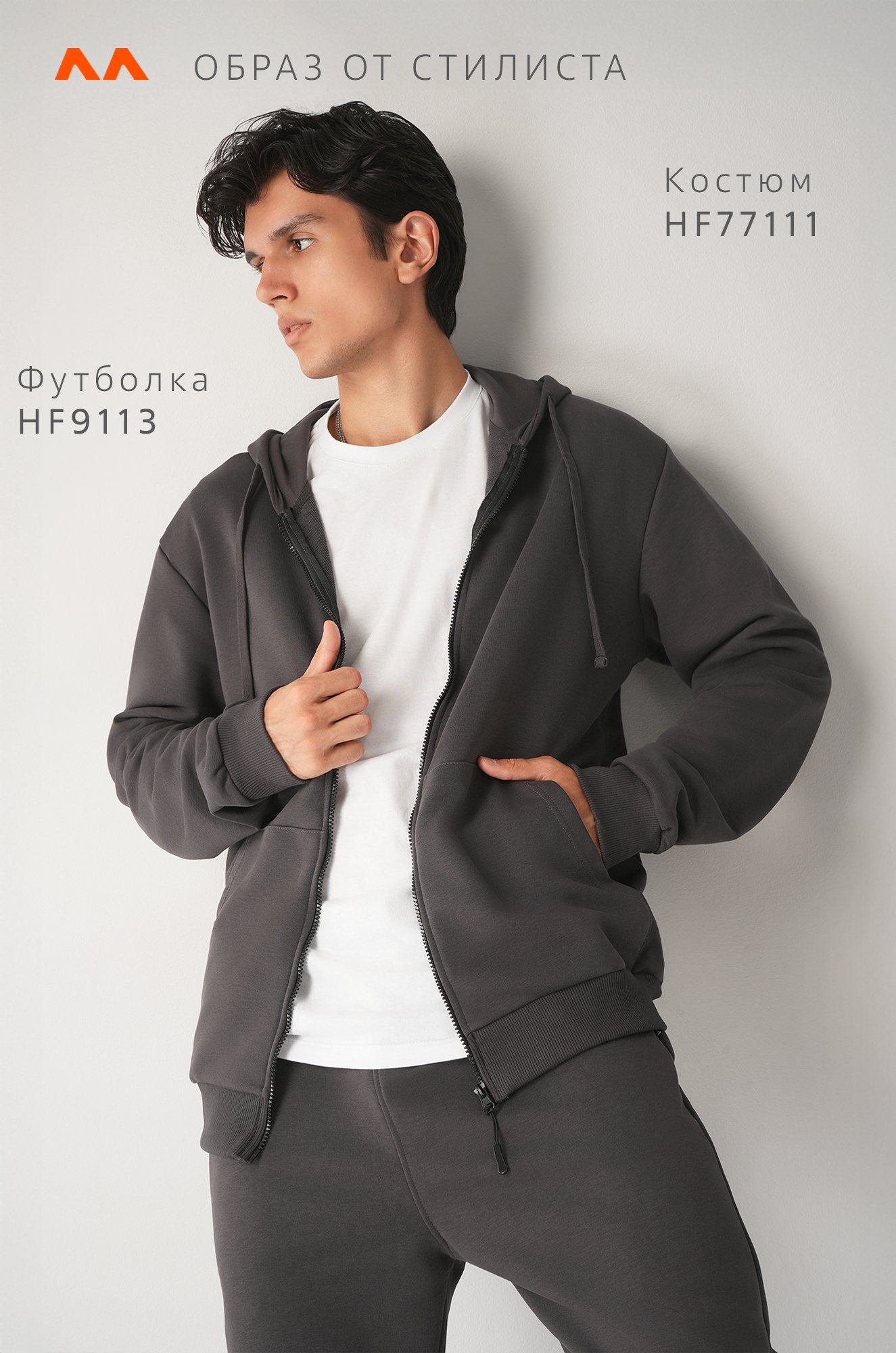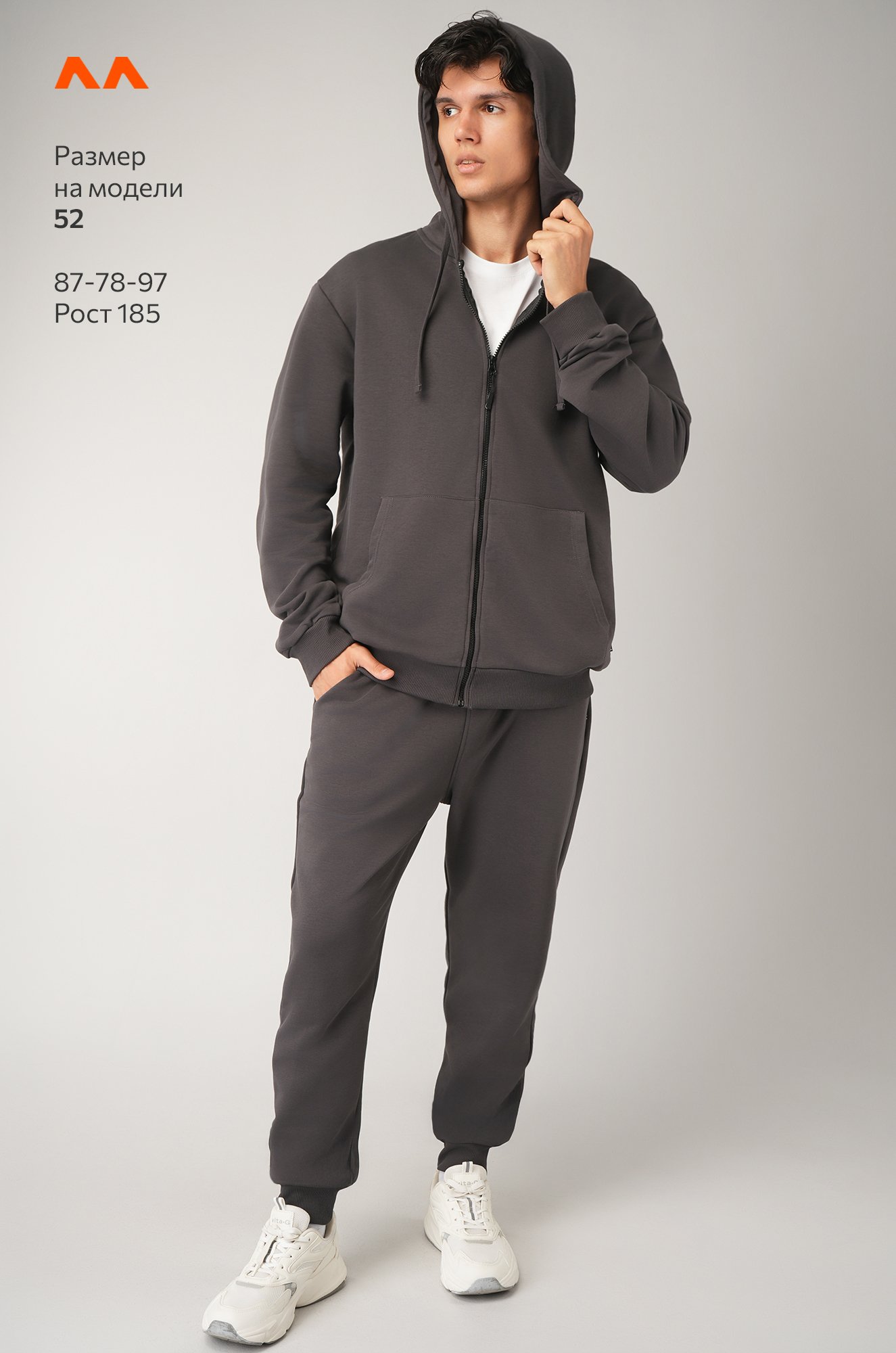 — однотонный темно-серый костюм со штанами выполнен из плотного футера трехнитки;