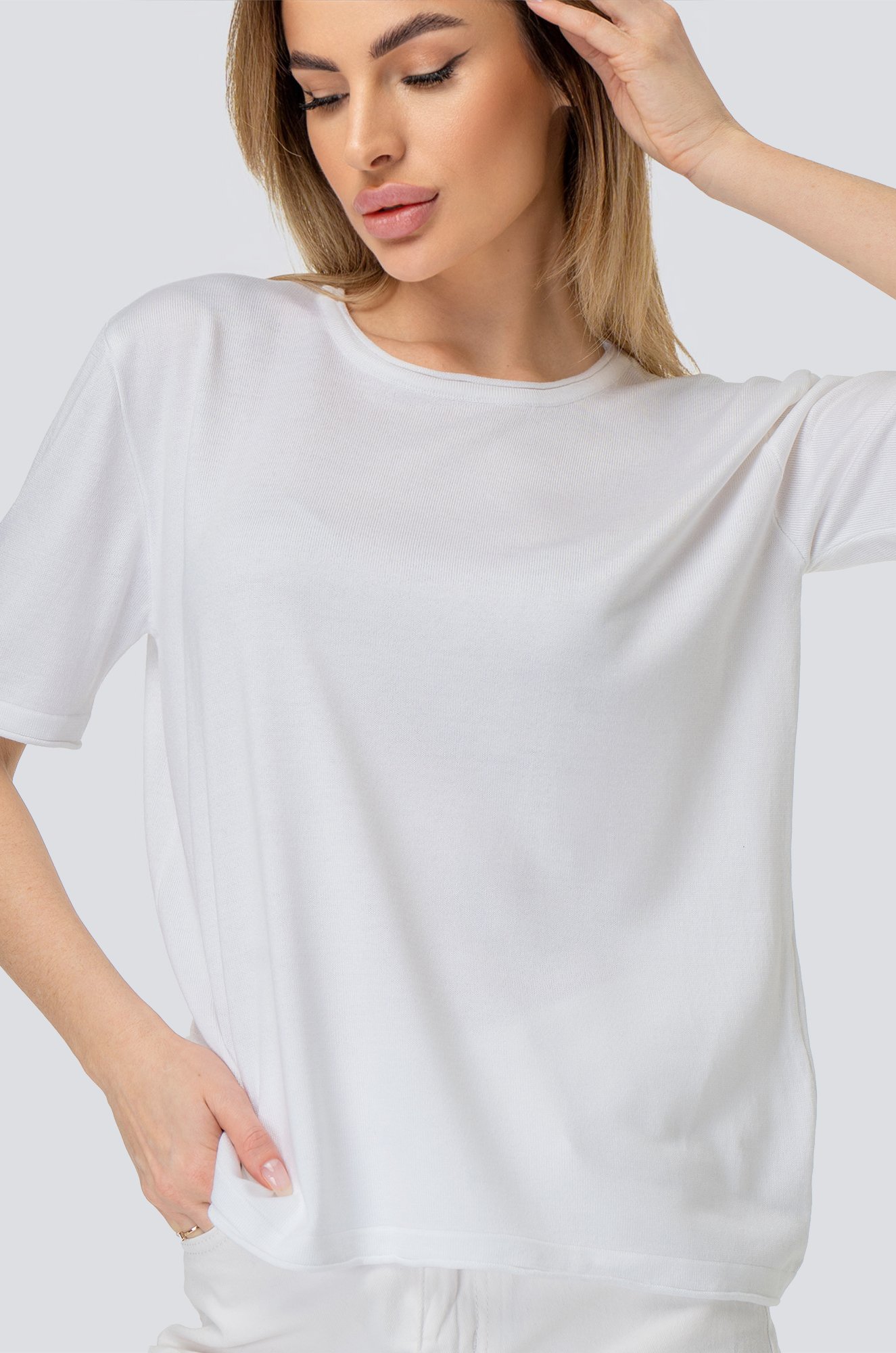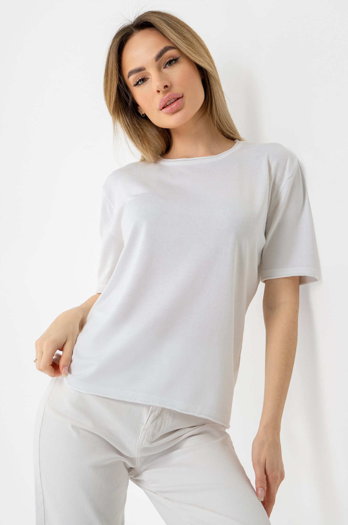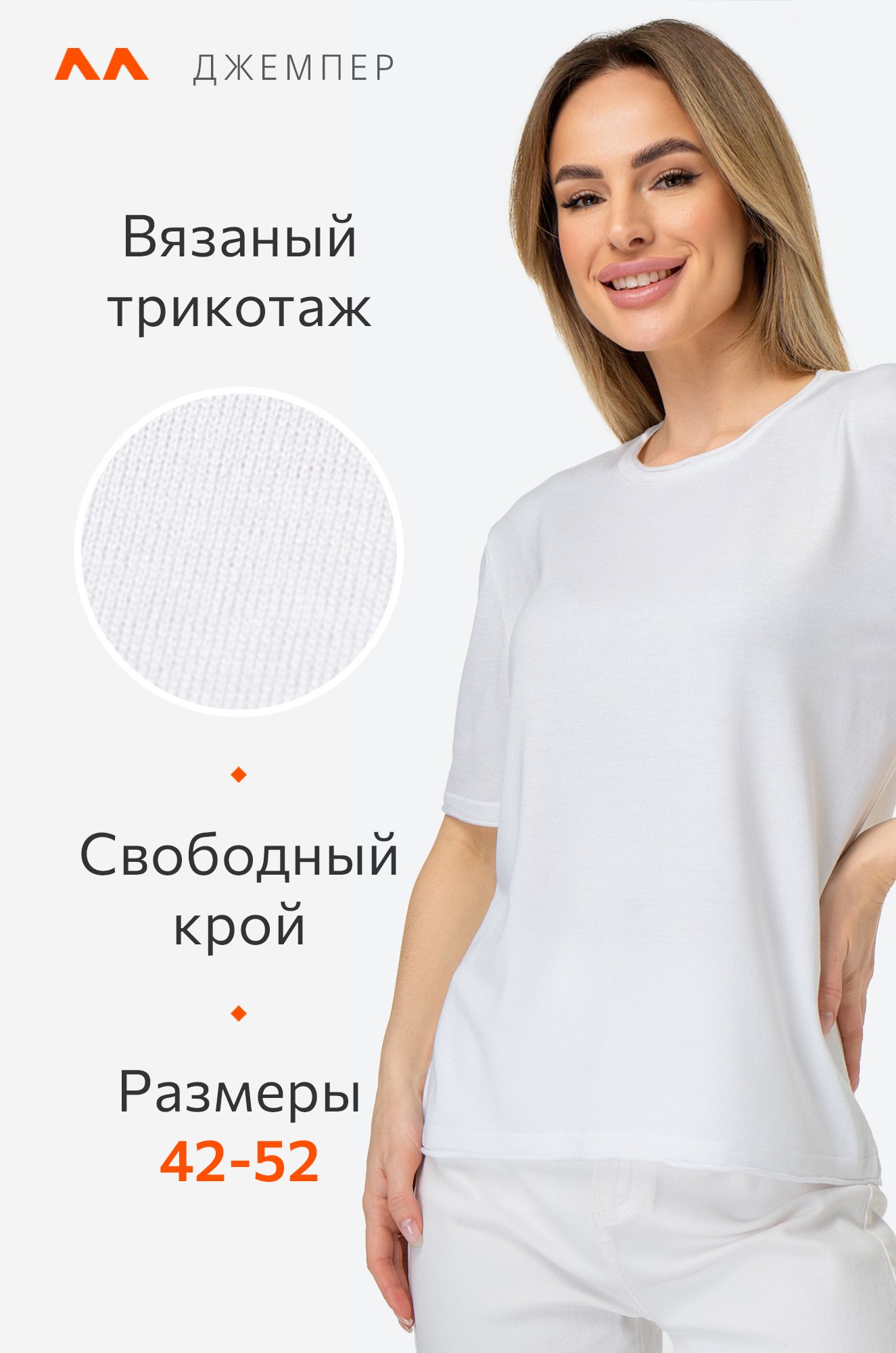 Вязаный трикотаж из вискозы и акрила плавно облегает фигуру и струится по коже. В таком джемпере будет комфортно на протяжении всего дня! Вязаная футболка для женщин не вытягивается и не теряет форму даже после многократных стирок.