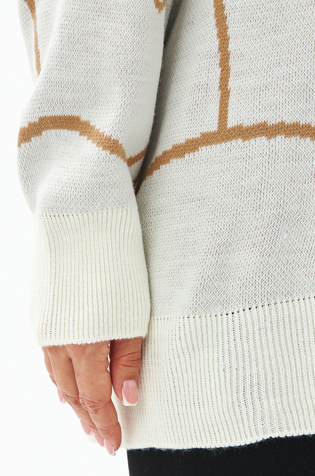 Вязаный трикотаж с хлопком, шерстью и акрилом в составе подарит мягкость и тепло, которые необходимы в холодное время года. Идеальное сочетание делает свитер приятным на ощупь и стойким к износу.