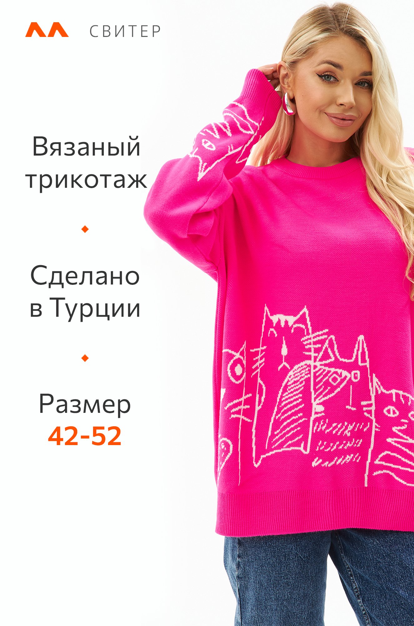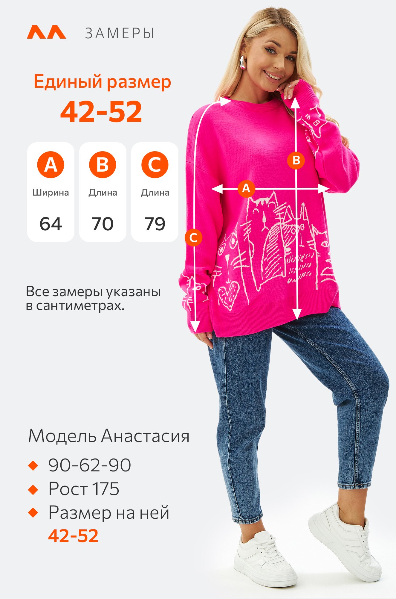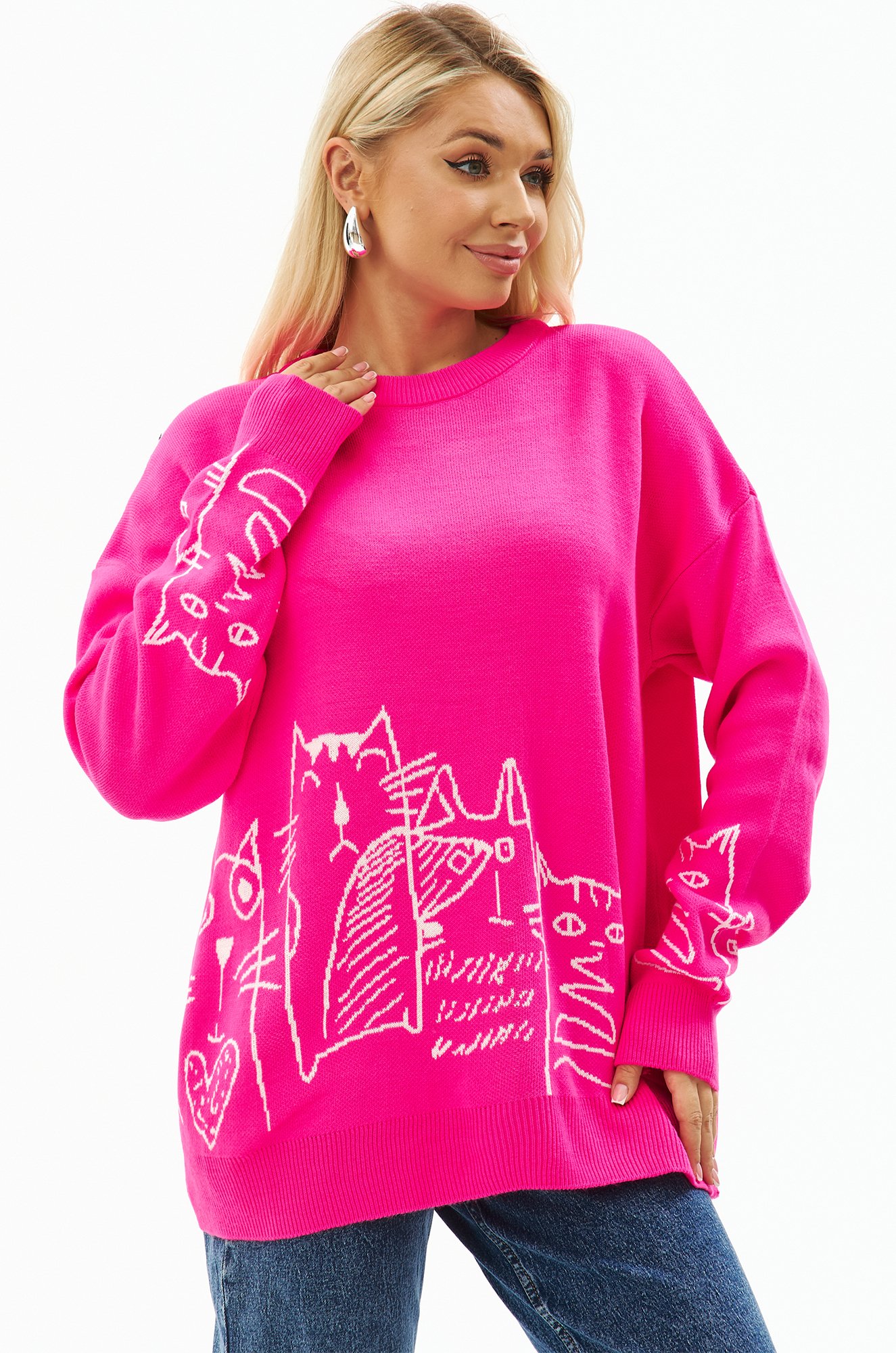 Малиновый женский джемпер с рисунком кошки — находка для тех, кто любит весело и тепло проводить зимние дни. Свитер оверсайз с оригинальным рисунком наполнит уютом каждый день.