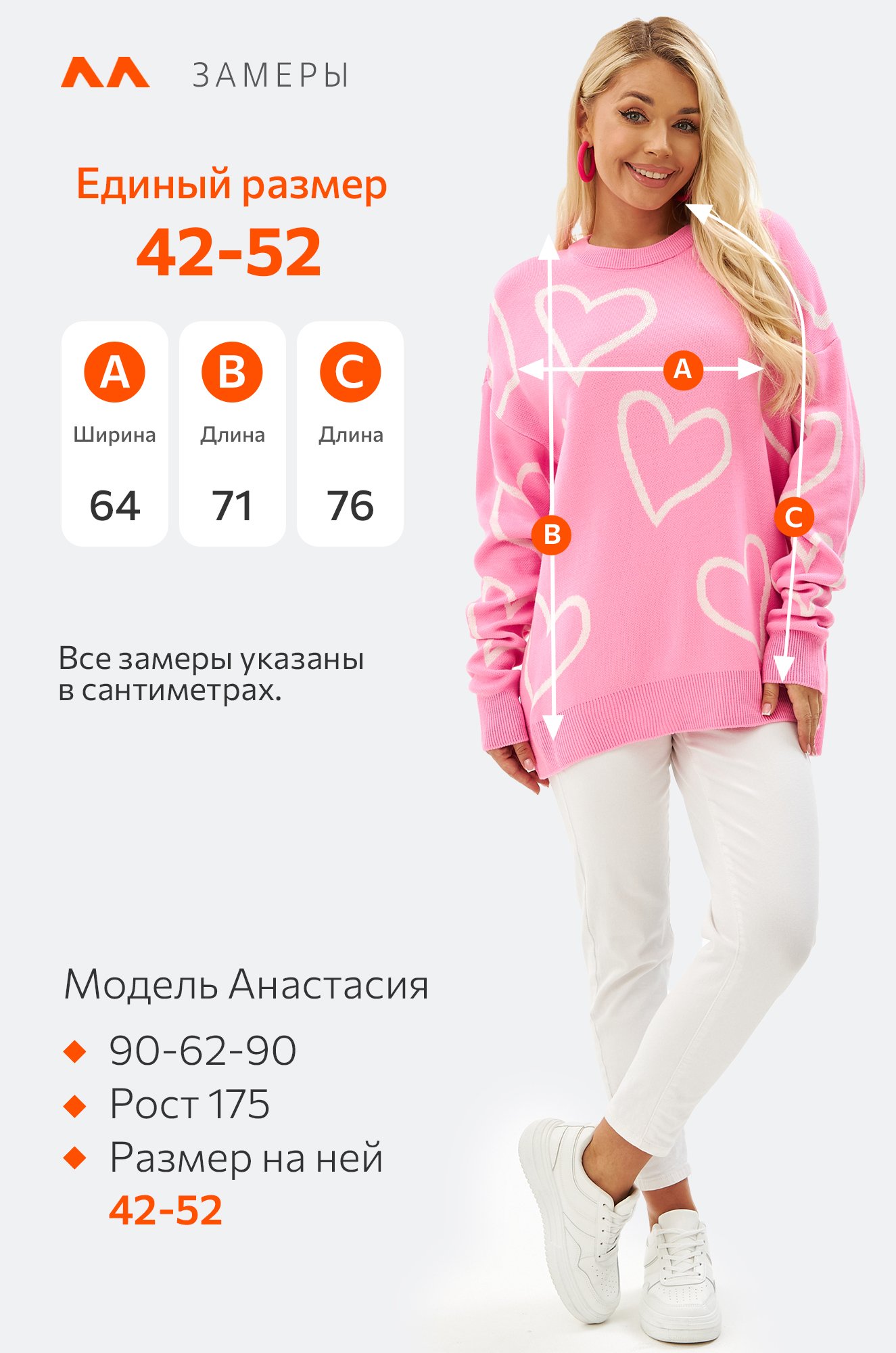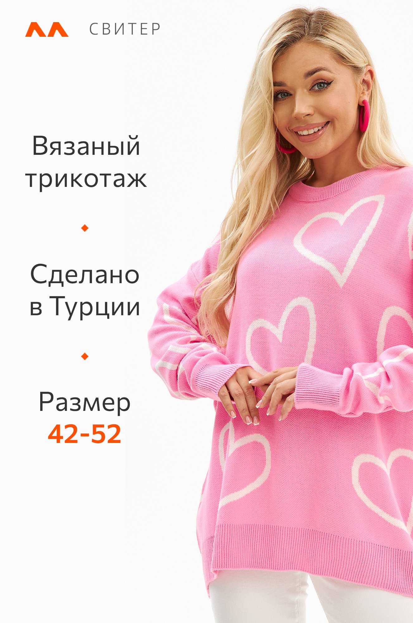 Розовый свитер оверсайз с рисунком сердечки станет новым фаворитом для уютных зимних дней. Он сочетает в себе стиль и комфорт, создавая теплый и чарующий образ. Спущенные плечи и длинные рукава придают женскому джемперу элегантный вид и делают его идеальным для холодной погоды.
