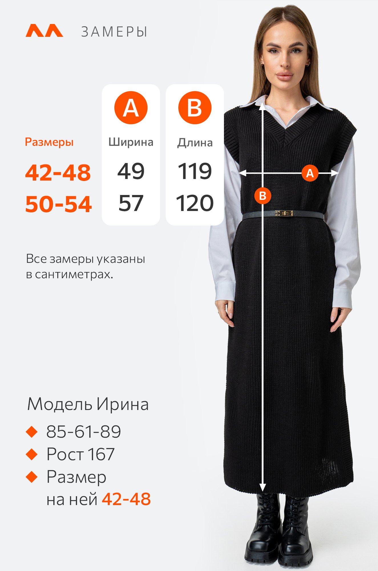 Размер 42-48: длина:119 см; ширина:49 см.