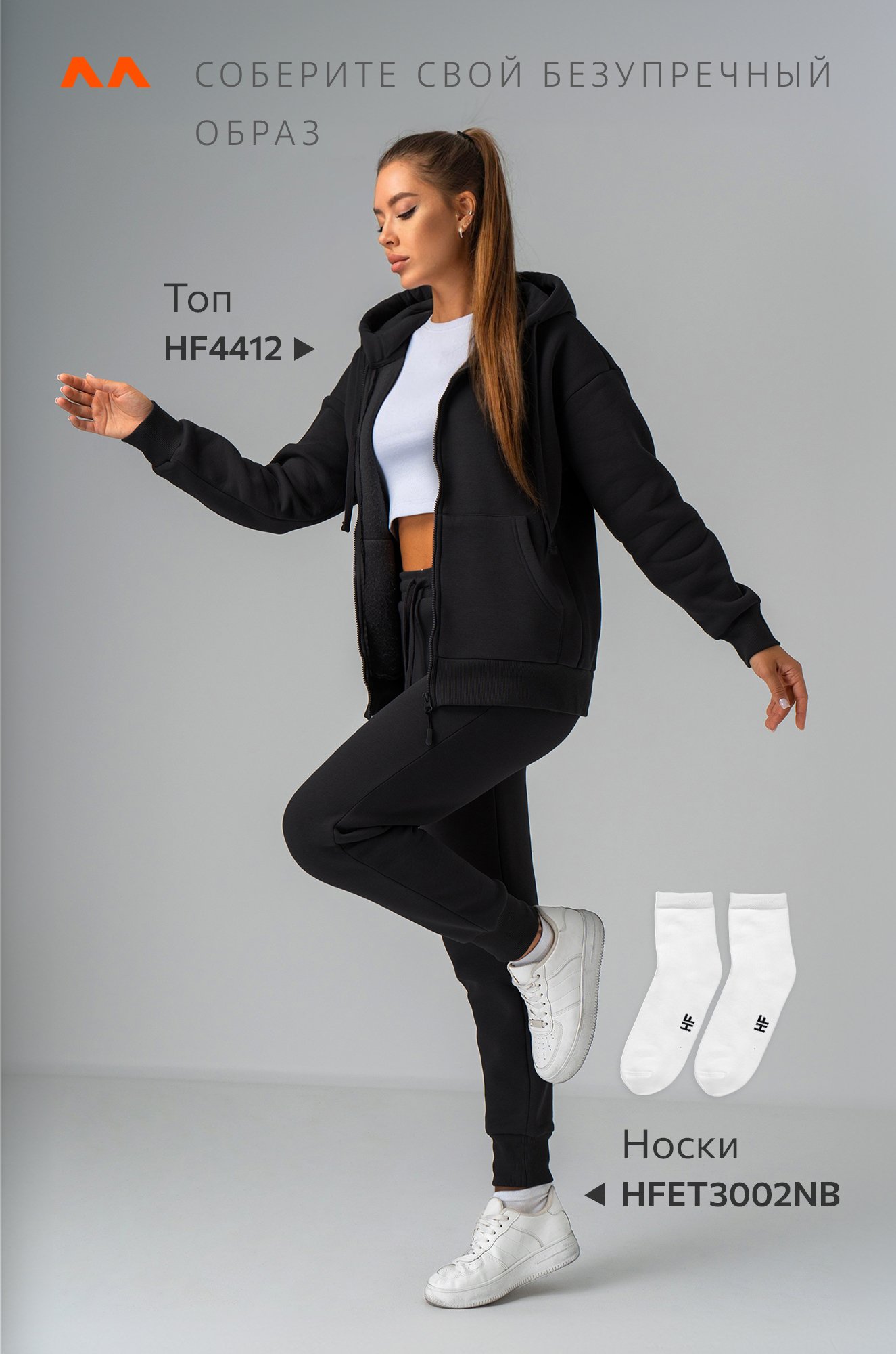Теплый женский костюм черного цвета выполнен из качественного трикотажа футер с начесом. В комплекте толстовка с объемным регулируемым капюшоном и брюки джоггеры.