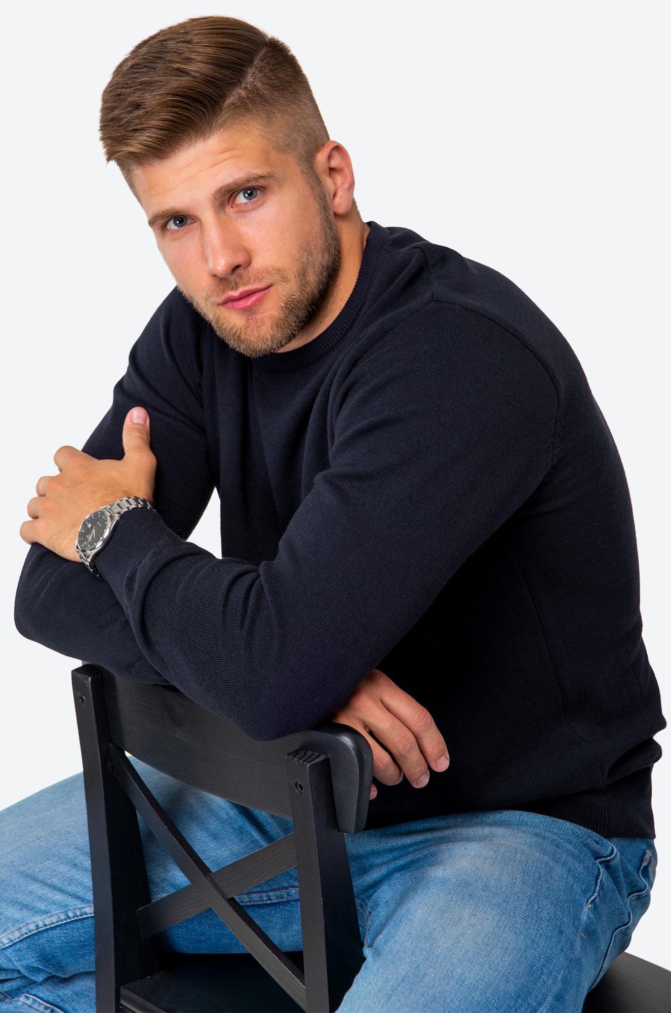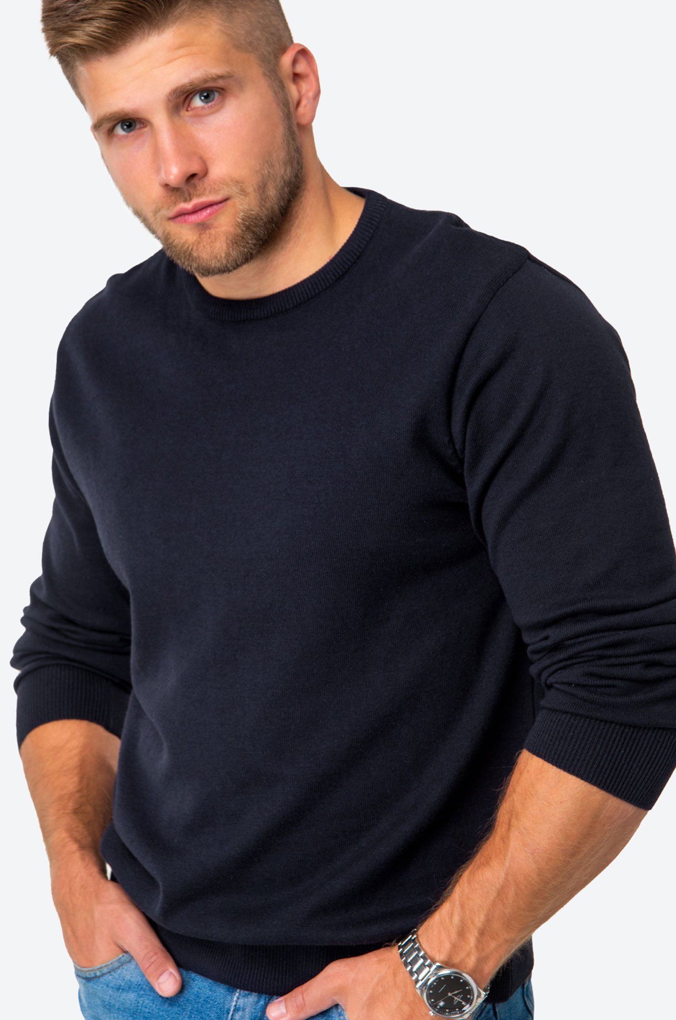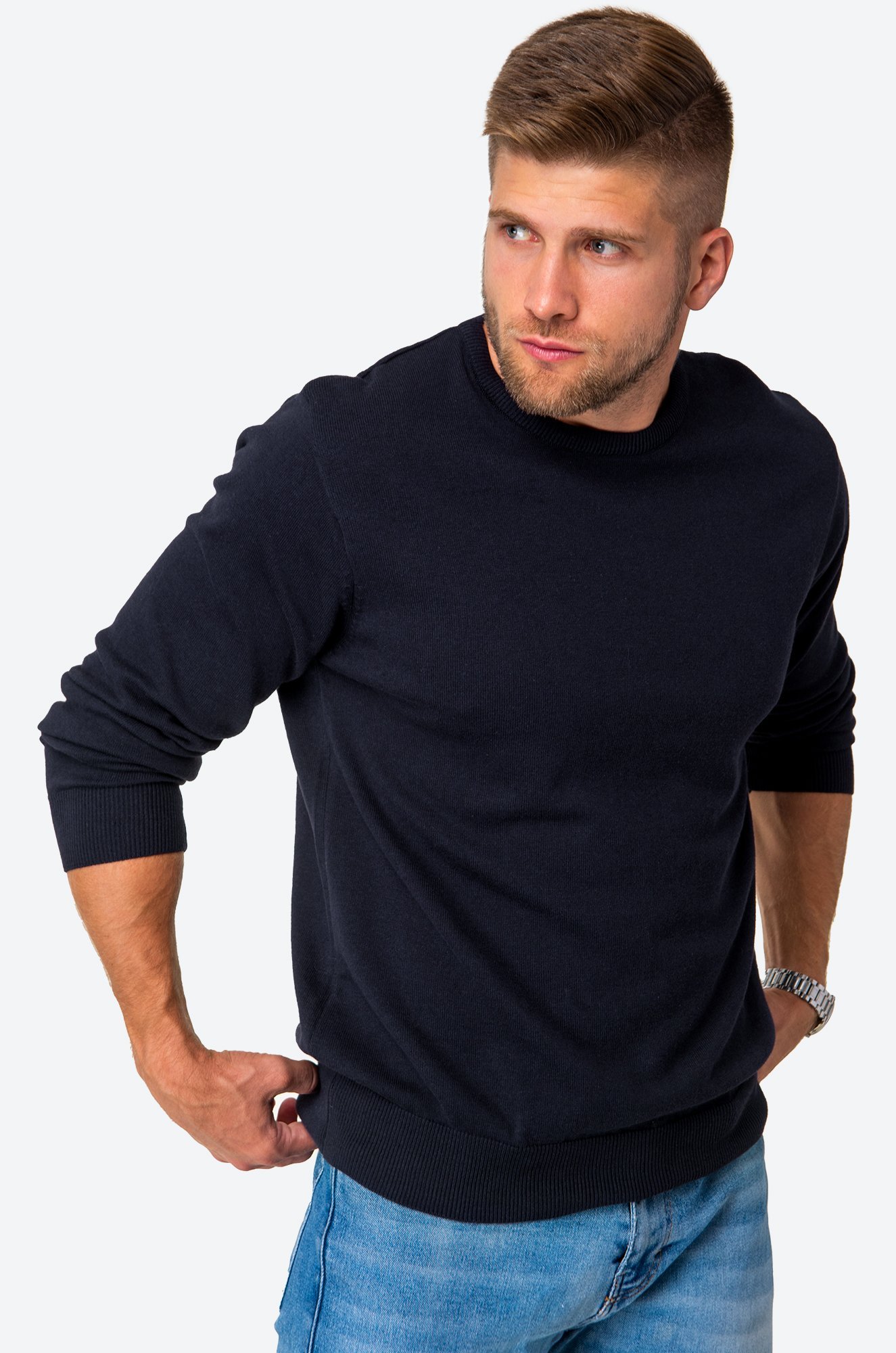 Однотонный мужской джемпер идеален для создания лаконичных образов.