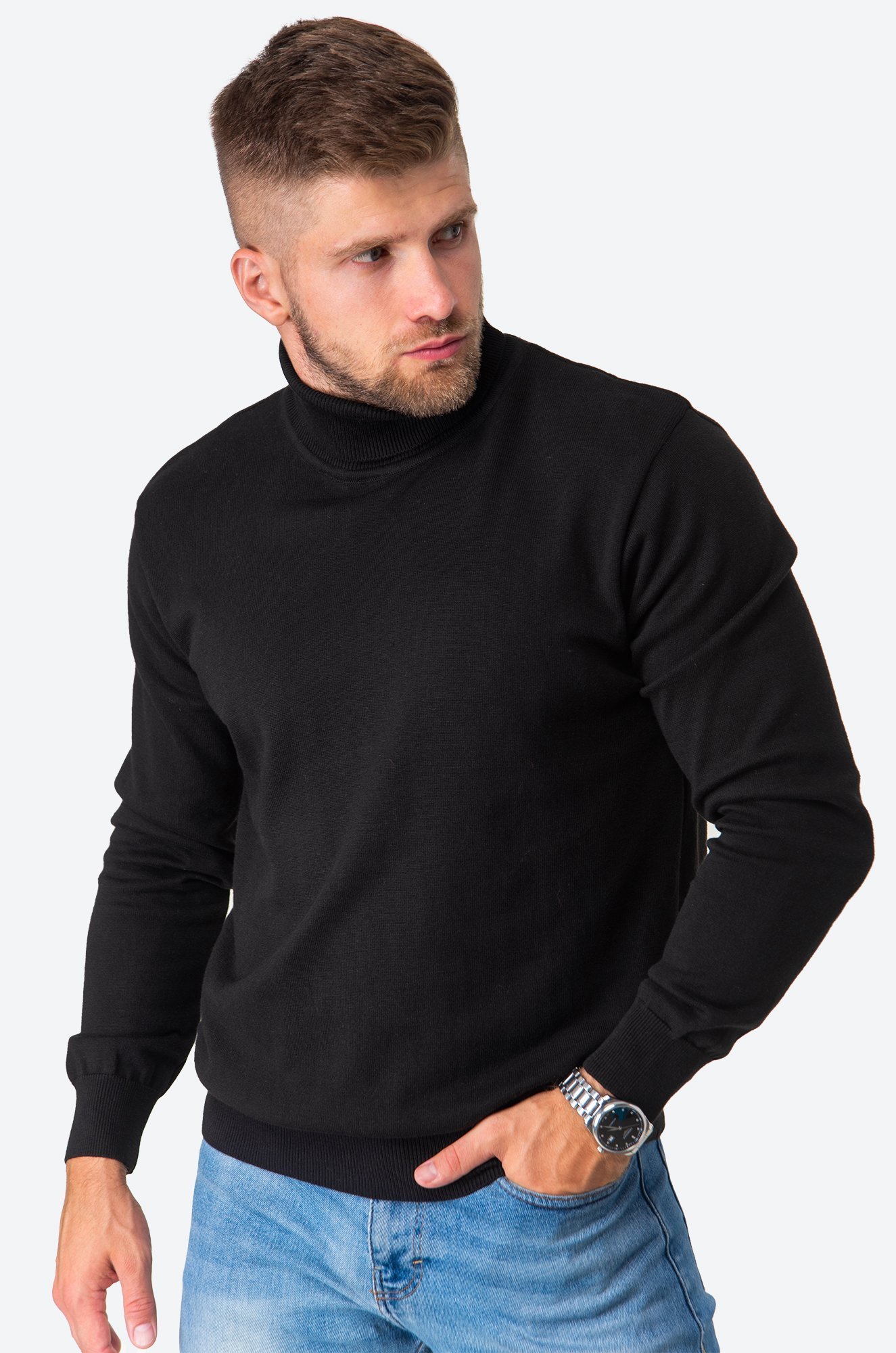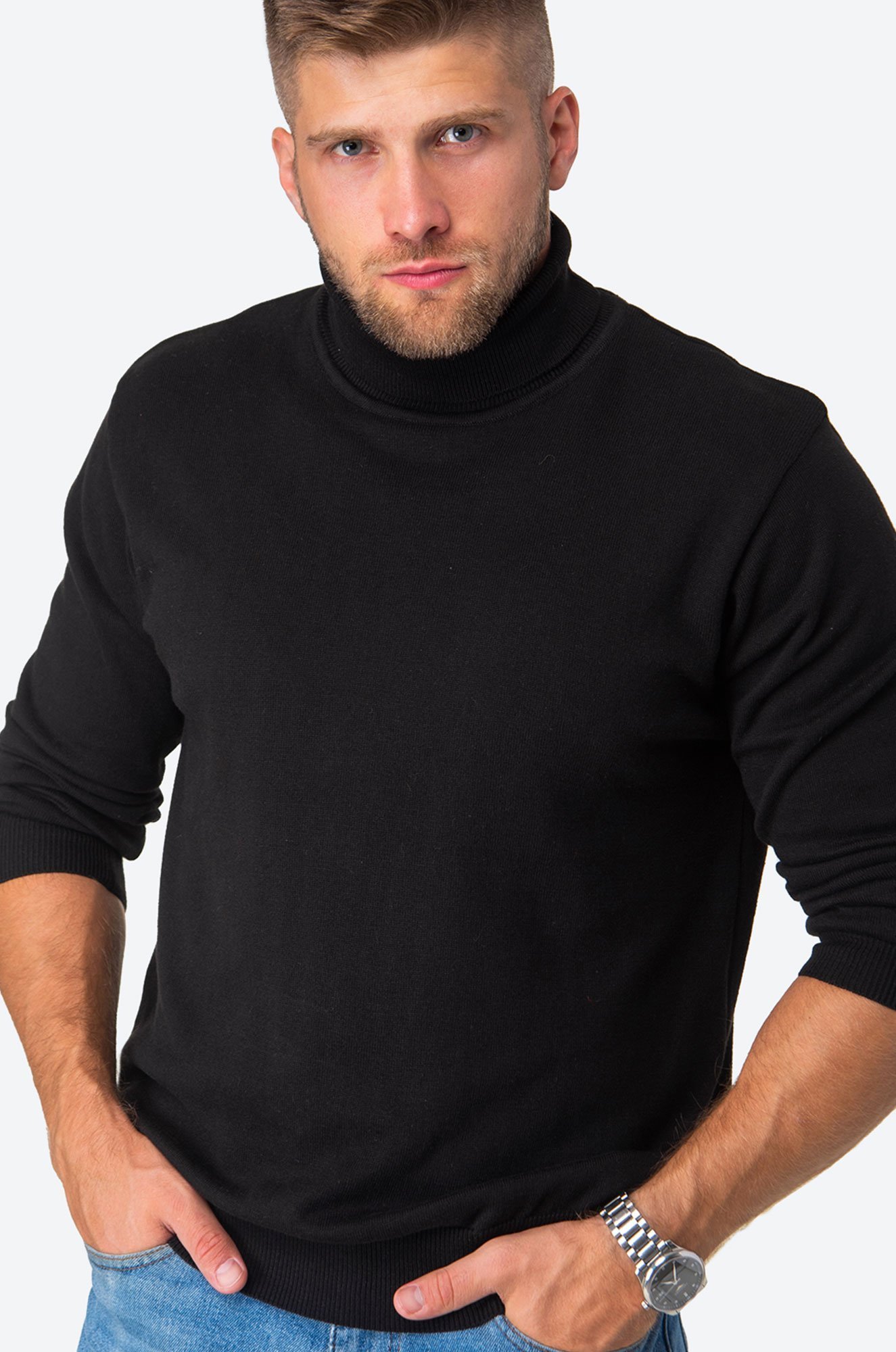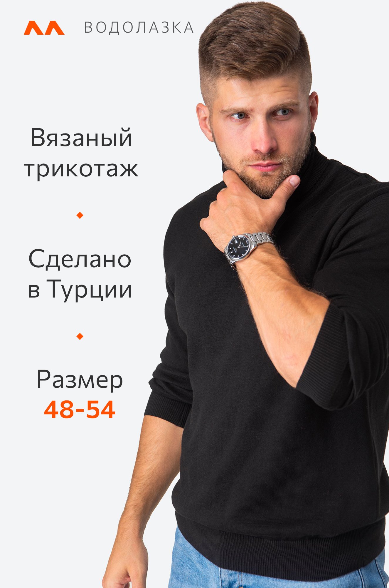 Черная водолазка с высоким воротом для мужчин выполнена из вязаного трикотажа: в ней будет уютно и тепло в прохладную погоду. Хлопковый джемпер из мягкой пряжи с акрилом не колется, он невероятно мягкий и приятный к телу.