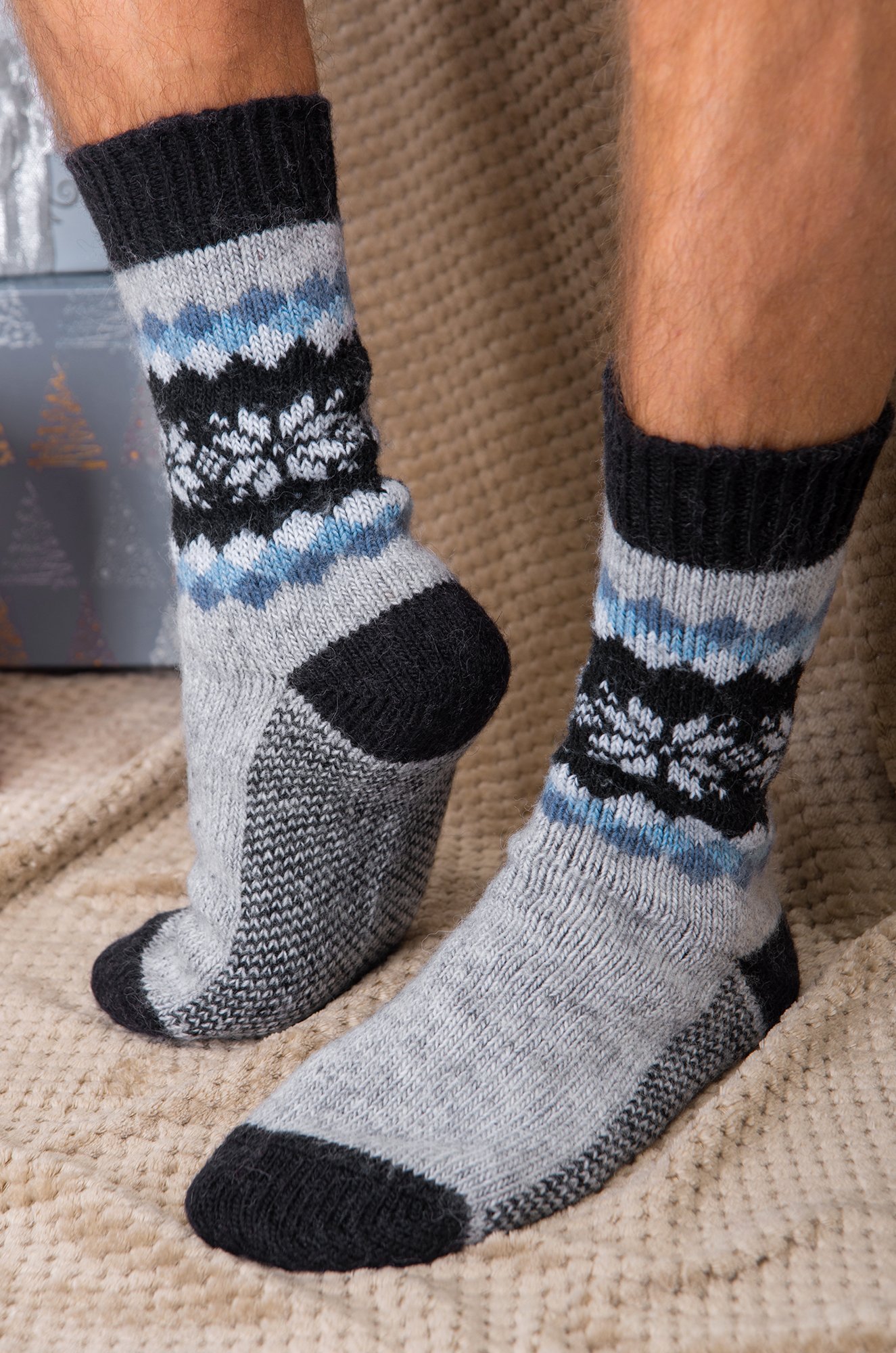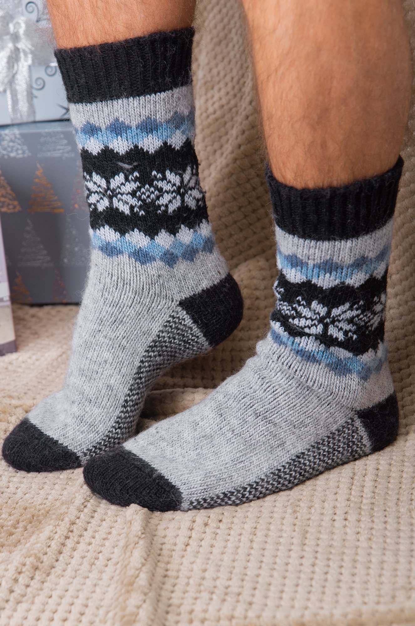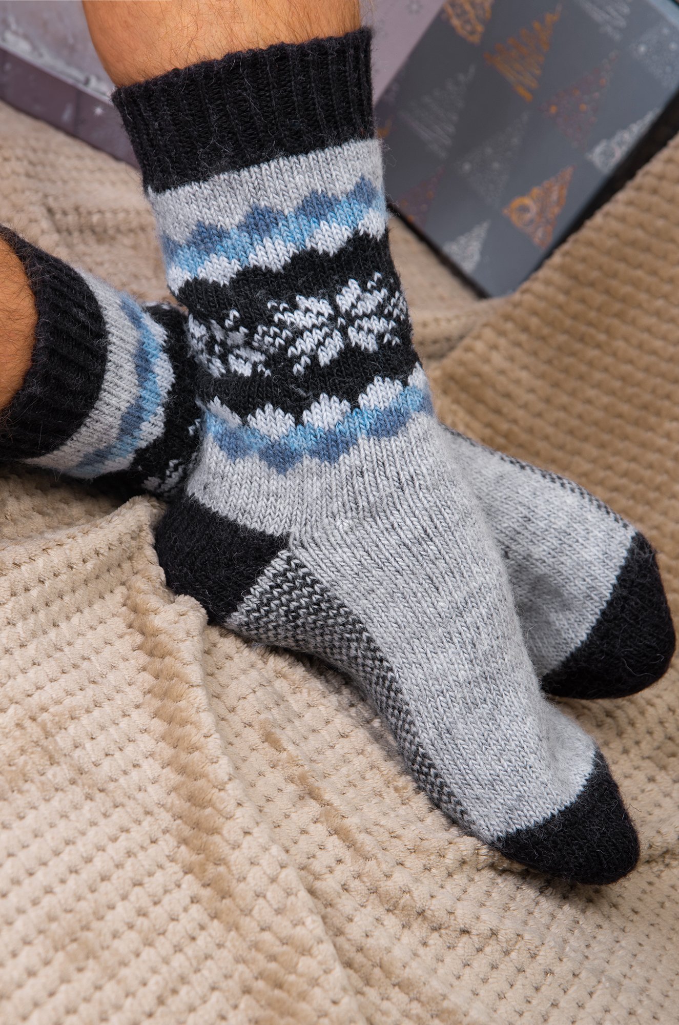 Мягкая пряжа из натуральной овечьей шерсти делает носки теплыми и идеальными для осени и зимы. Благодаря полиамиду и акрилу в составе они хорошо тянутся и сохраняют форму и цвет даже после частых стирок. Красивый узорный орнамент добавляет нотку эстетики и создает уютную праздничную атмосферу.