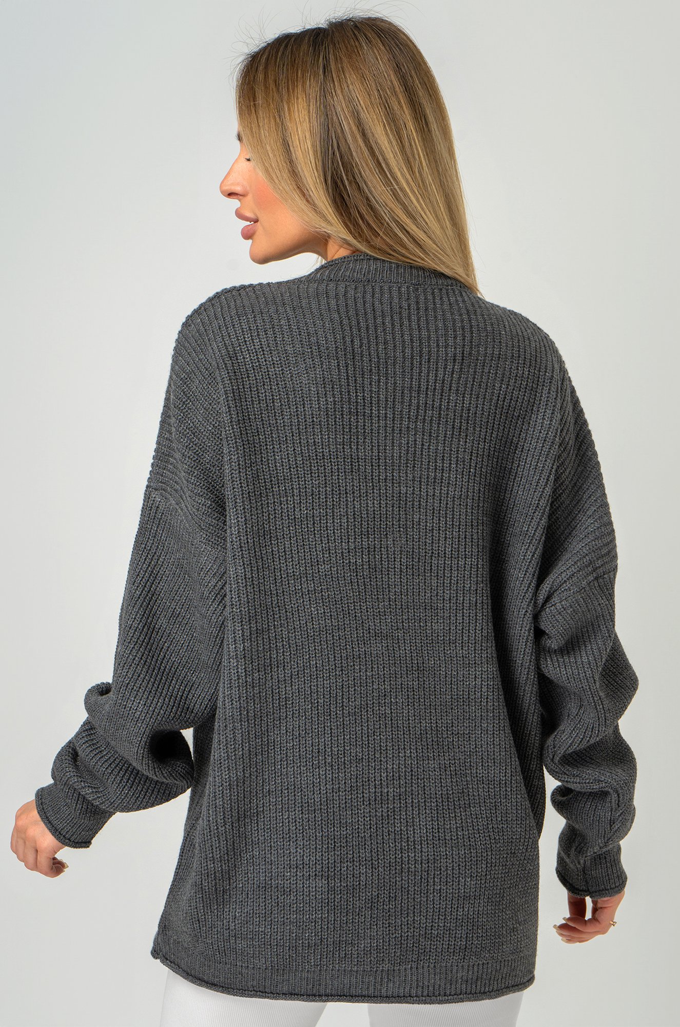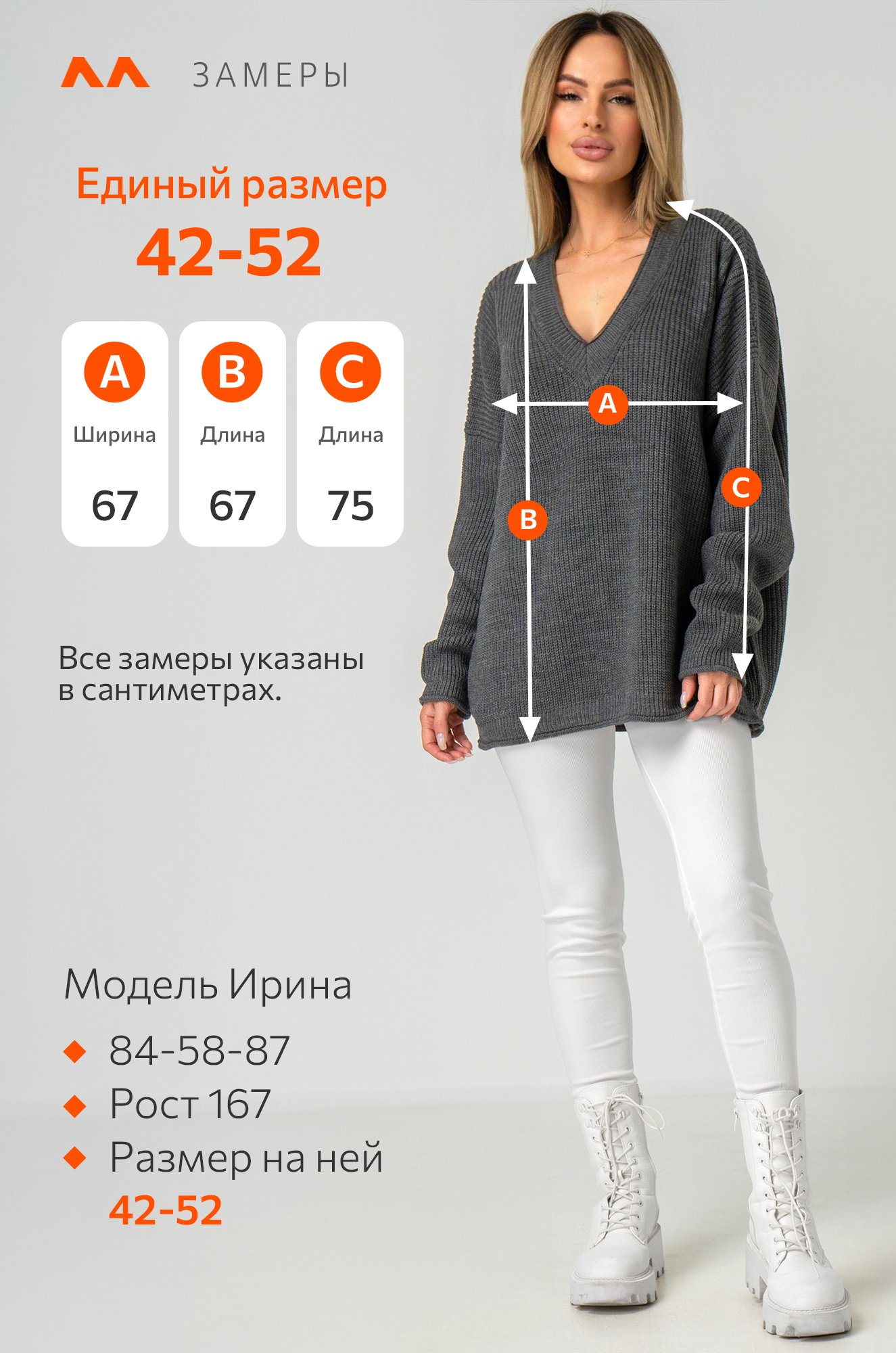 Окутывающий нежностью и заботой свитер антрацитового цвета выполнен из акрила и шерсти. Удлиненный силуэт, крой oversize, v-образный вырез, длинные рукава – в этом джемпере для женщин есть все, что поможет оставаться стильной в любой ситуации!