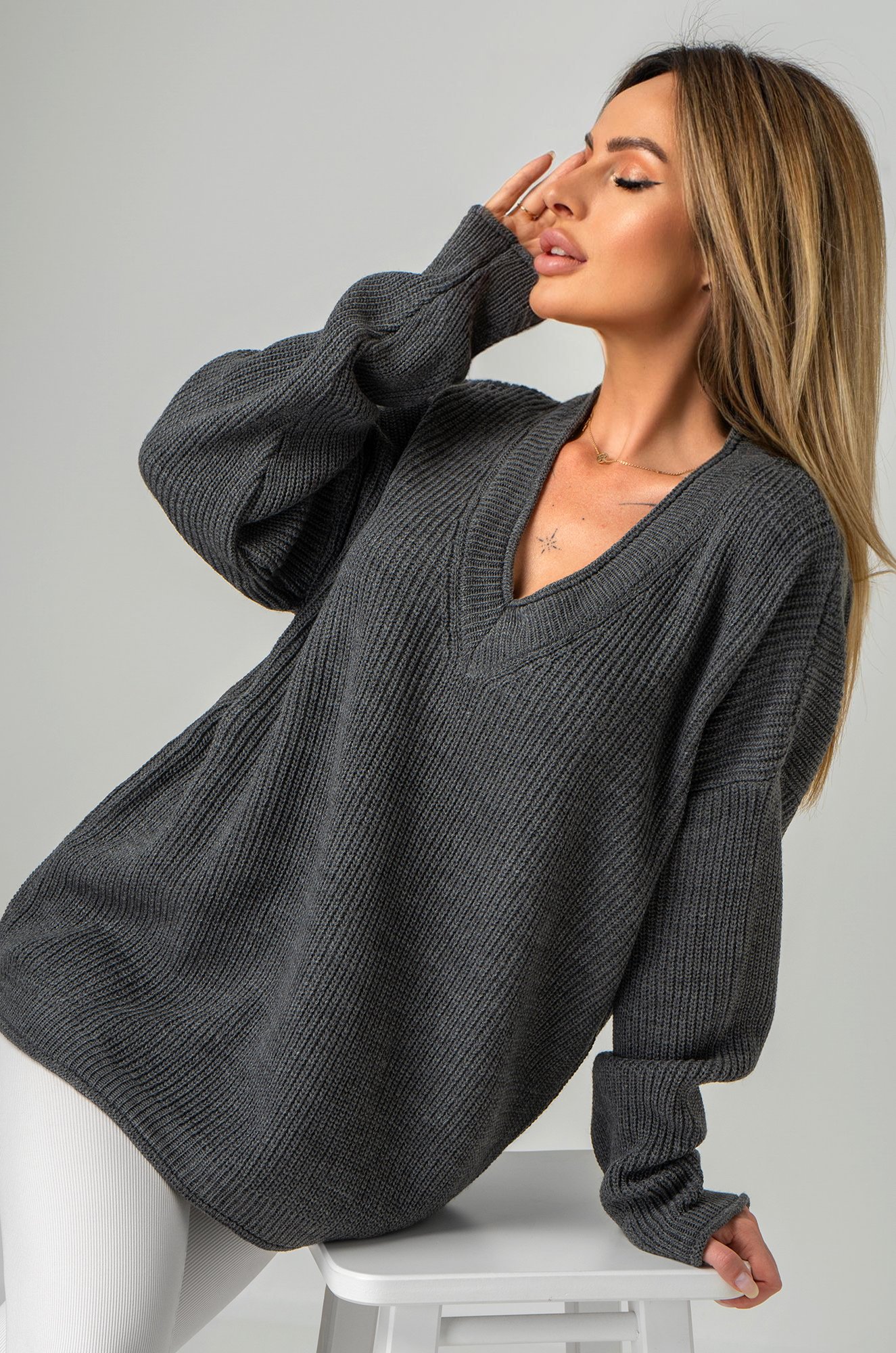 Женский свитер оверсайз с V-образным вырезом Happyfox