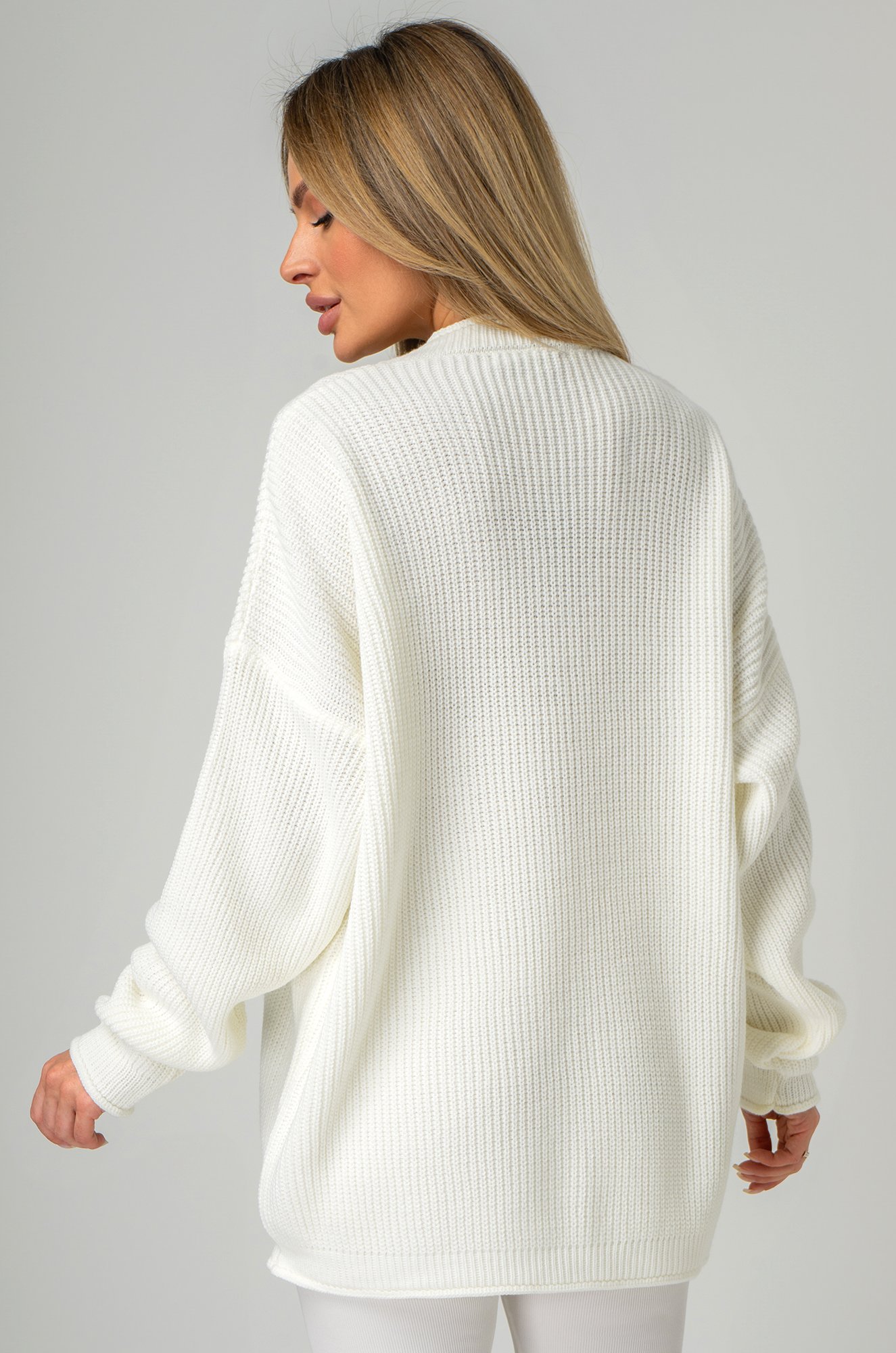 Окутывающий нежностью и заботой белый свитер выполнен из акрила и шерсти. Удлиненный силуэт, крой oversize, v-образный вырез, длинные рукава – в этом джемпере для женщин есть все, что поможет оставаться стильной в любой ситуации!