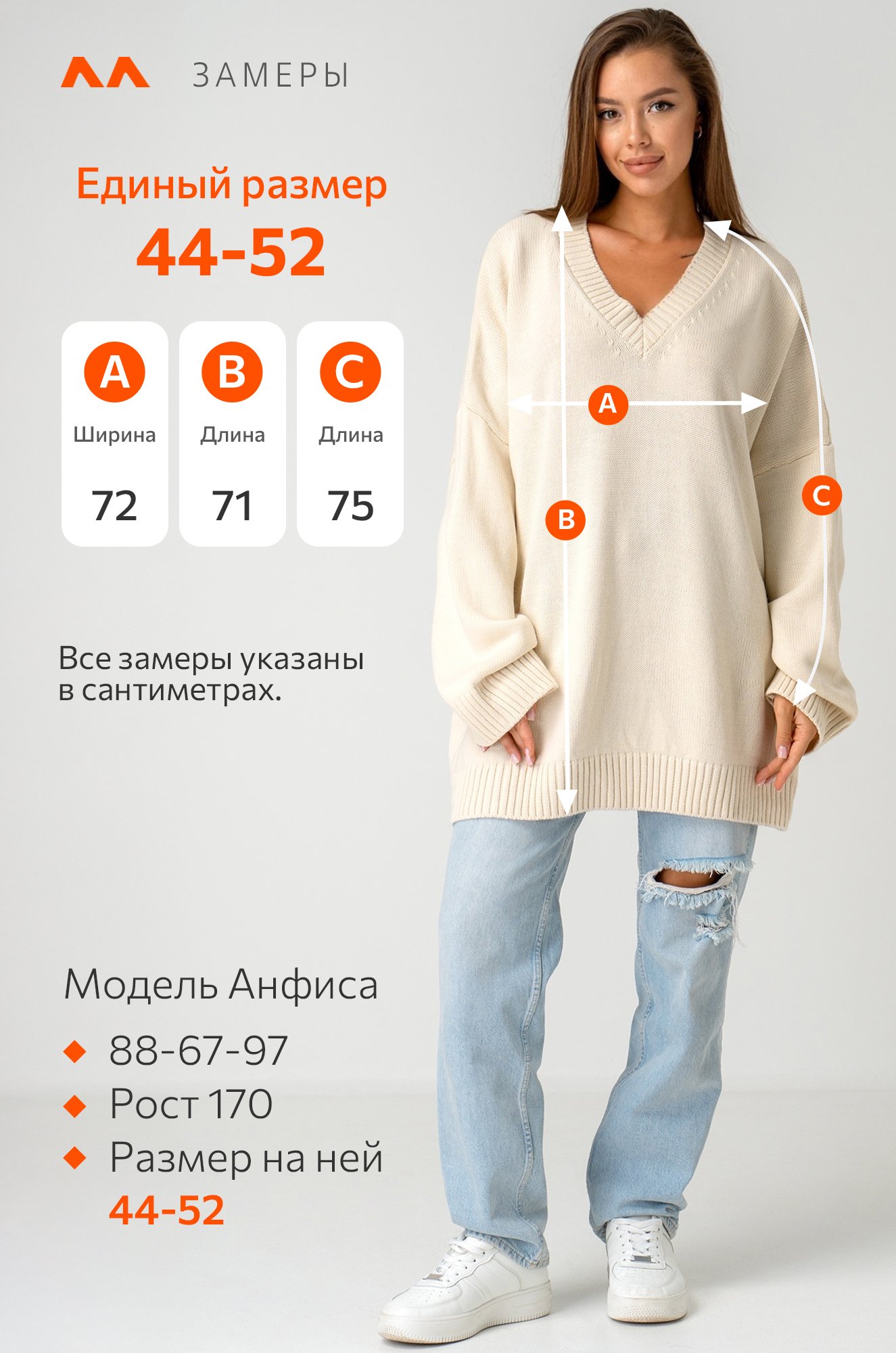 Окутывающий нежностью и заботой женский свитер оверсайз выполнен из акрила и шерсти. Удлиненный силуэт, крой oversize, v-образный вырез, длинные рукава – в этом джемпере для женщин есть все, что поможет оставаться стильной в любой ситуации!