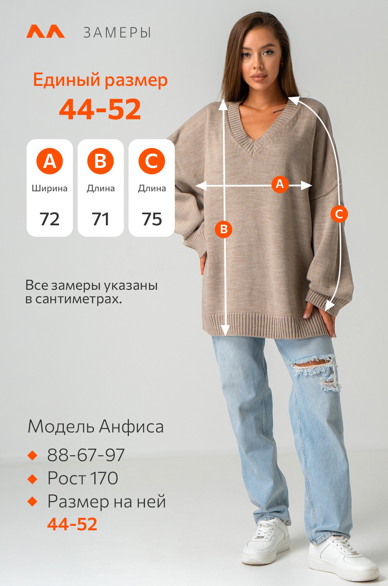 Окутывающий нежностью и заботой женский свитер оверсайз выполнен из акрила и шерсти. Удлиненный силуэт, крой oversize, v-образный вырез, длинные рукава – в этом джемпере для женщин есть все, что поможет оставаться стильной в любой ситуации!