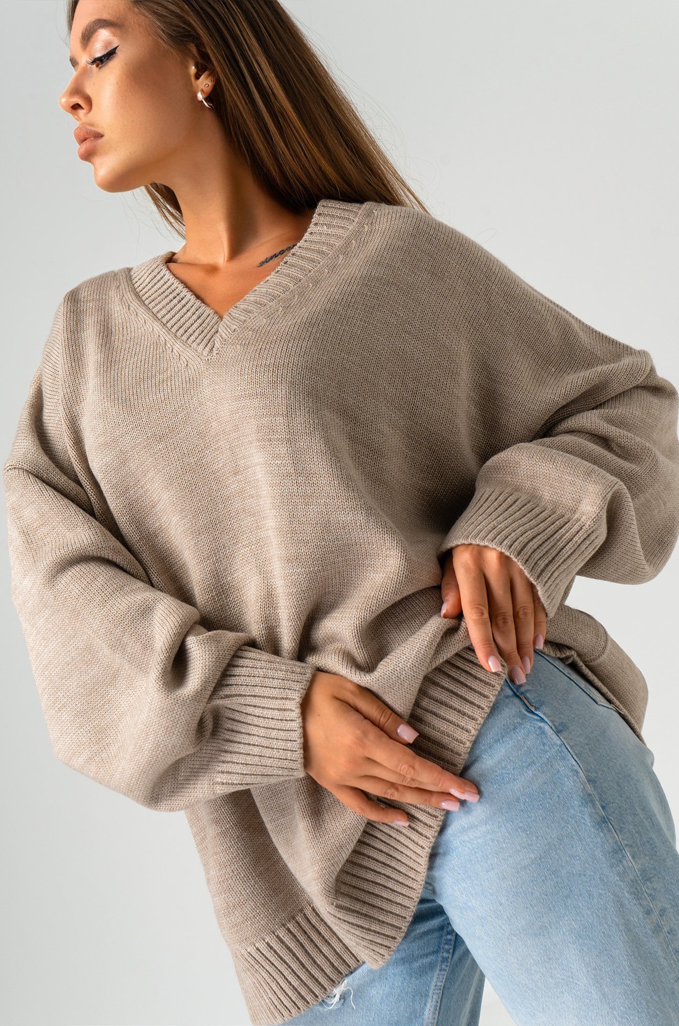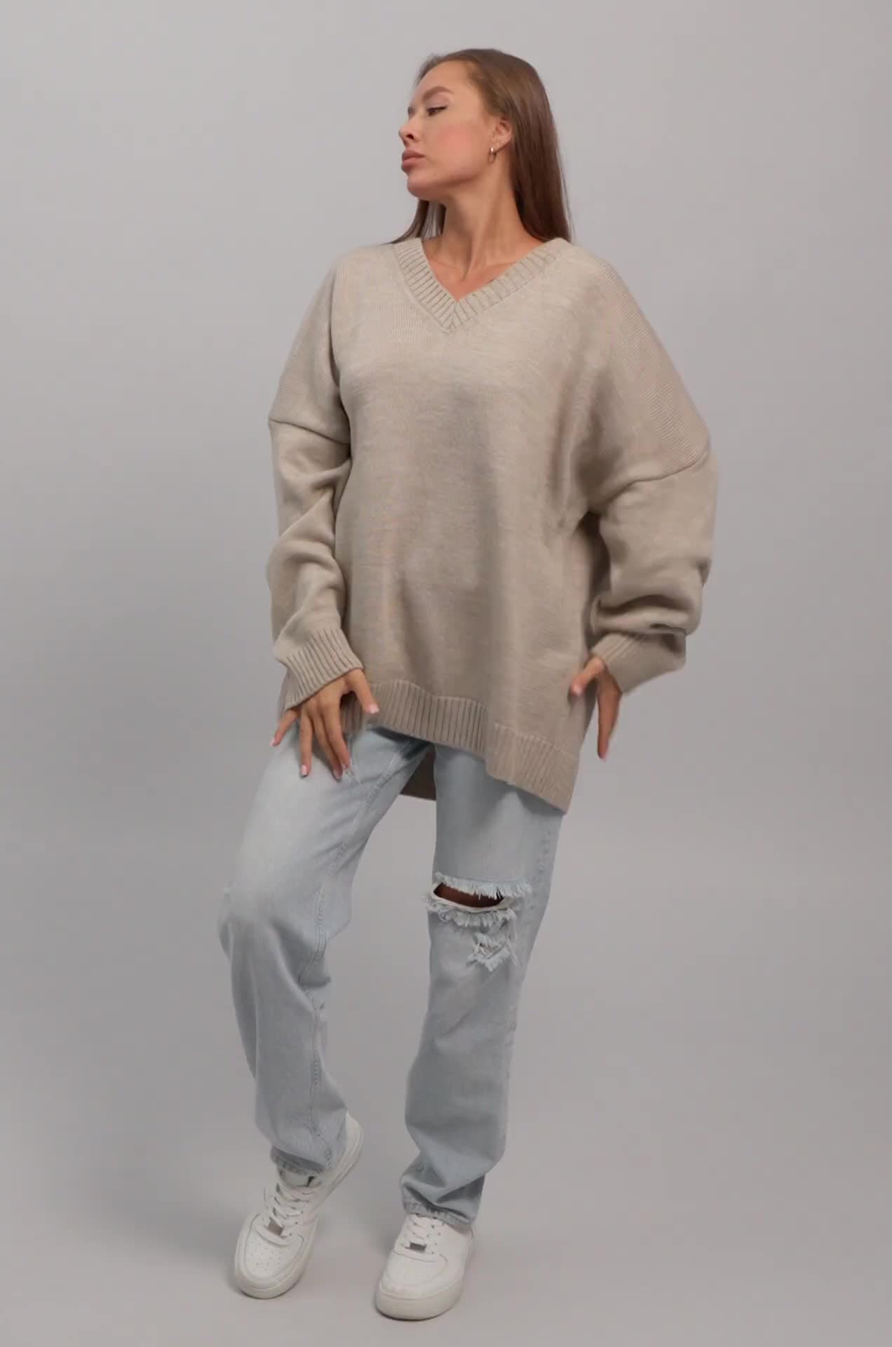 Женский свитер оверсайз с V-образным вырезом Happyfox