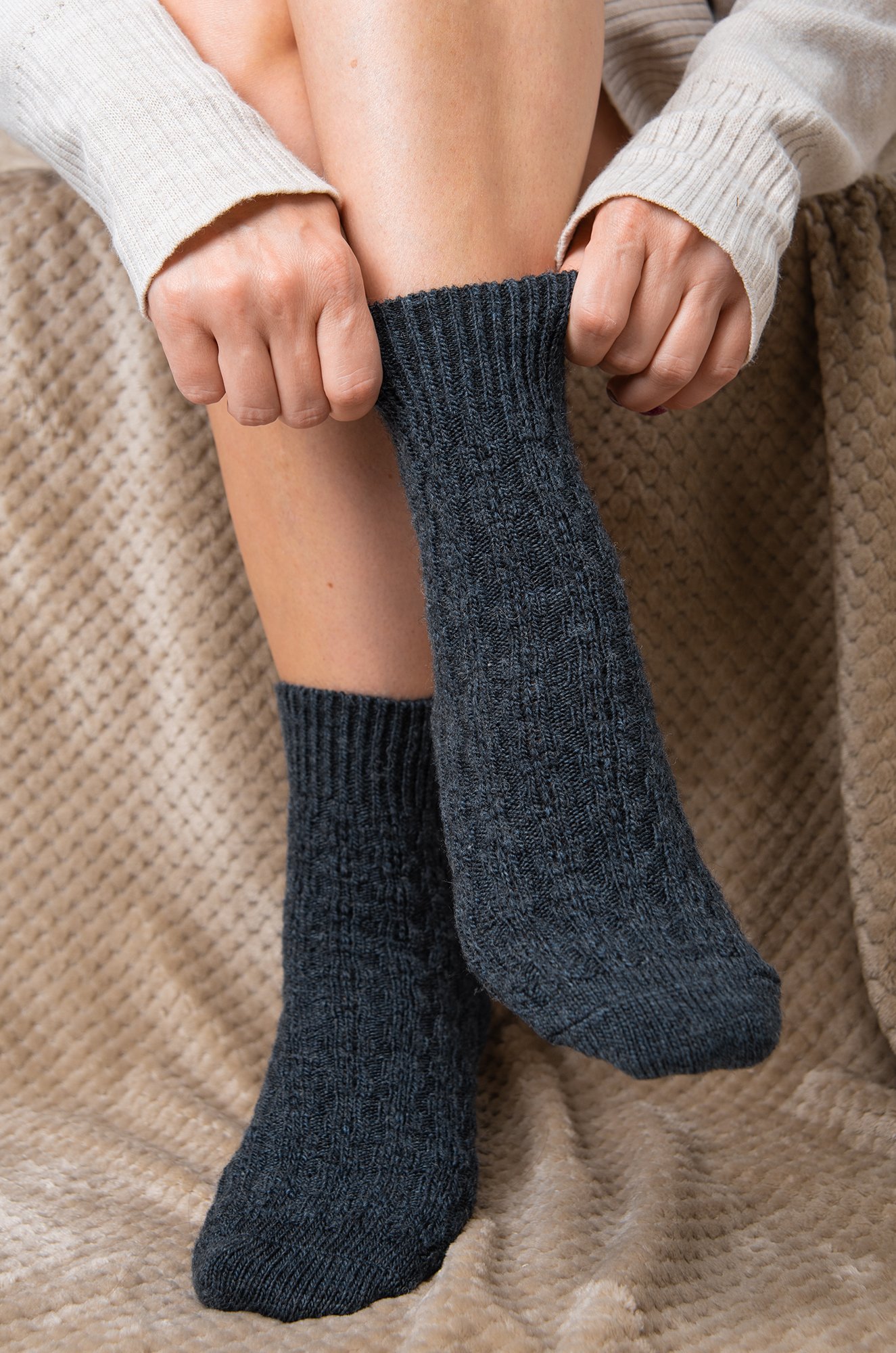 Домашние носочки нежно облегают ноги и не сползают при активных движениях благодаря плотной вязаной резинке. Красивый узорный орнамент добавляет нотку кокетства и эстетики. Комплект вязаных носков оценят те, кто любит проводить время на свежем воздухе, подойдут женщинам и девочкам-подросткам. Термоноски подходят для дома и зимних видов спорта.