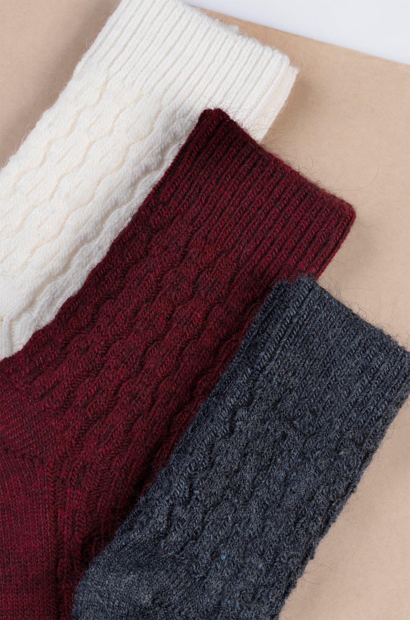 Набор теплых женских носков выполнен из приятной к телу пряжи с добавлением натуральной шерсти. Однотонные высокие носки идеальны для уютных осенних вечеров в компании пледа и какао. В наборе представлены 3 пары базовых цветов.
