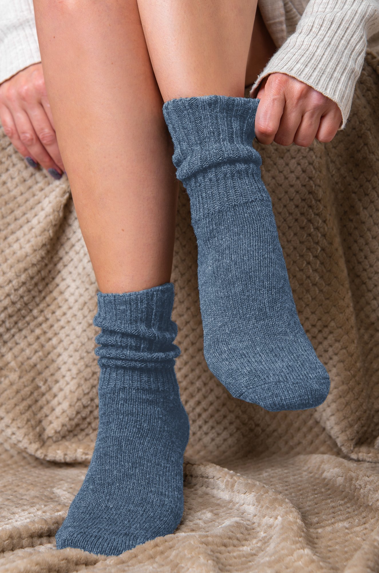 Домашние длинные носочки нежно облегают ноги и не сползают при активных движениях благодаря плотной вязаной резинке. Комплект вязаных носков оценят те, кто любит проводить время на свежем воздухе, подойдут женщинам и девочкам-подросткам. Термоноски подходят для дома и зимних видов спорта.