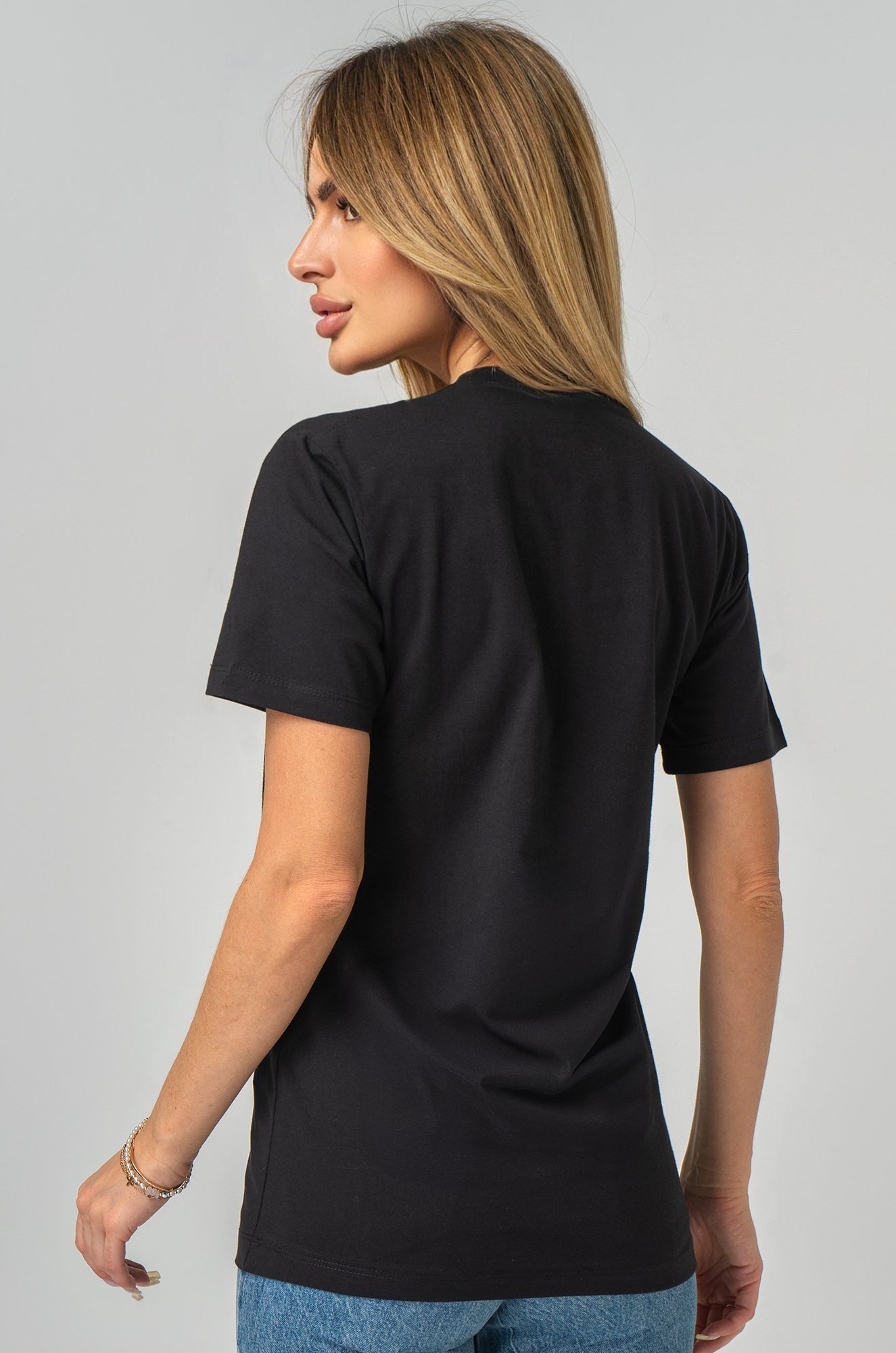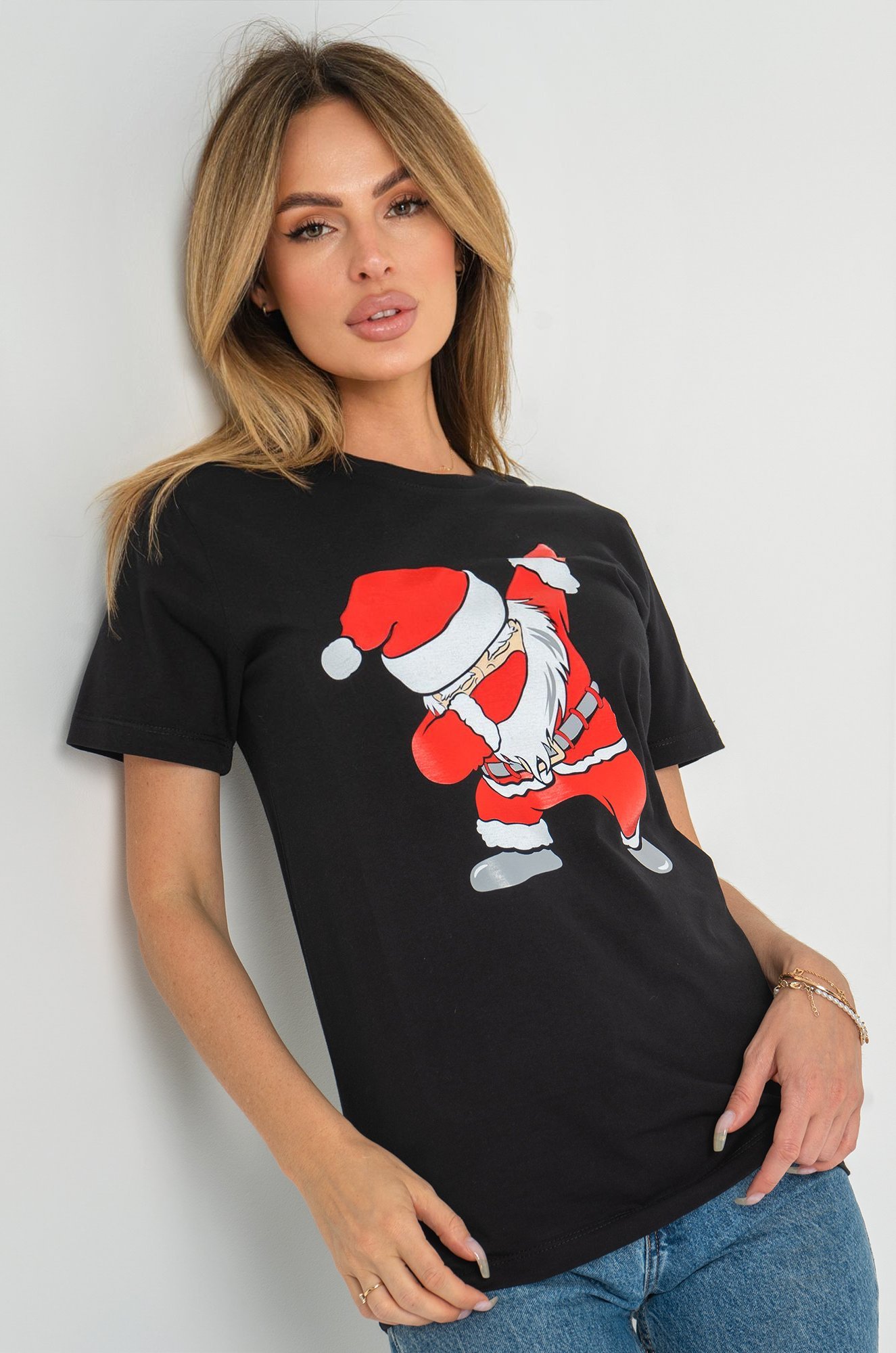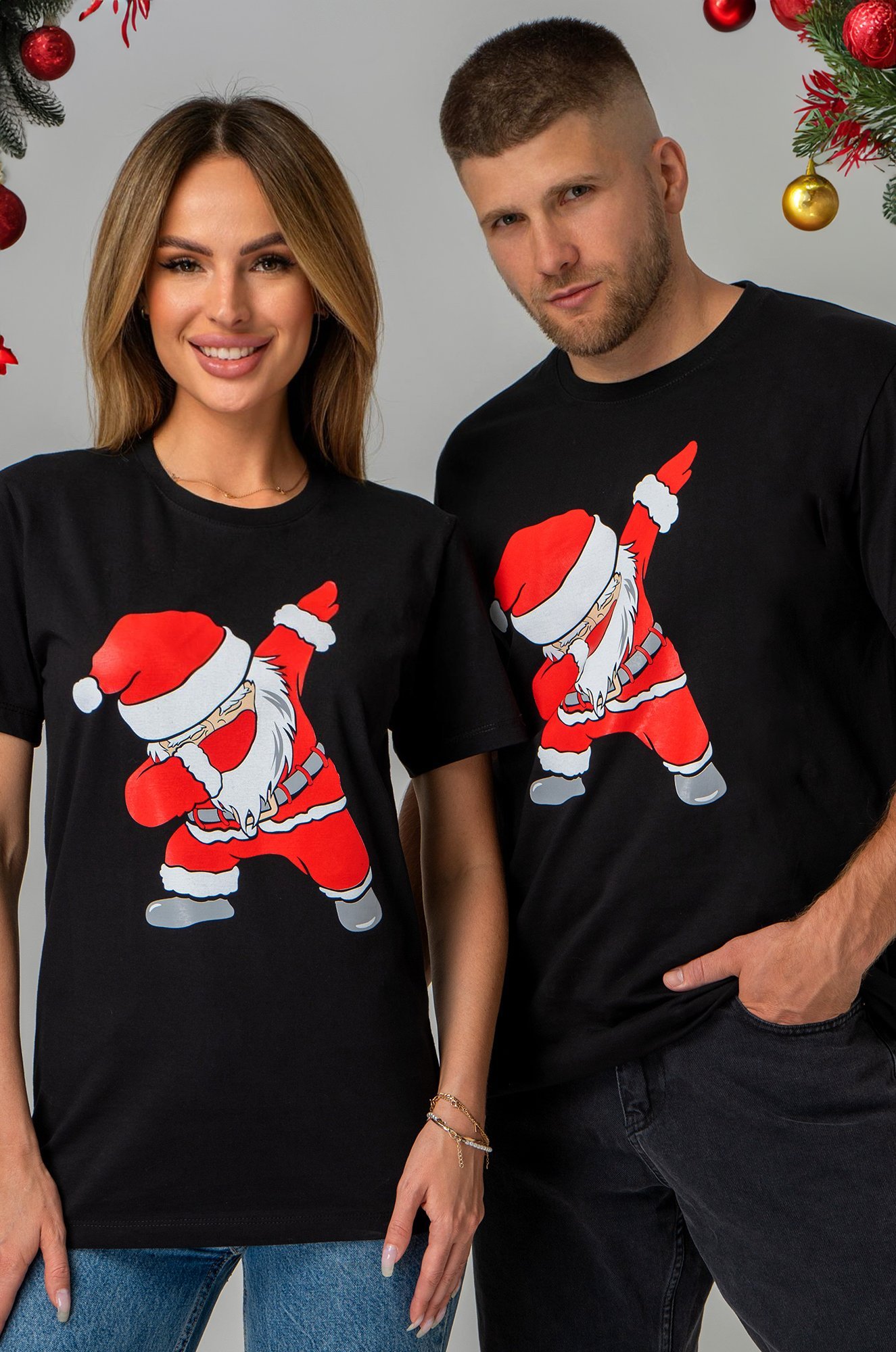 Черная футболка с принтом отлично подойдет для семейных встреч, дружеских вечеринок и просто уютных зимних дней.