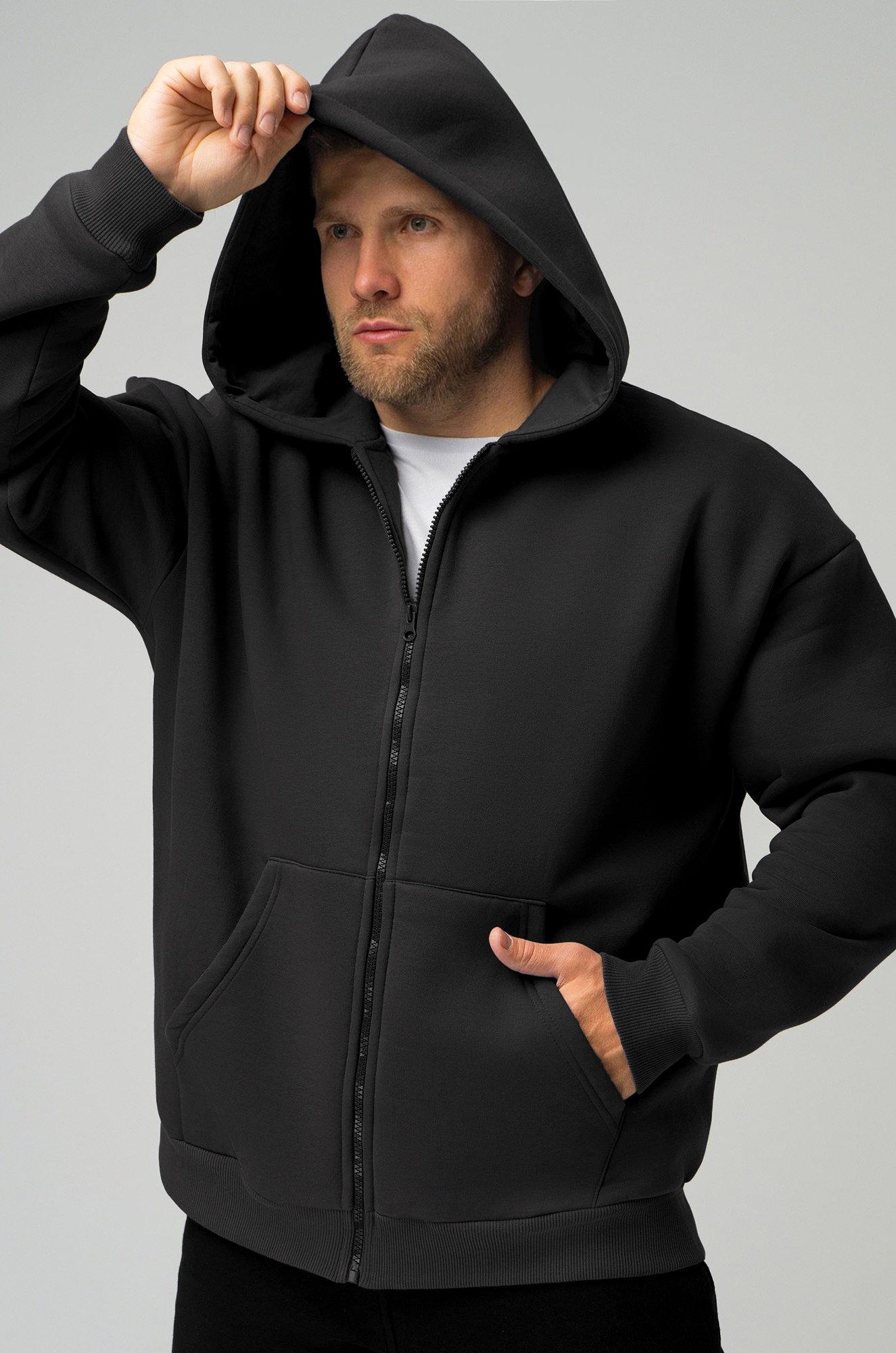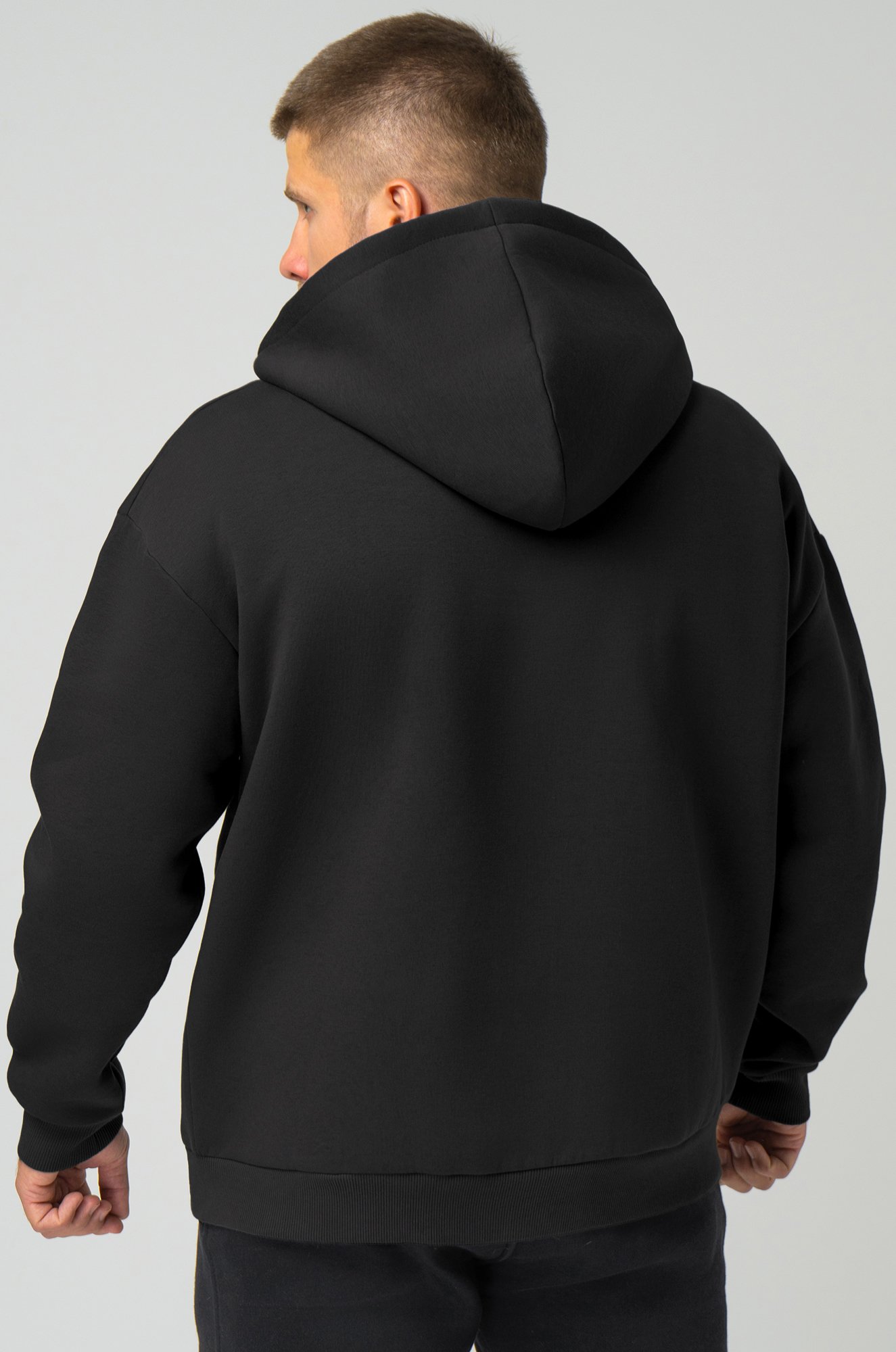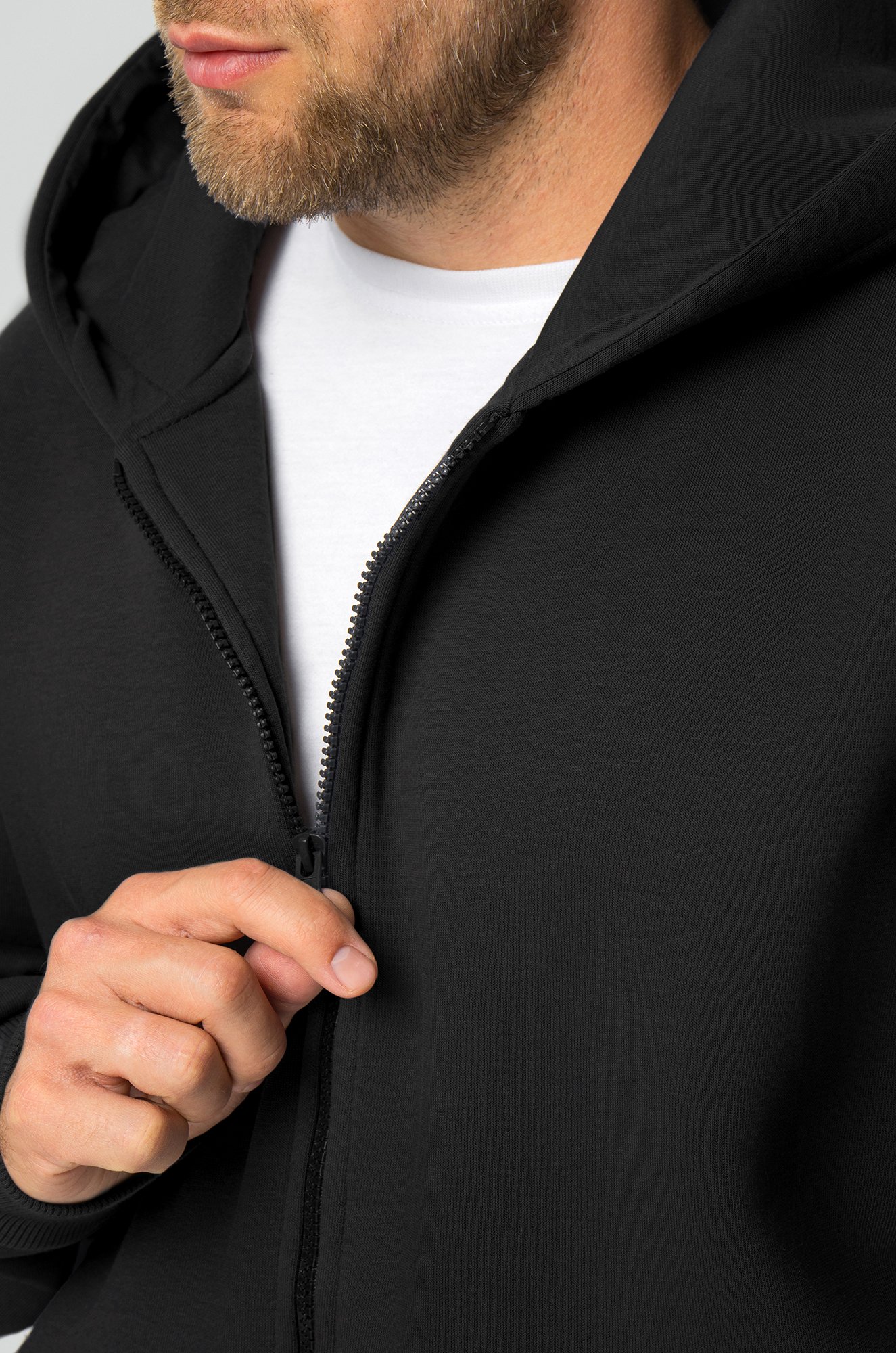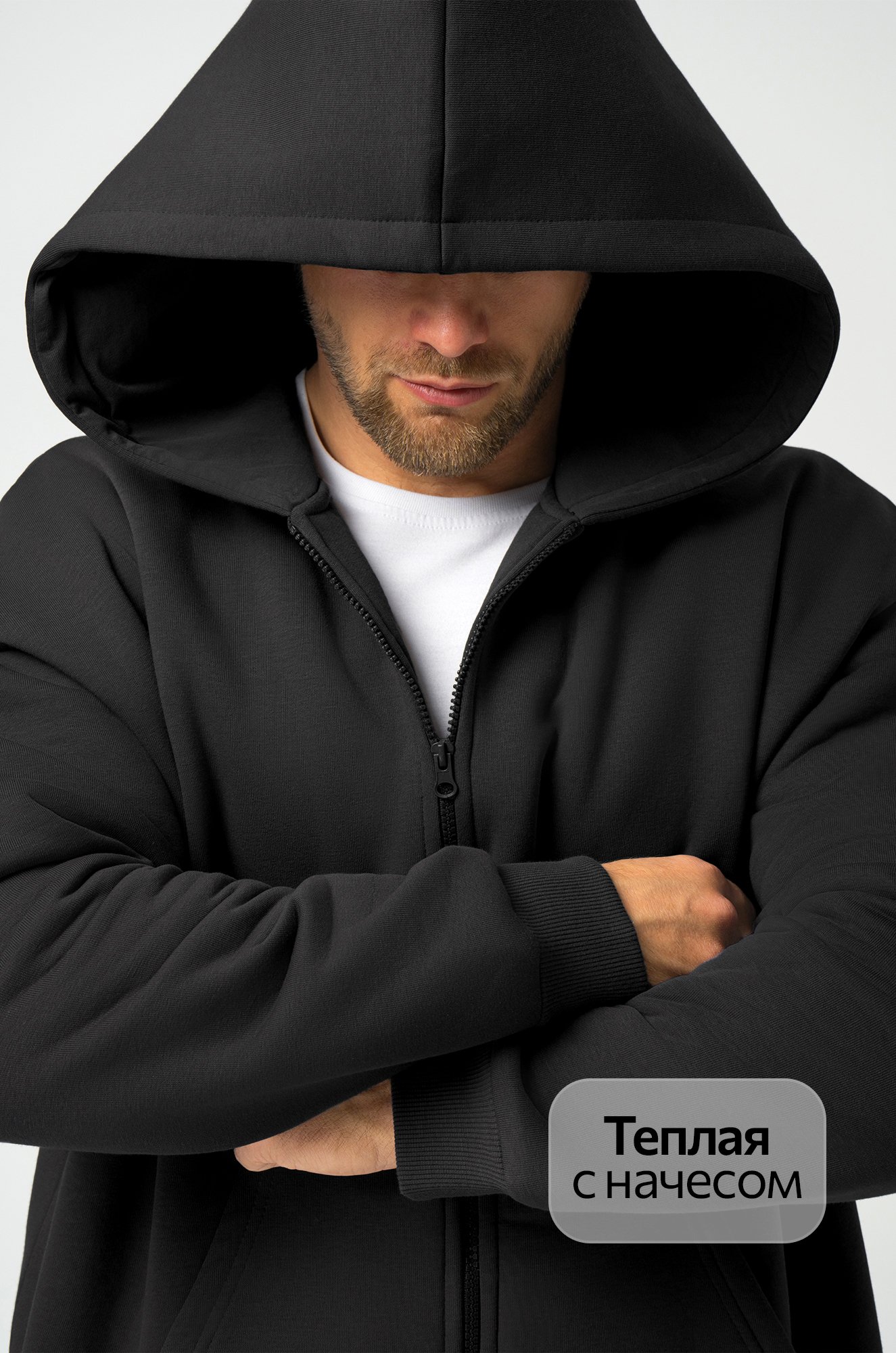 — черное худи на молнии выполнено из трикотажной ткани футер с начёсом;