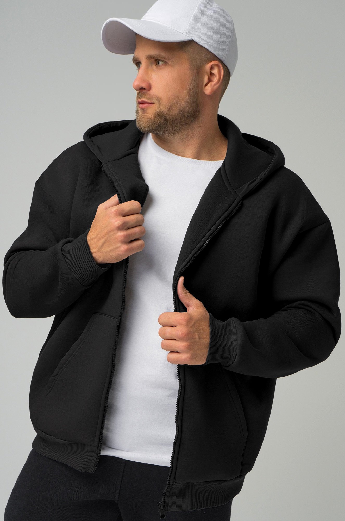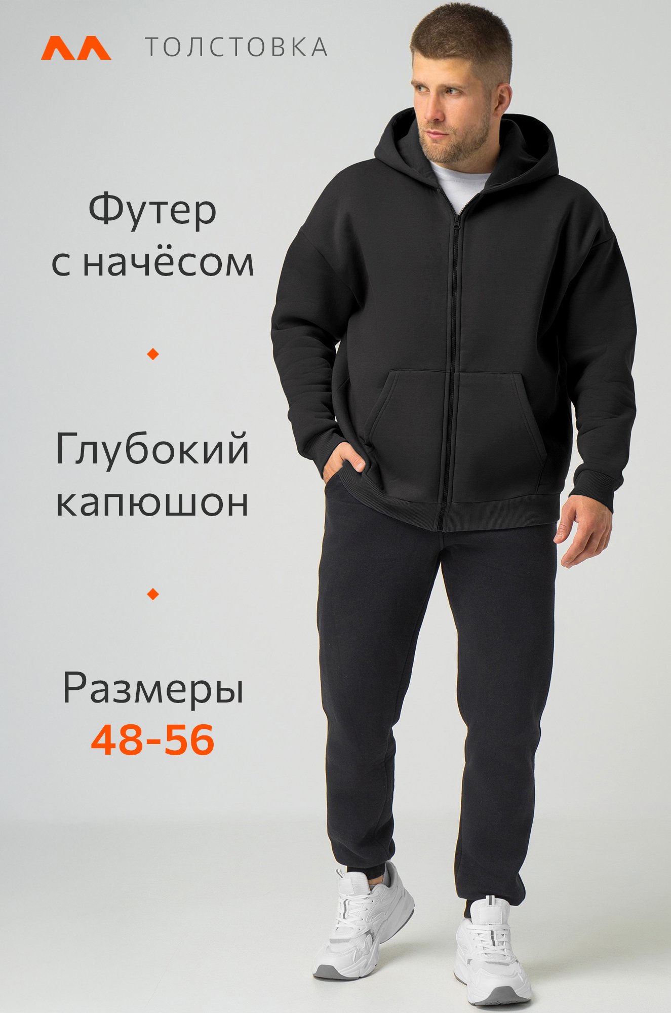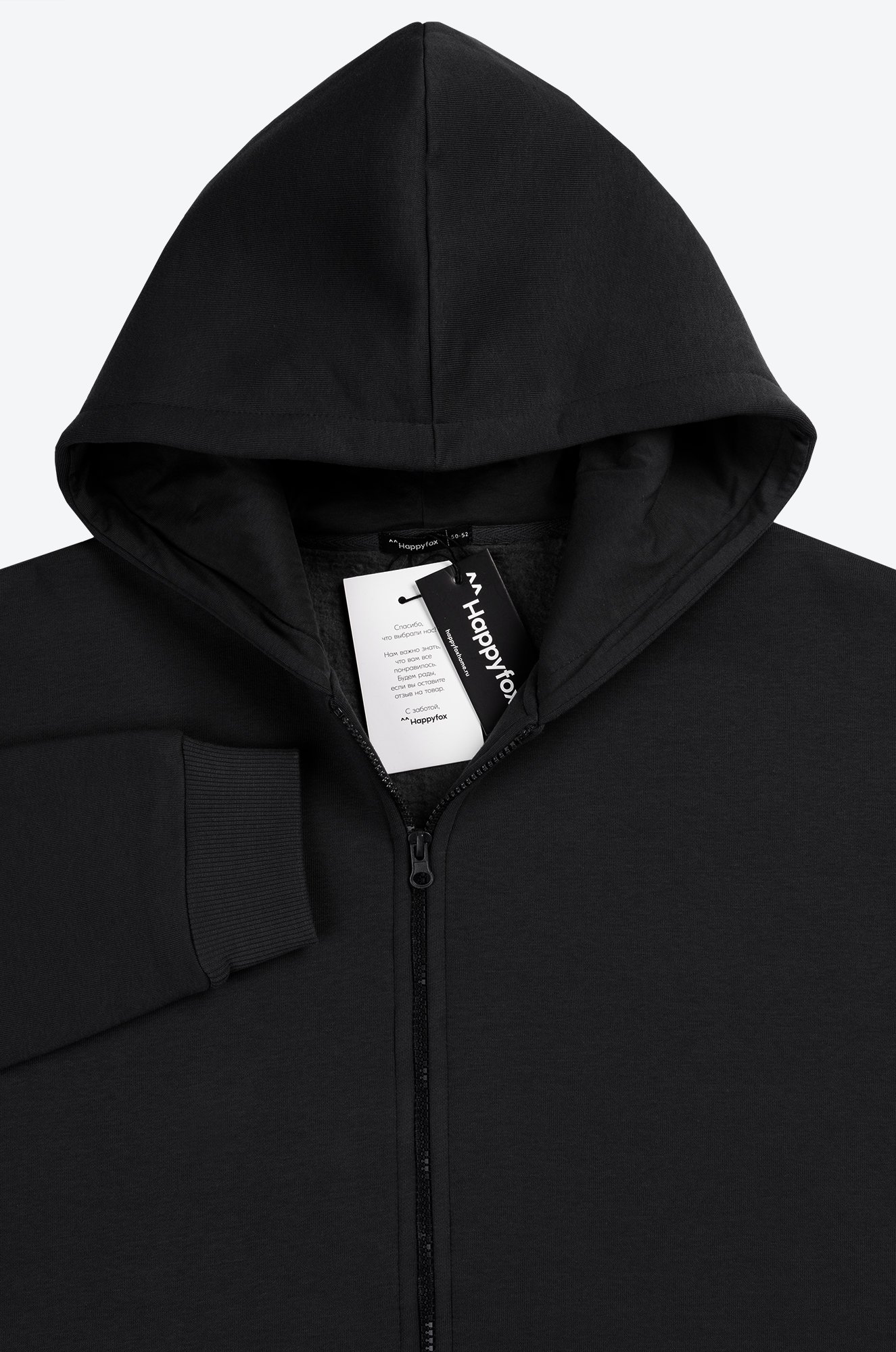 — черное худи на молнии выполнено из трикотажной ткани футер с начёсом;