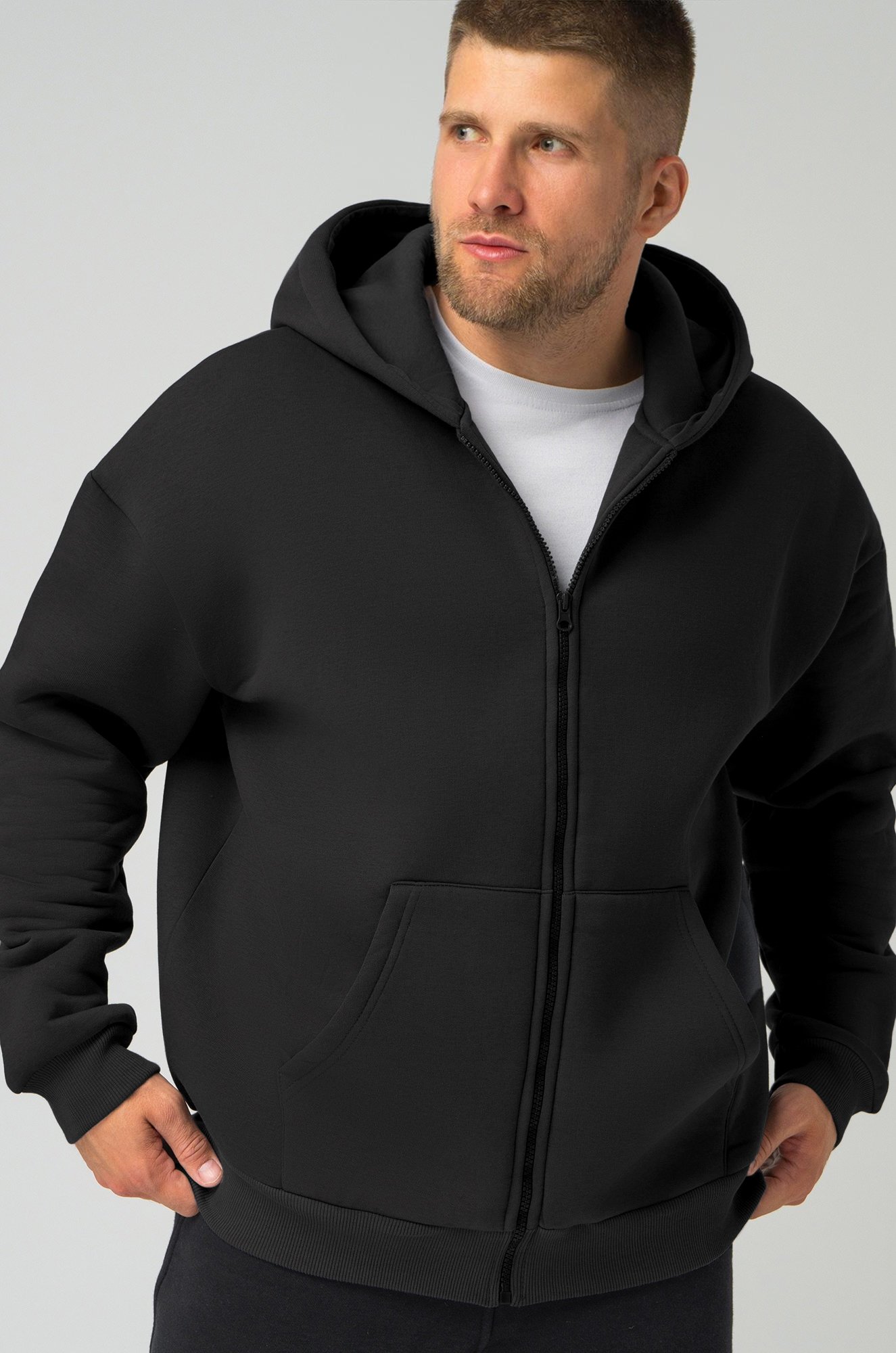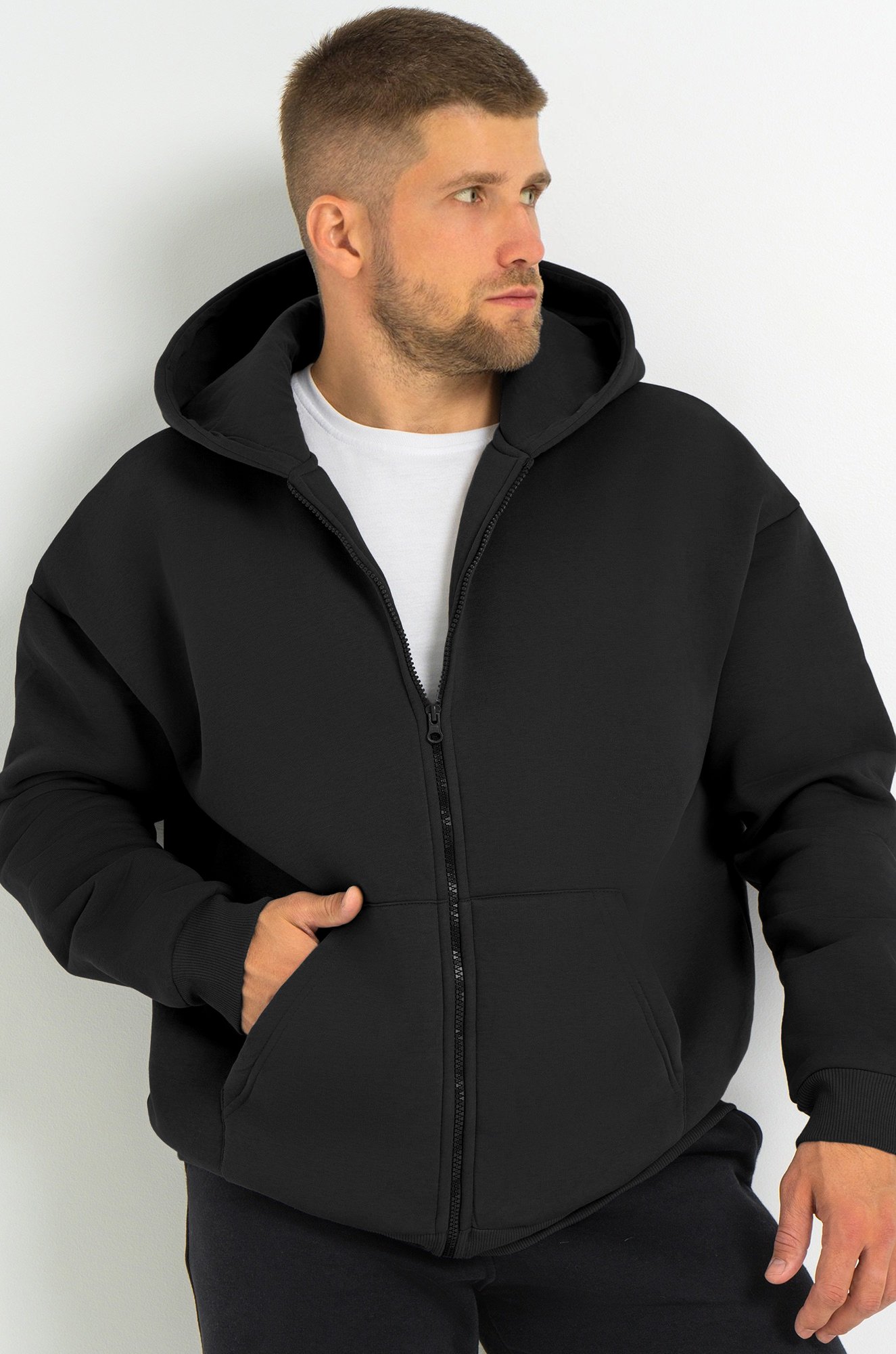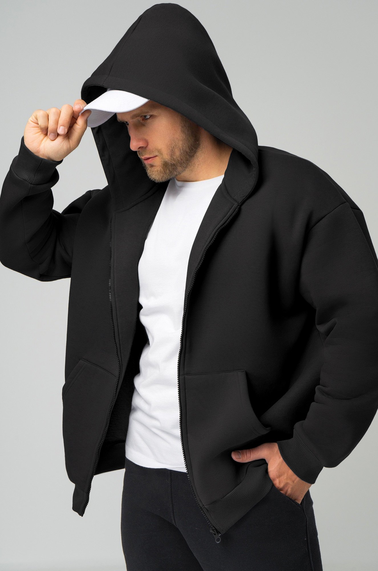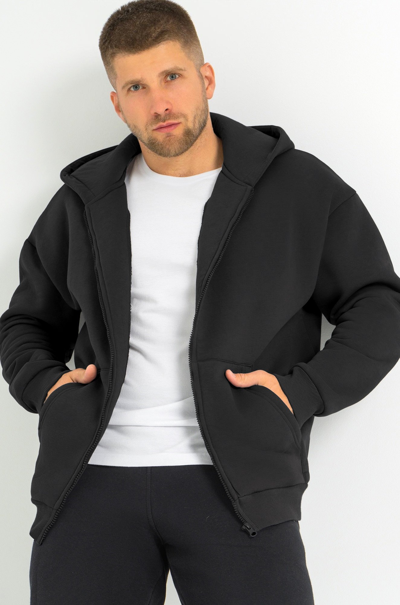 — черное худи на молнии выполнено из трикотажной ткани футер с начёсом;
