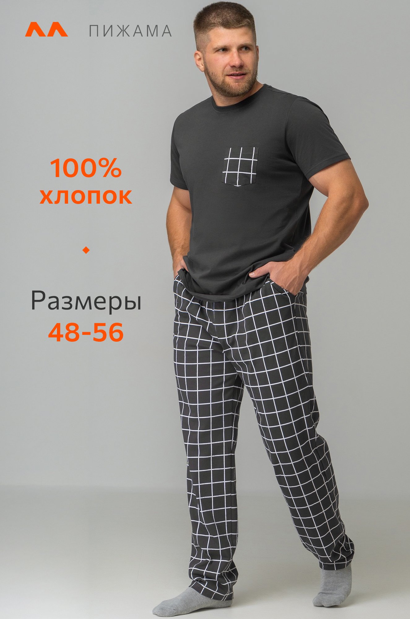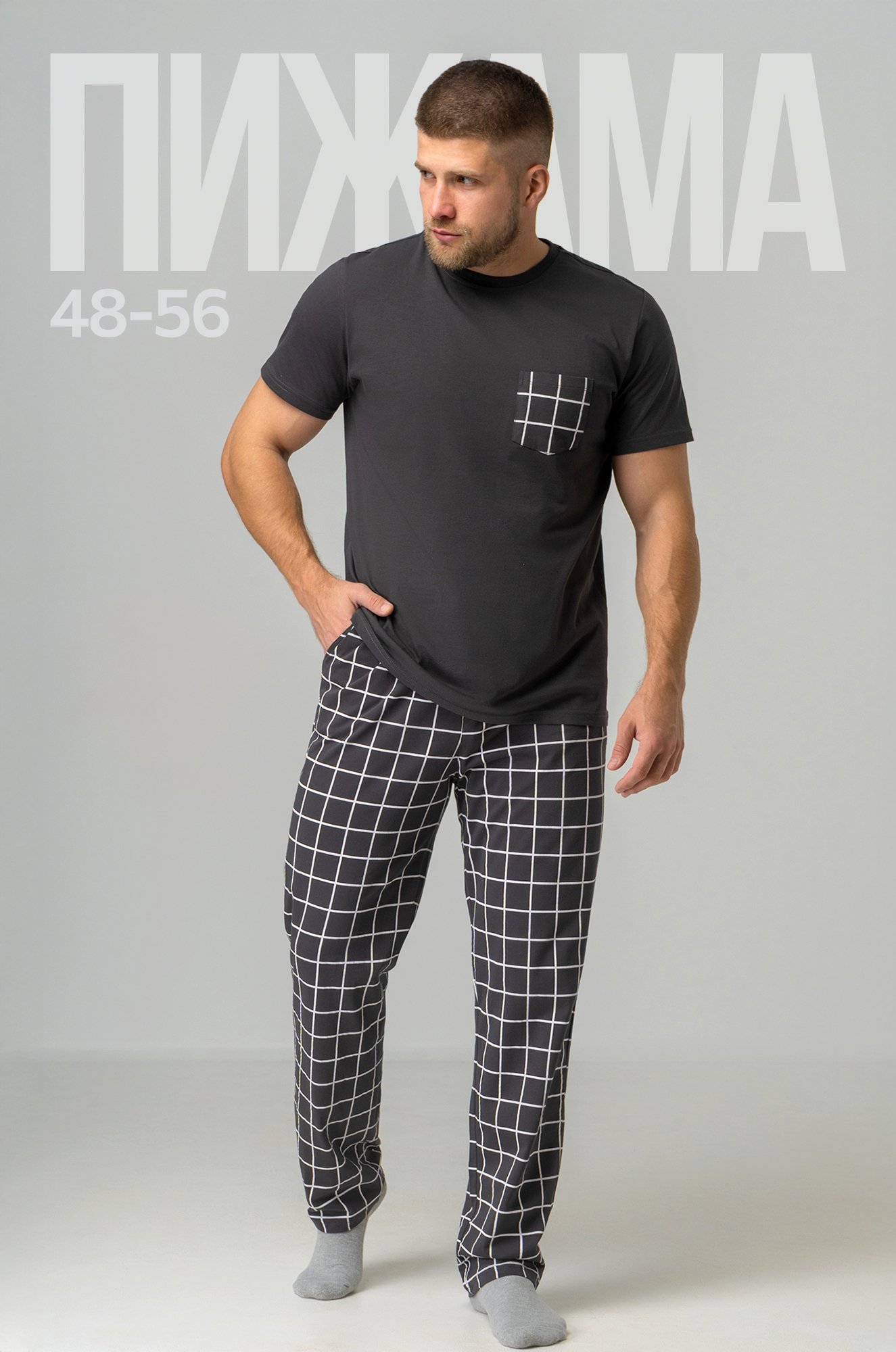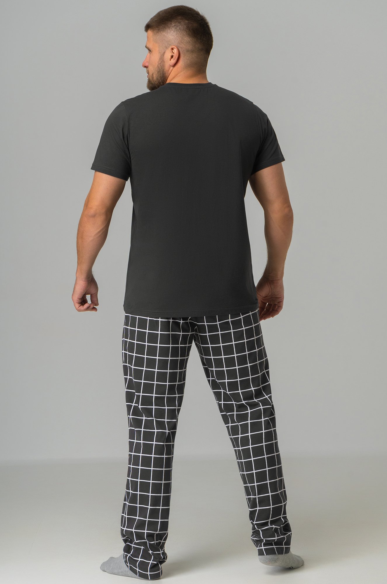 Футболка прямого кроя не стесняет движения, а свободные штаны сделают сон и домашний досуг максимально комфортными. В трикотажной пижаме с принтом в клетку вы будете чувствовать себя очень свободно и уютно дома, на даче или на отдыхе. Трикотажную пижаму для мужчин можно взять с собой в путешествие, чтобы насладиться комфортом в отпуске. Комплект двойка станет отличным подарком для близкого человека.