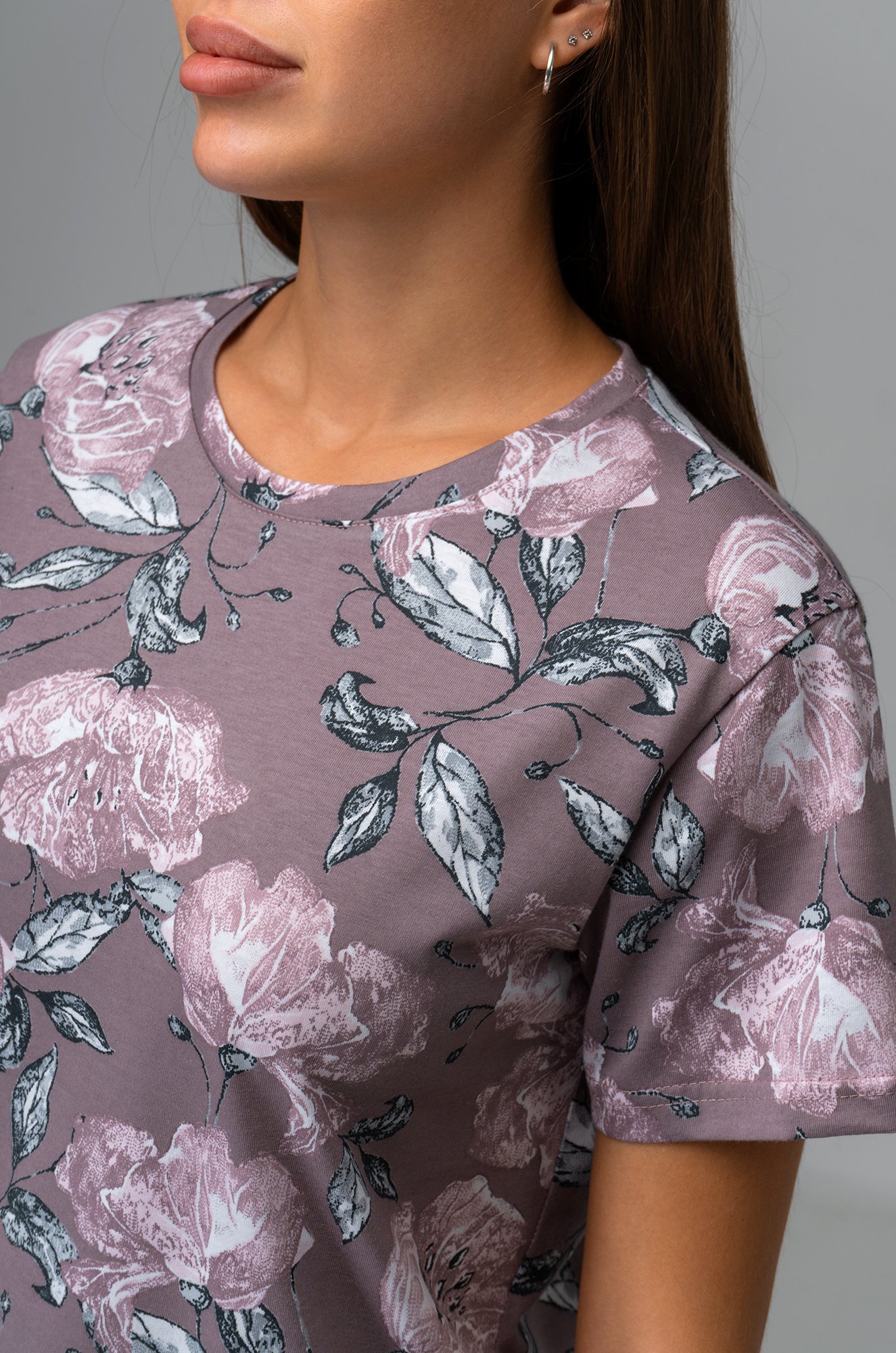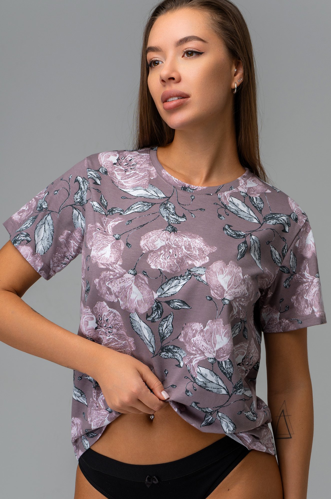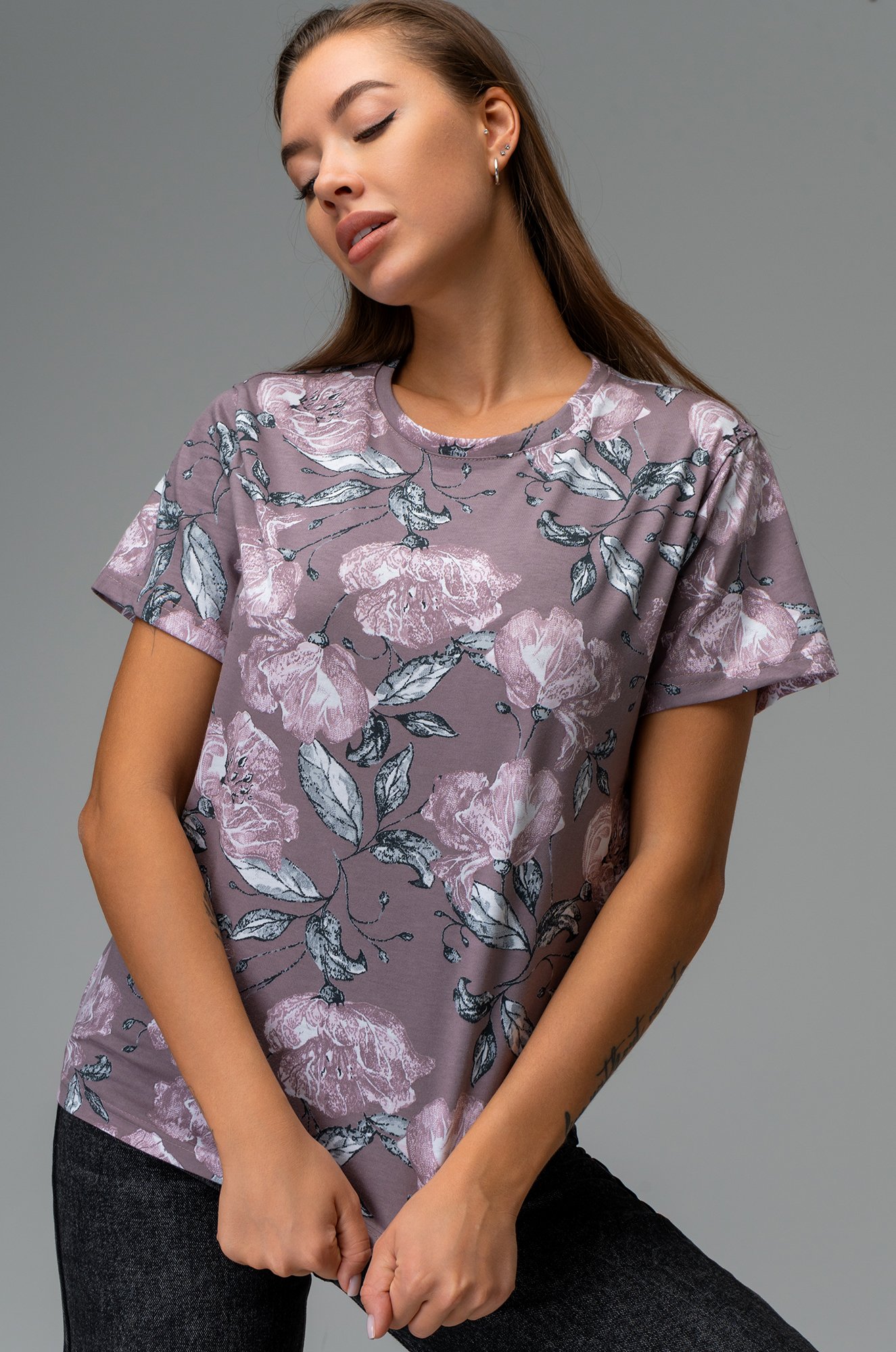 Благодаря широкому размерному ряду и свободному крою футболка подойдет женщинам и девушкам. Трикотажная футболка с рисунком цветы прекрасно вписывается в повседневные образы. Хлопковая футболка идеальна на лето, с ней получатся классные варианты!