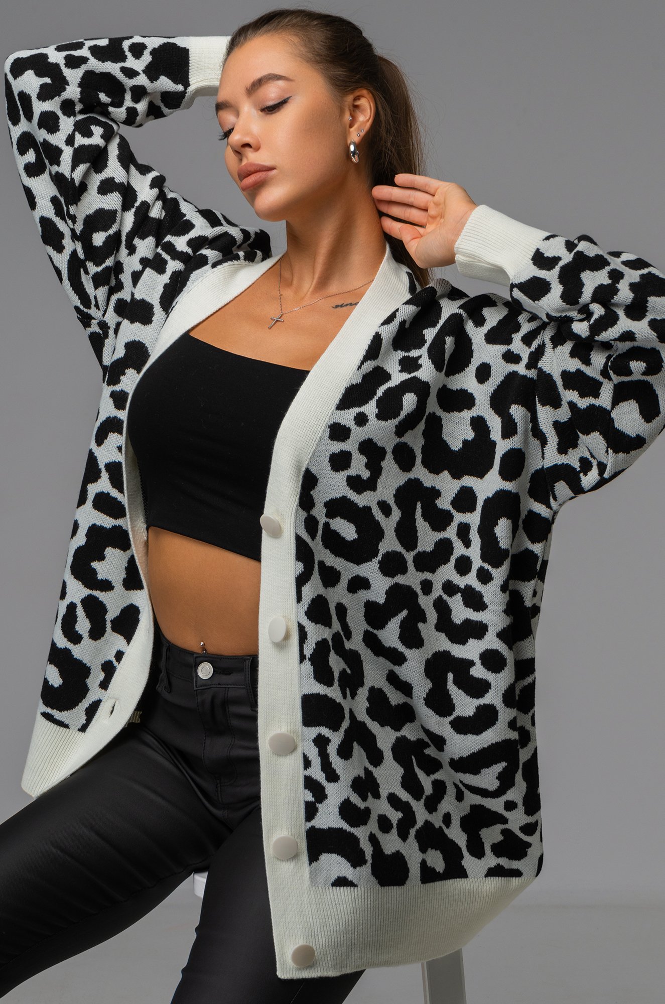 Будьте смелее с женским леопардовым кардиганом в своих экспериментах. Удлиненная модель оверсайз станет идеальным дополнением гардероба и позволит создать множество стильных сочетаний для любого случая.