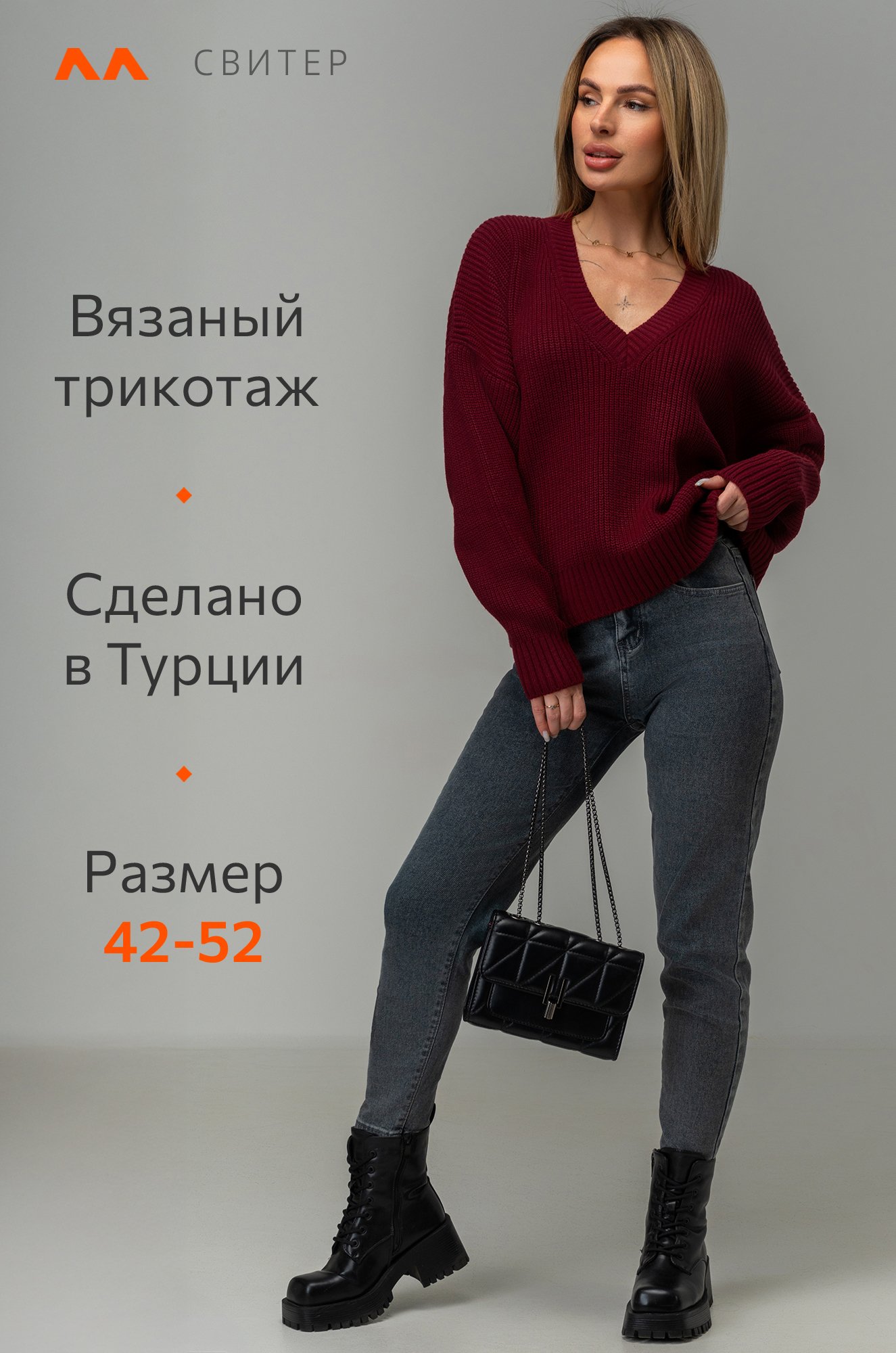 Пуловер oversize – отличный вариант для тех, кто хочет разнообразить повседневный гардероб зимой и осенью. Красный свитер с V-вырезом отлично подходит для прогулок и работы в офисе. Вязаный свитер с длинным рукавом one size поможет создать образ в стиле смарт кэжуал (smart casual).