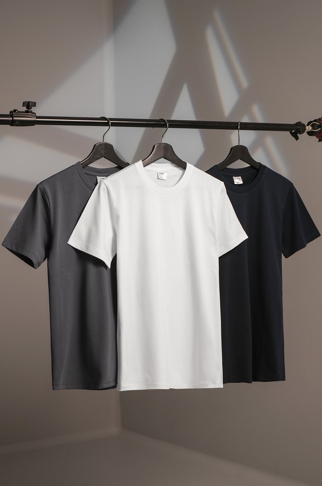 Чистый хлопок, чёткий силуэт и практичные цвета — три базовых футболки для комфортного и стильного дня.