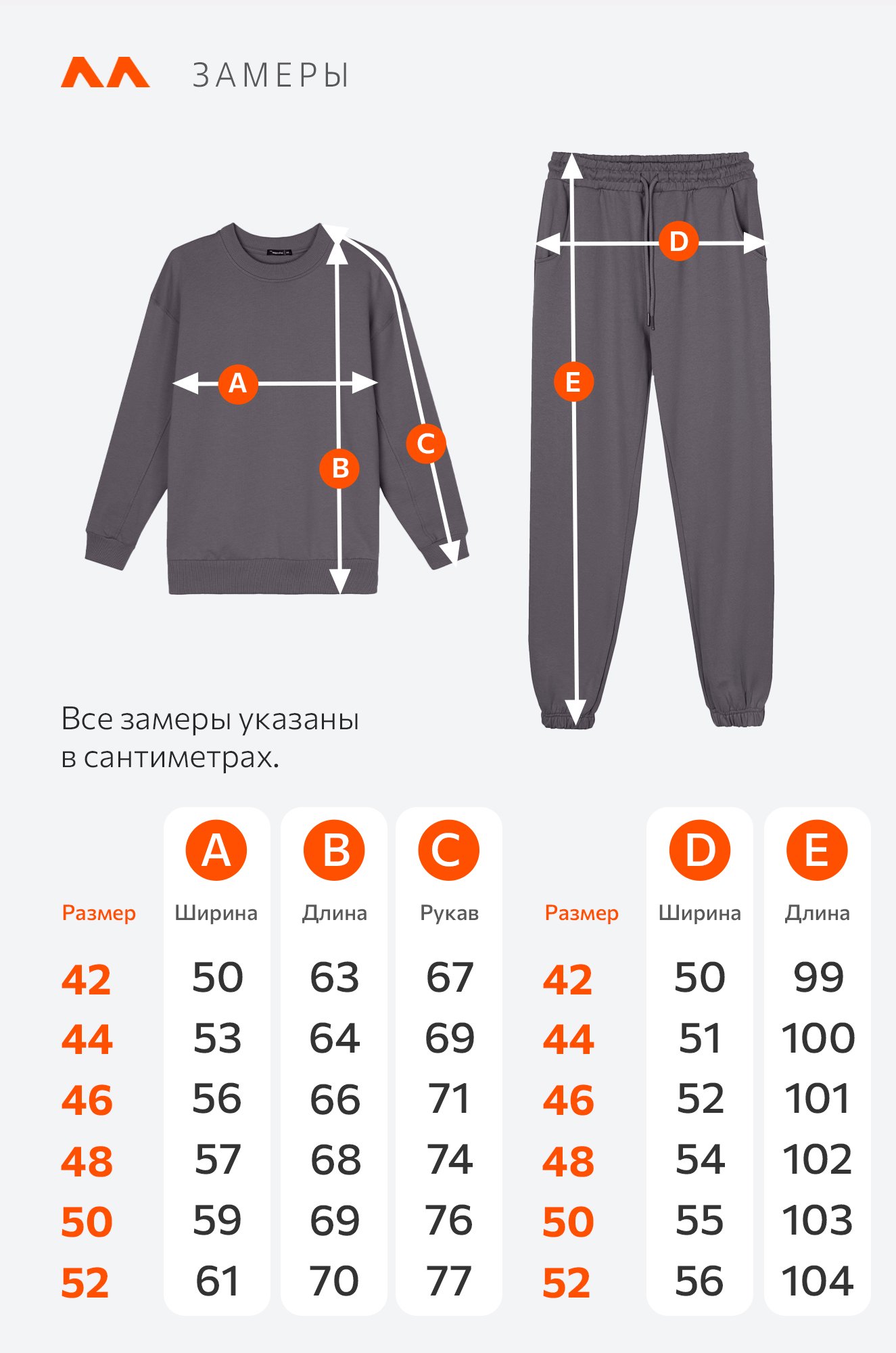 Размер 42: джемпер: длина:63 см; ширина:50 см; длина рукава внешняя:67 см; длина рукава внутренняя:43 см.