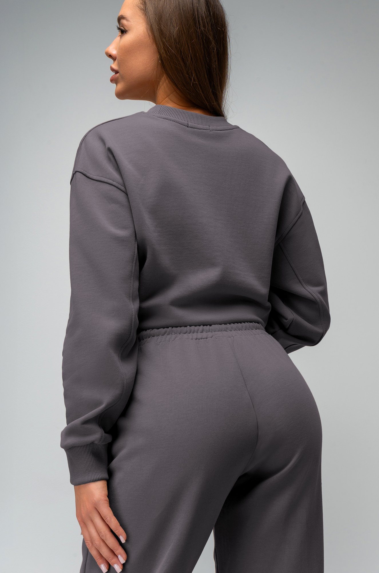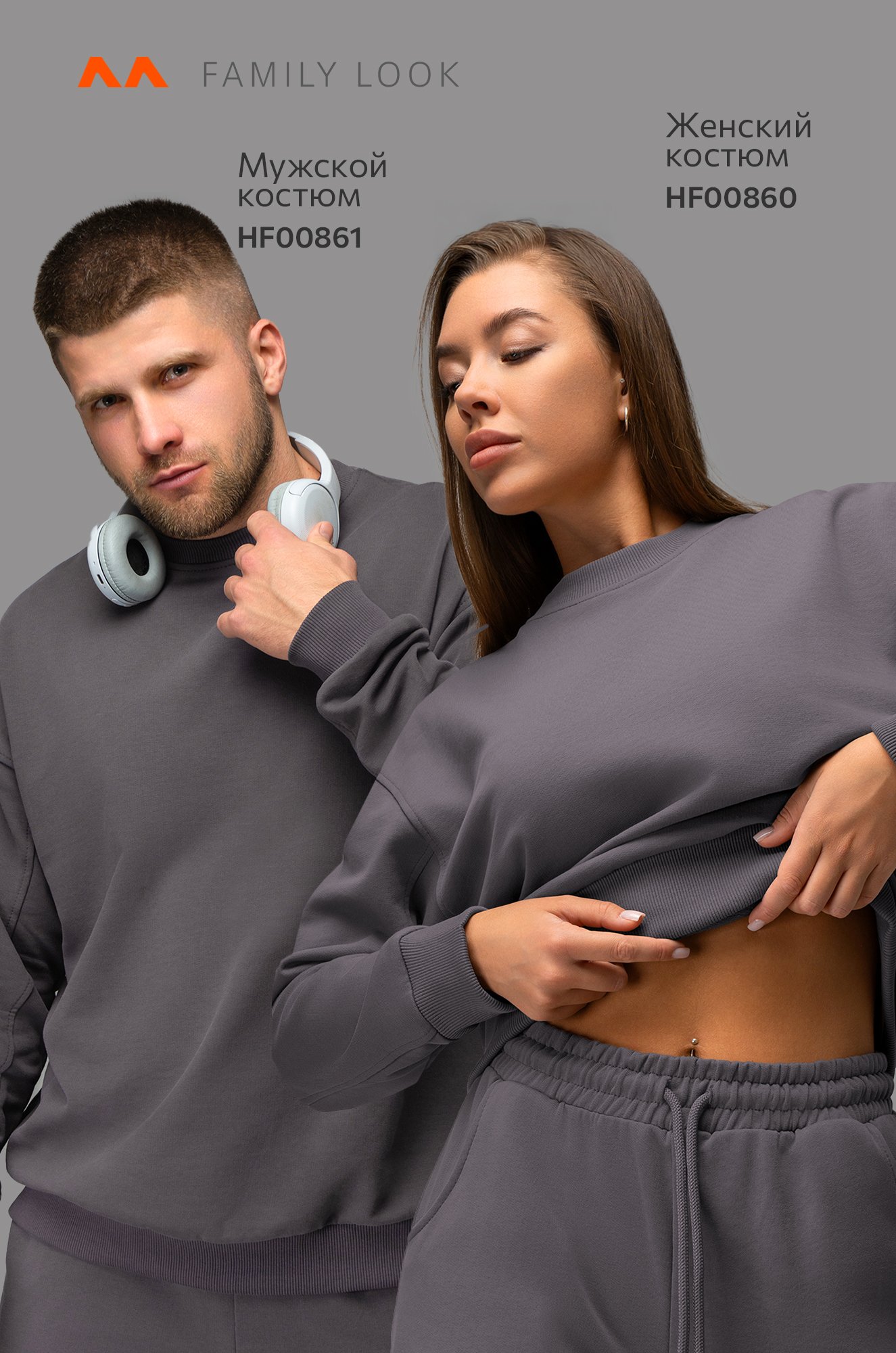 Трикотажный серый костюм идеален для спорта, долгих прогулок и поездок на природу осенью или зимой. Толстовку и спортивки можно надевать по отдельности и создавать на их основе самые разные образы.