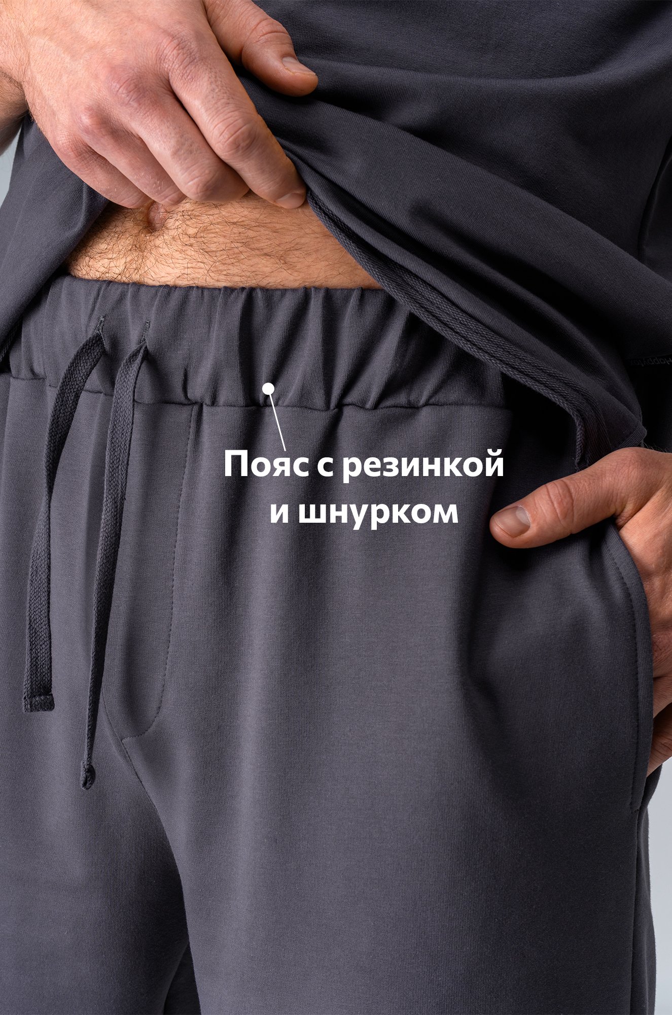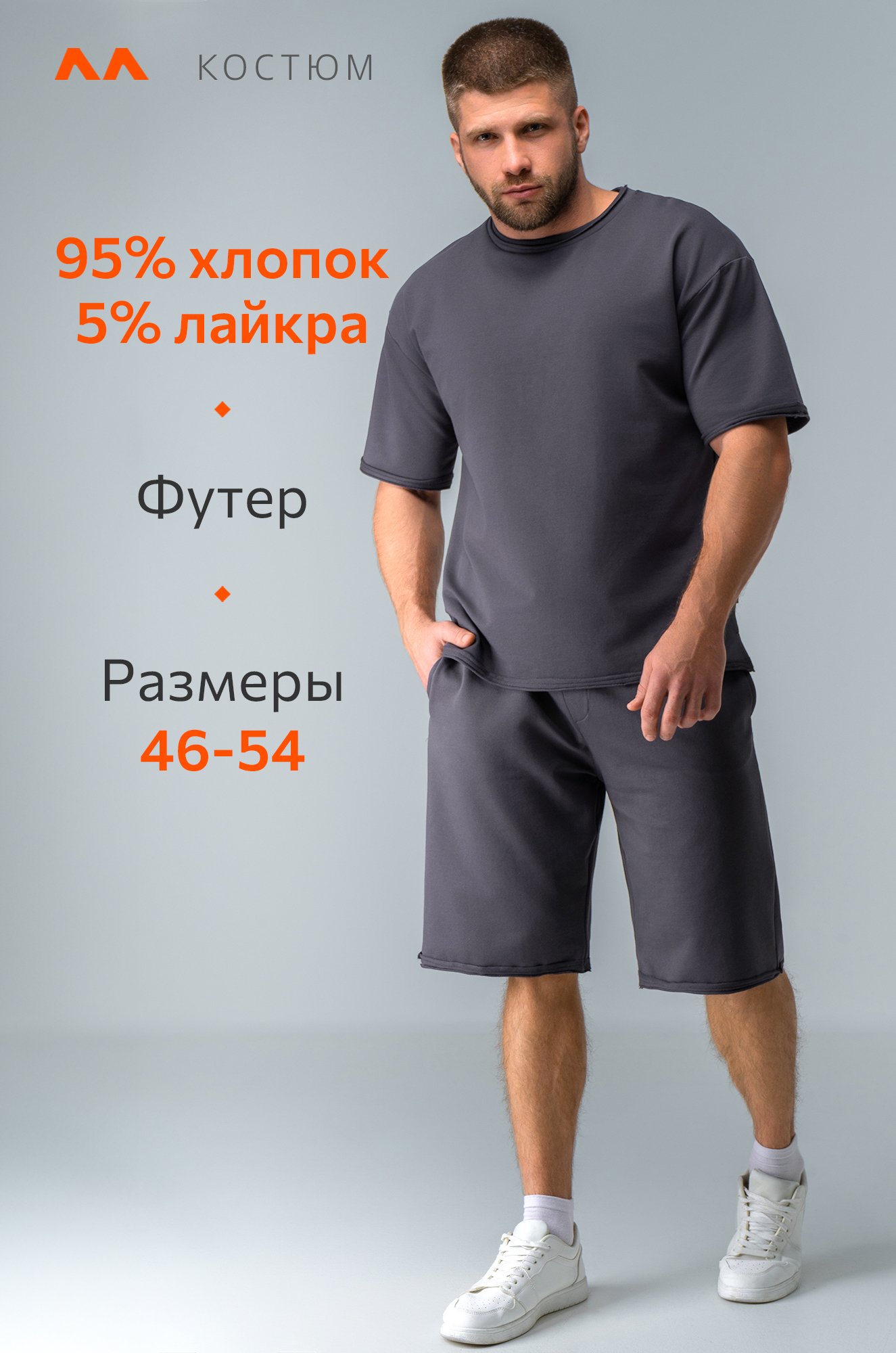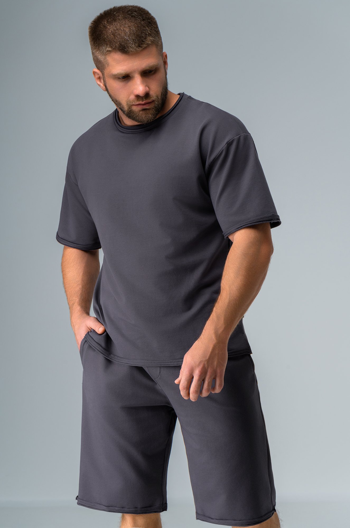 Мужской спортивный костюм с шортами — идеальный спутник для активного отдыха. Однотонный темно-серый костюм выполнен из хлопкового футера двухнитки (230 г/м2), который обеспечивает удобство и дышащие свойства, что делает его идеальным выбором для тренировок и повседневного ношения. Натуральный хлопок гарантирует мягкость и комфорт, а лайкра дарит идеальную посадку.