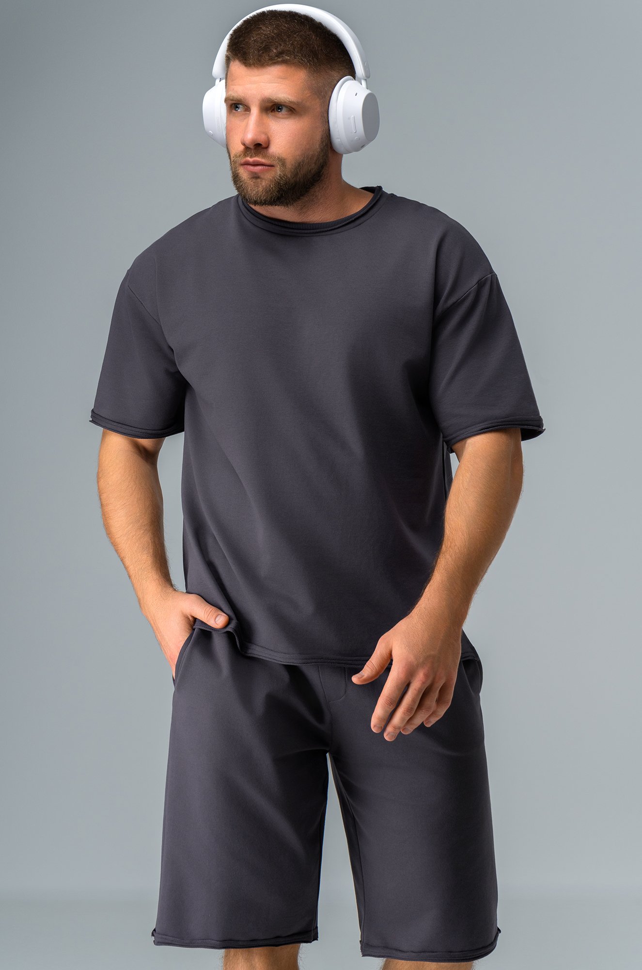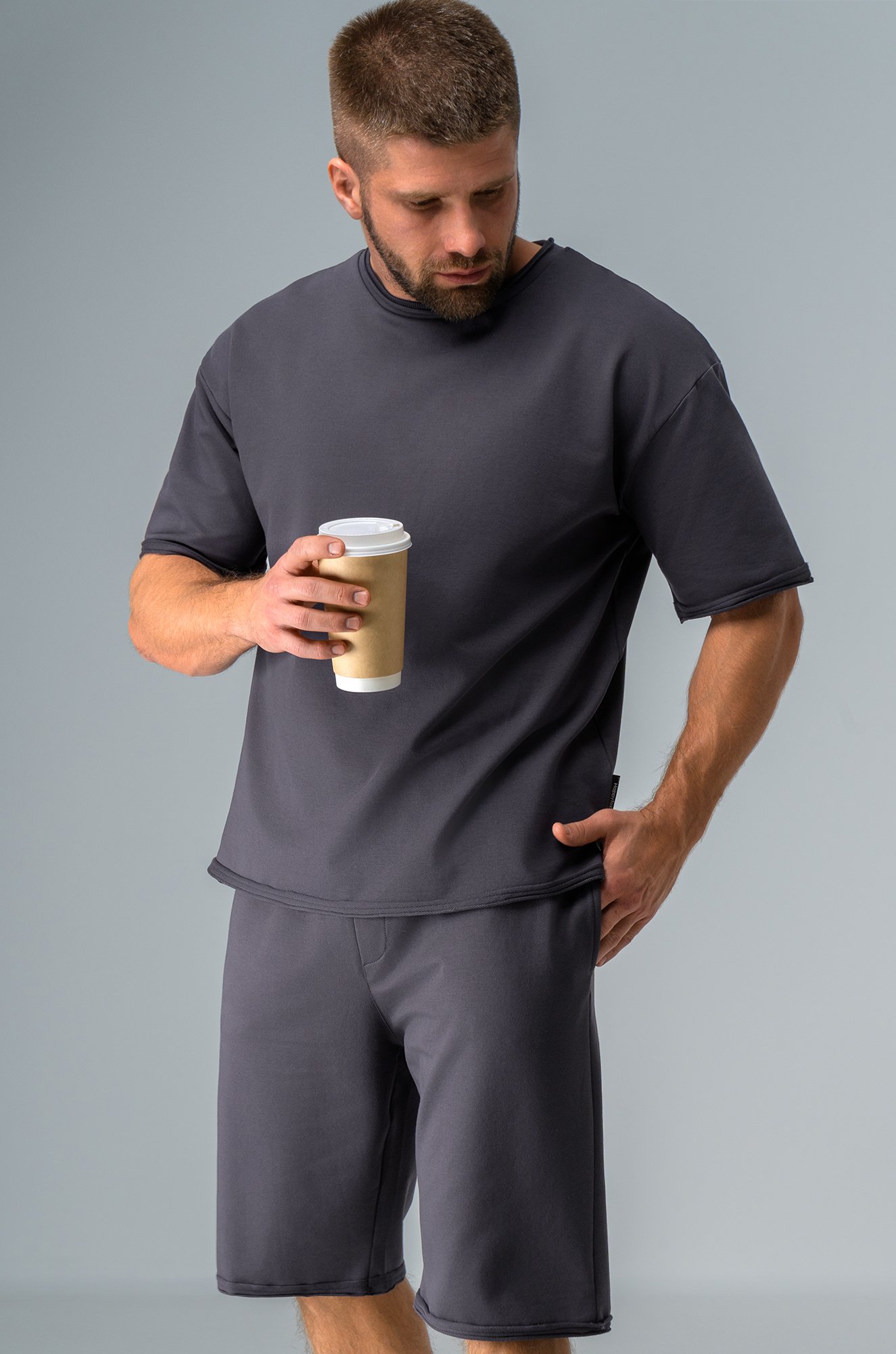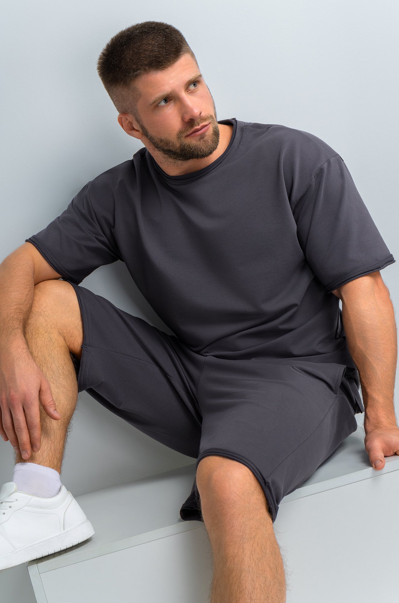 Трикотажный летний костюм графитового цвета подходит для тех, кто ценит комфорт в спорте и повседневной жизни. Антрацитовый костюм двойка станет отличным выбором на лето.