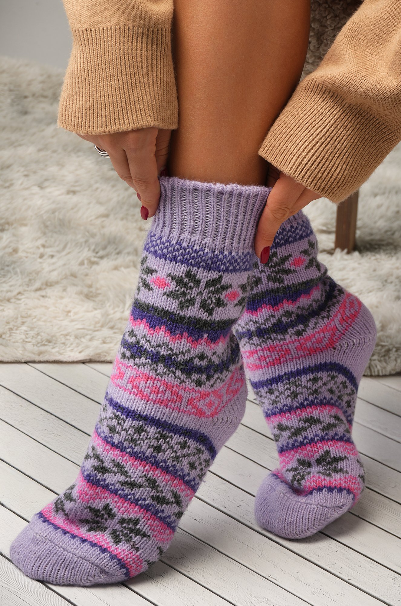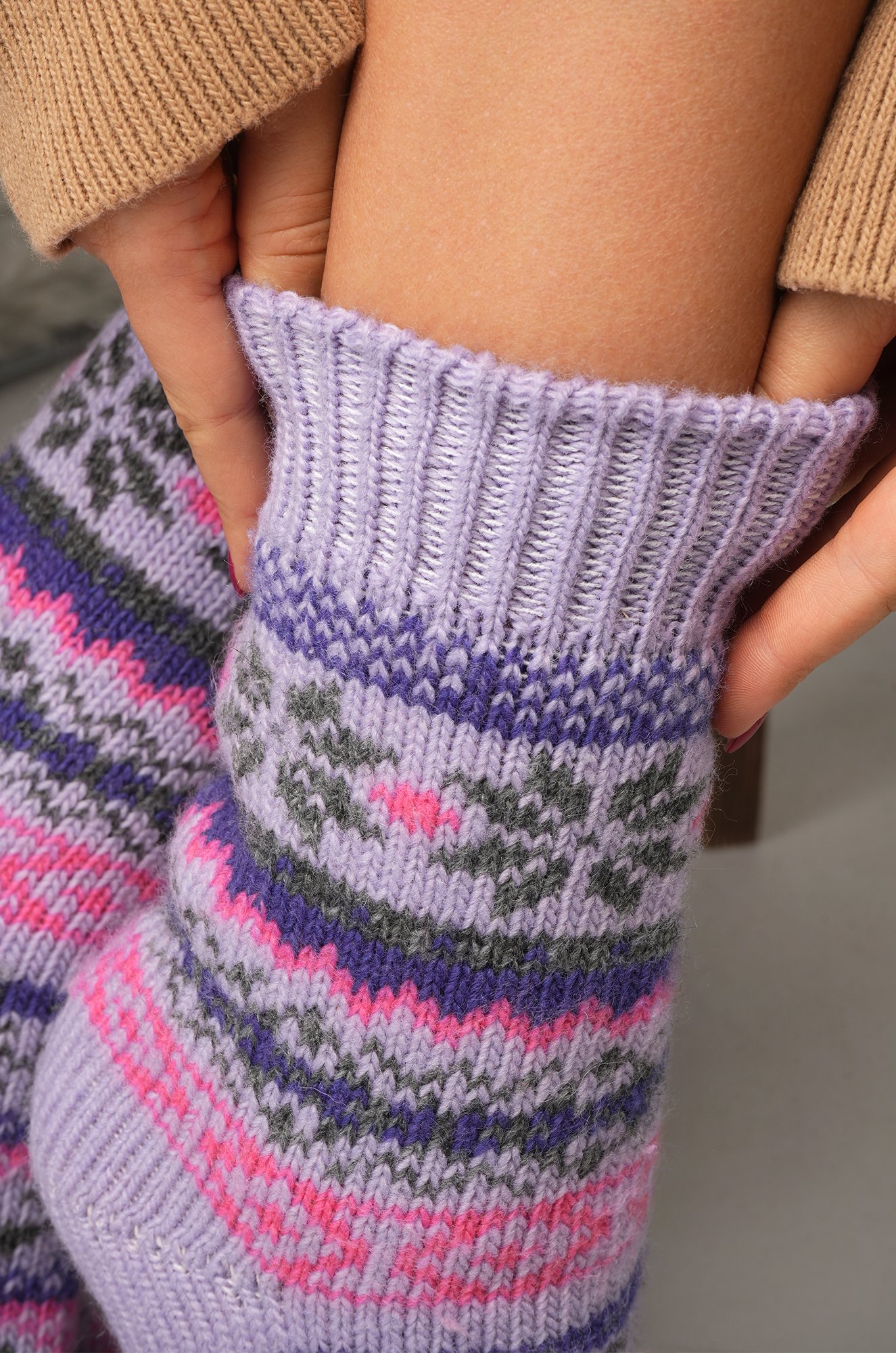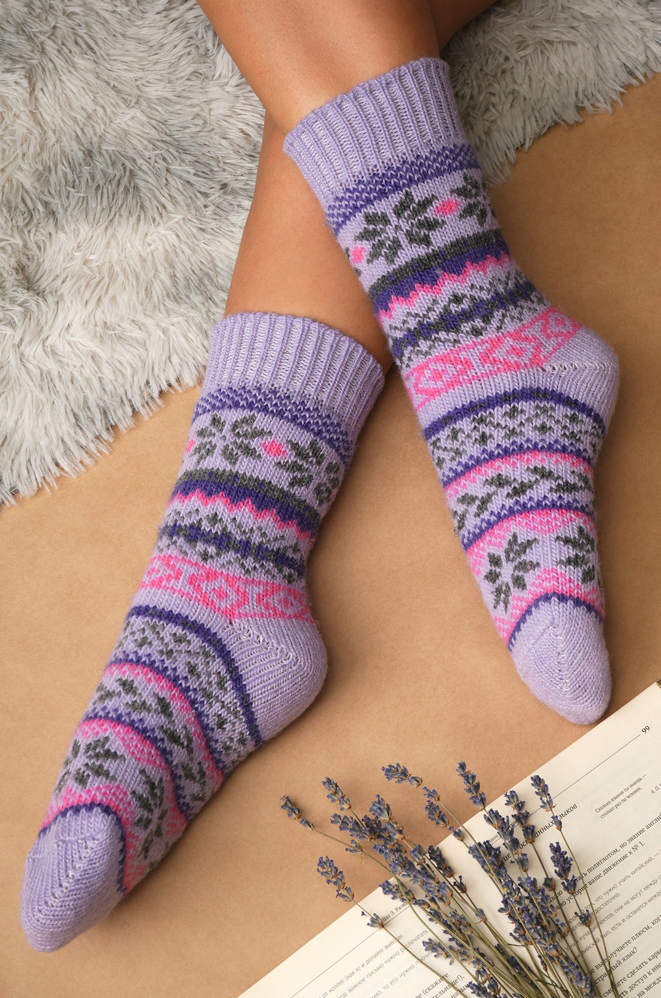 Уют начинается с деталей! Сиреневые носочки с узором Снежинки — приятный маленький акцент в новогодней атмосфере. Женские шерстяные носки создадут уют в доме и подарят ощущение тепла. Они идеально подойдут как для себя, так и в качестве подарка на Новый год или Рождество.