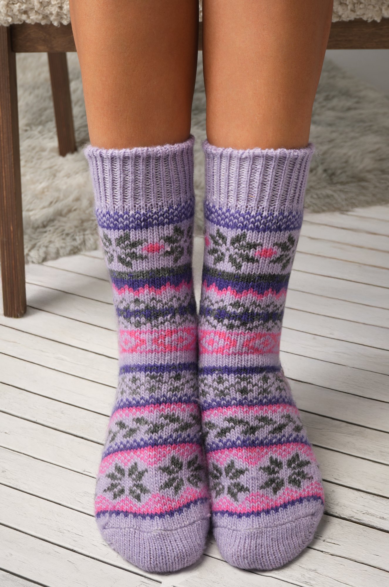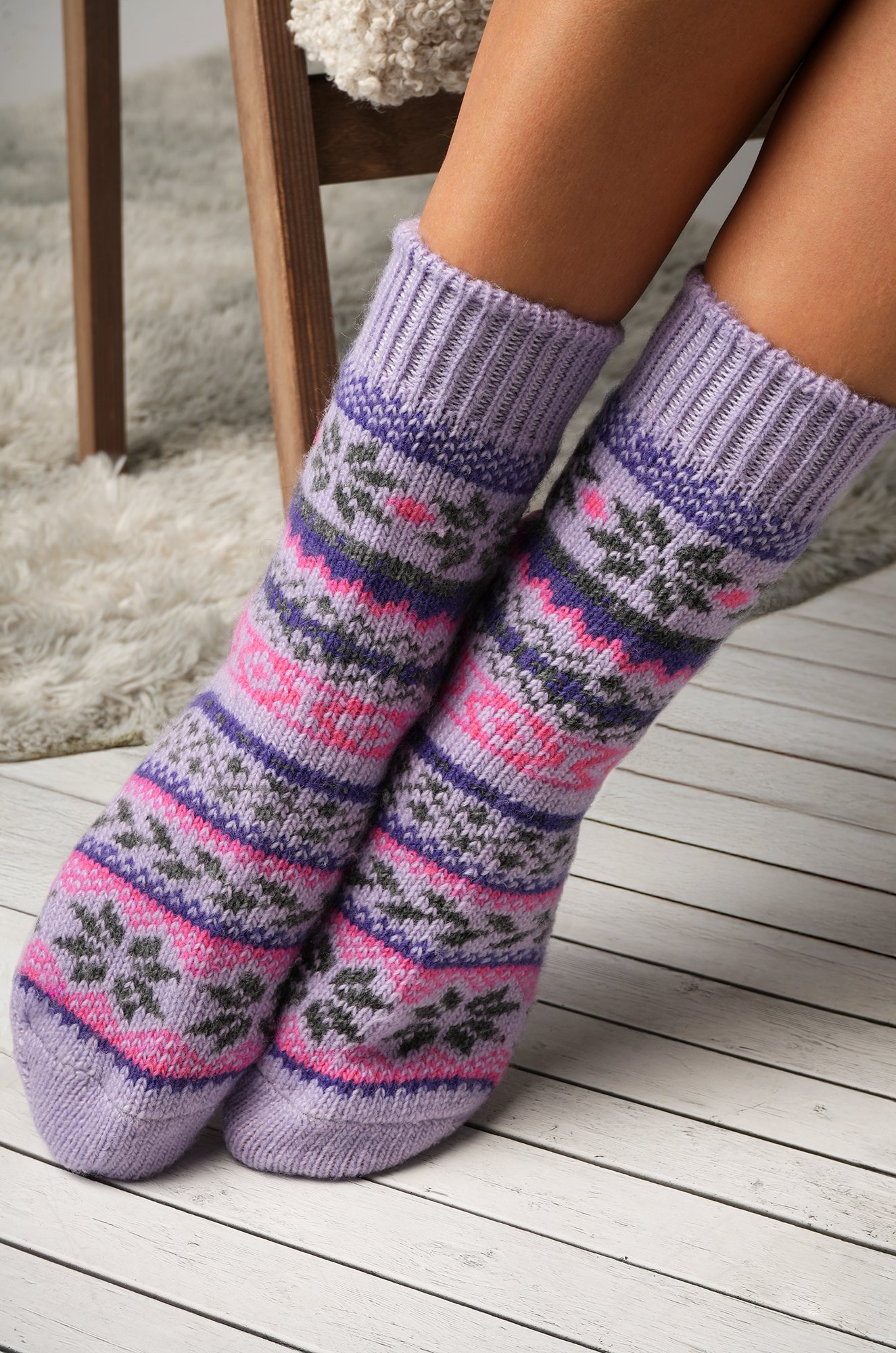 Теплые женские носочки прекрасно подойдут для дома, когда хочется уюта и нежности. Вязаные шерстяные носки с рисунком украсят зимние вечера и сделают их по-настоящему сказочными.