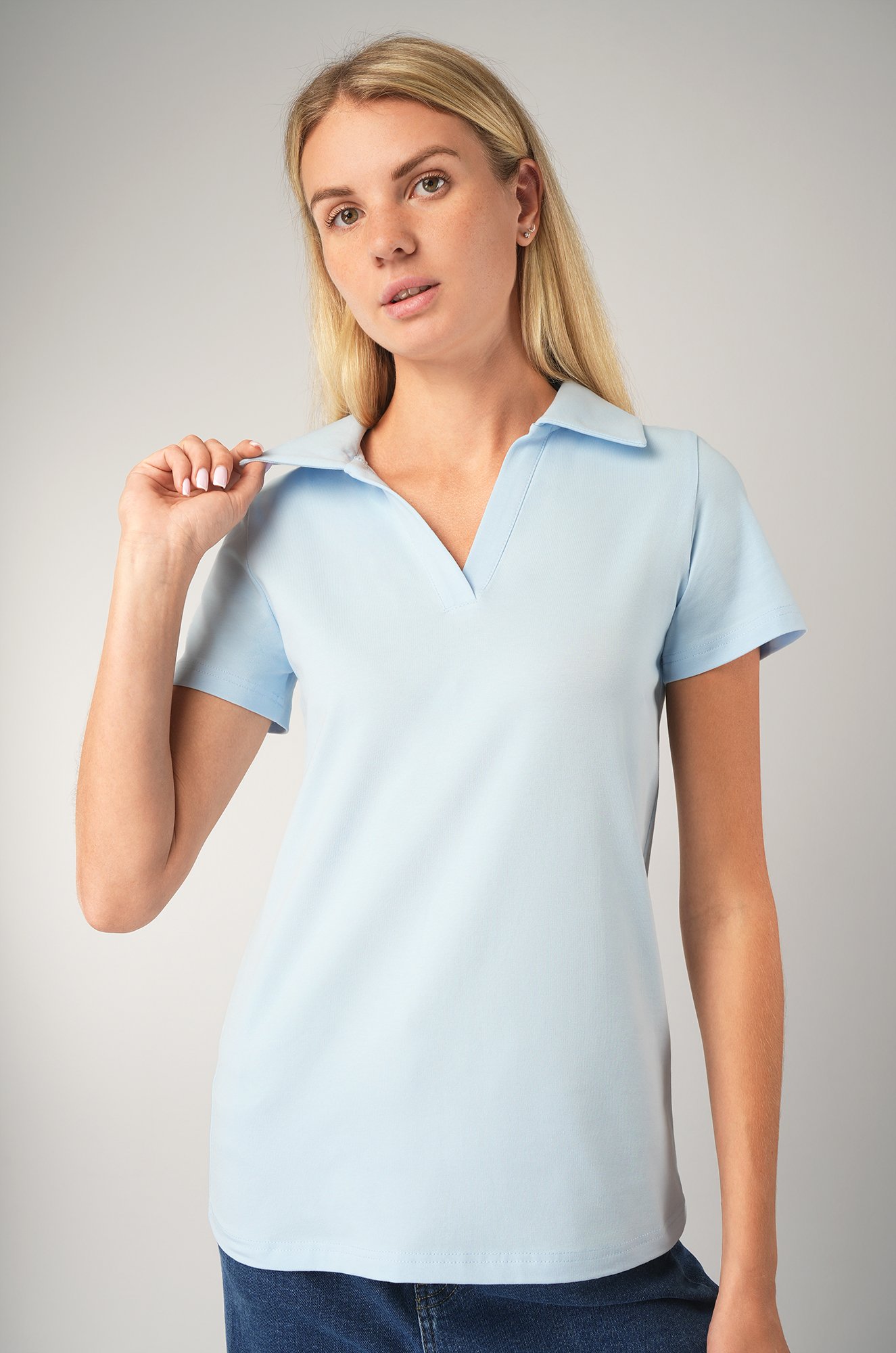 Женская футболка-поло из хлопка подарит легкость, комфорт и аккуратный внешний вид. Однотонная базовая тенниска в спортивном стиле станет твоим спутником на каждый день.