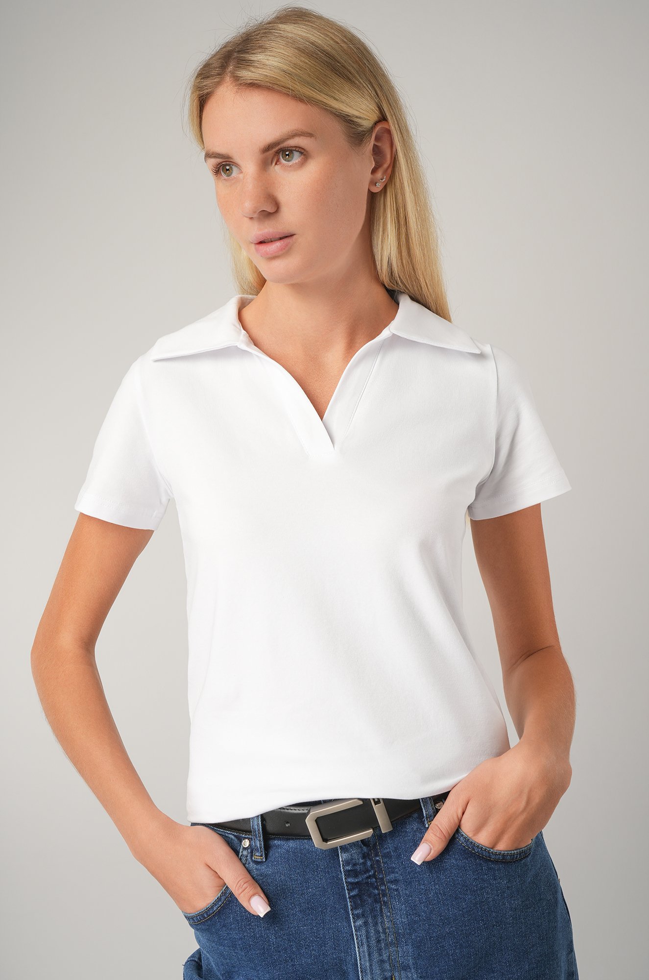 Женская футболка-поло из хлопка подарит легкость, комфорт и аккуратный внешний вид. Однотонная базовая тенниска в спортивном стиле станет твоим спутником на каждый день.