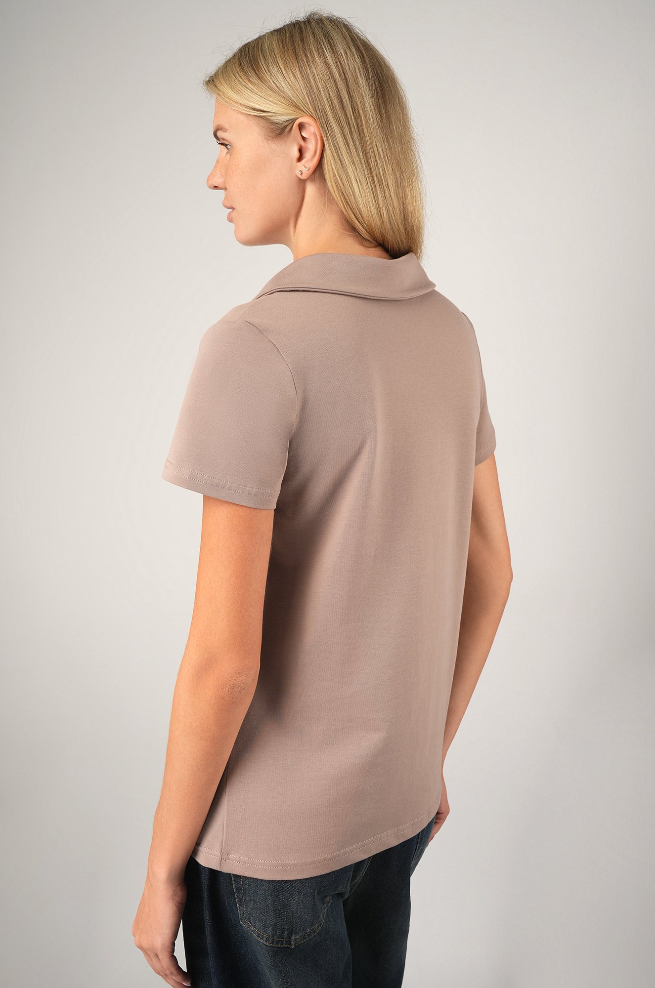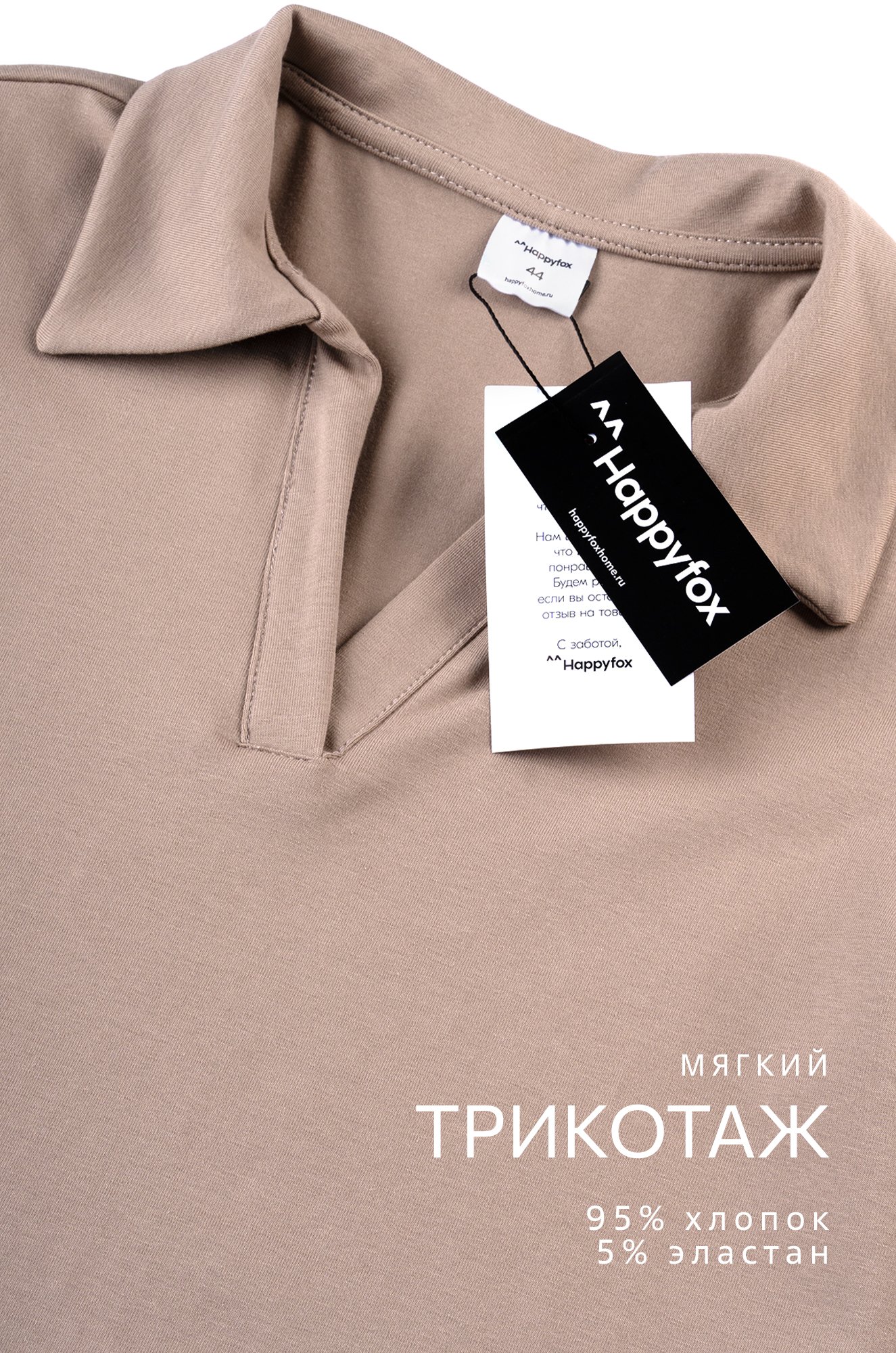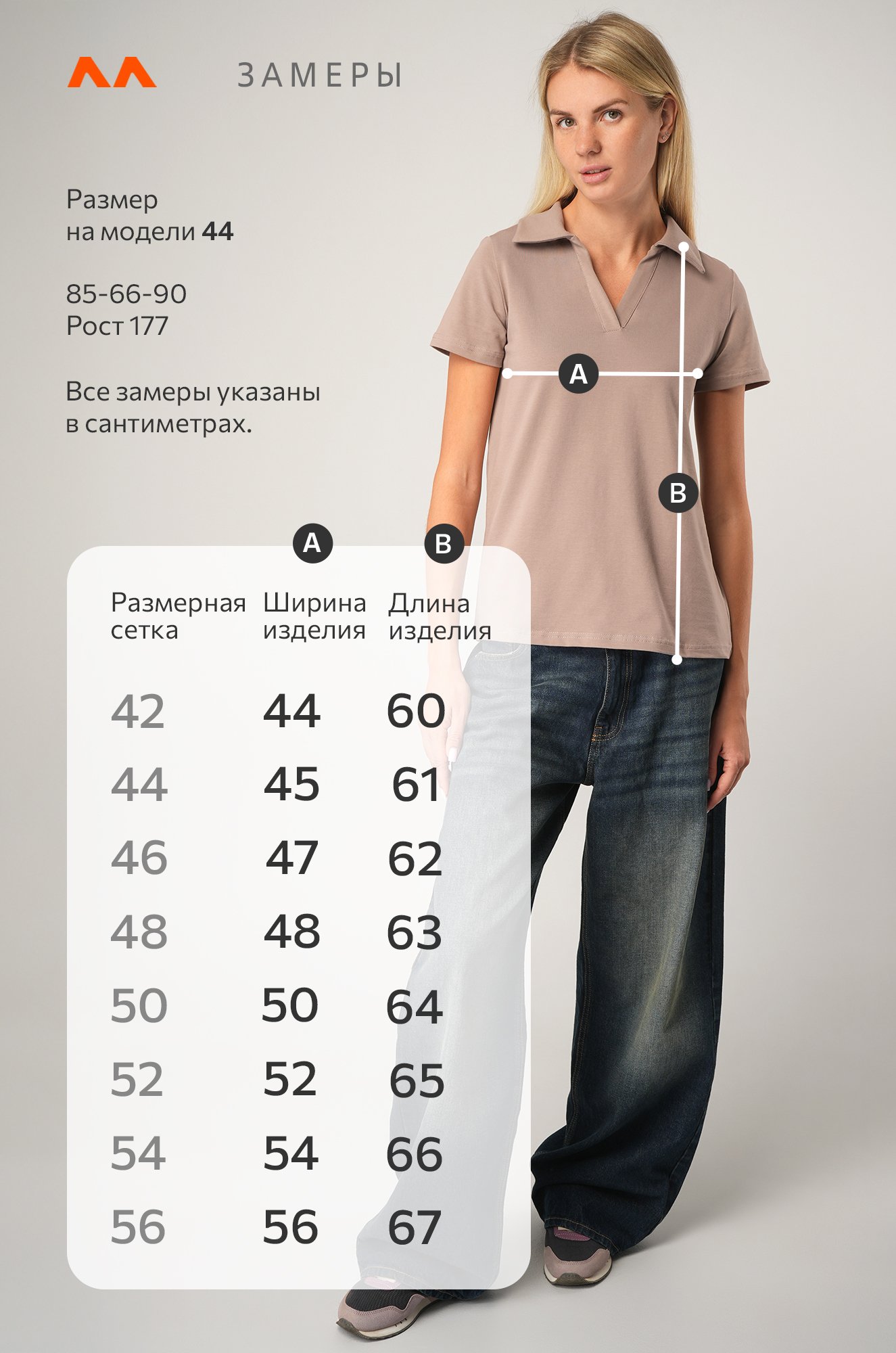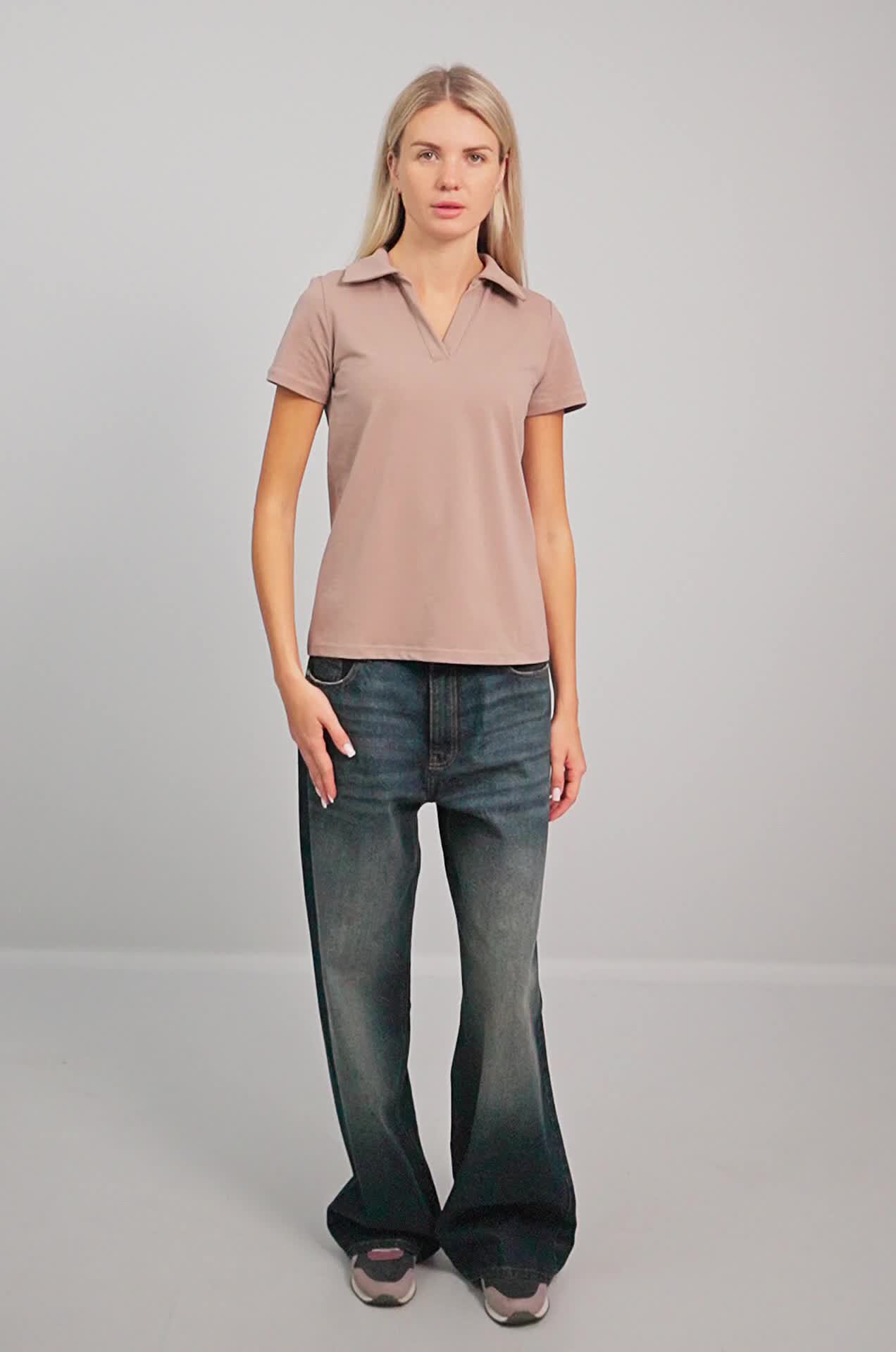 Бежевая футболка поло из трикотажа кулирная гладь выполнена в лаконичном дизайне: прямой крой, отложной воротник и V-вырез добавляют изящности. Хлопковое поло подойдет для похода в офис, на прогулку и для дома.