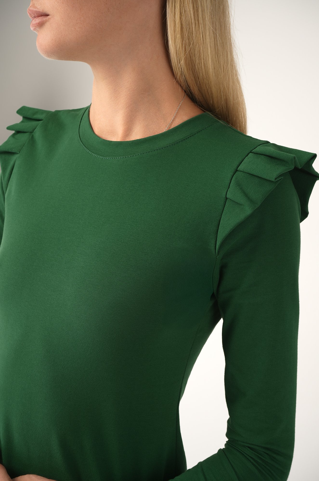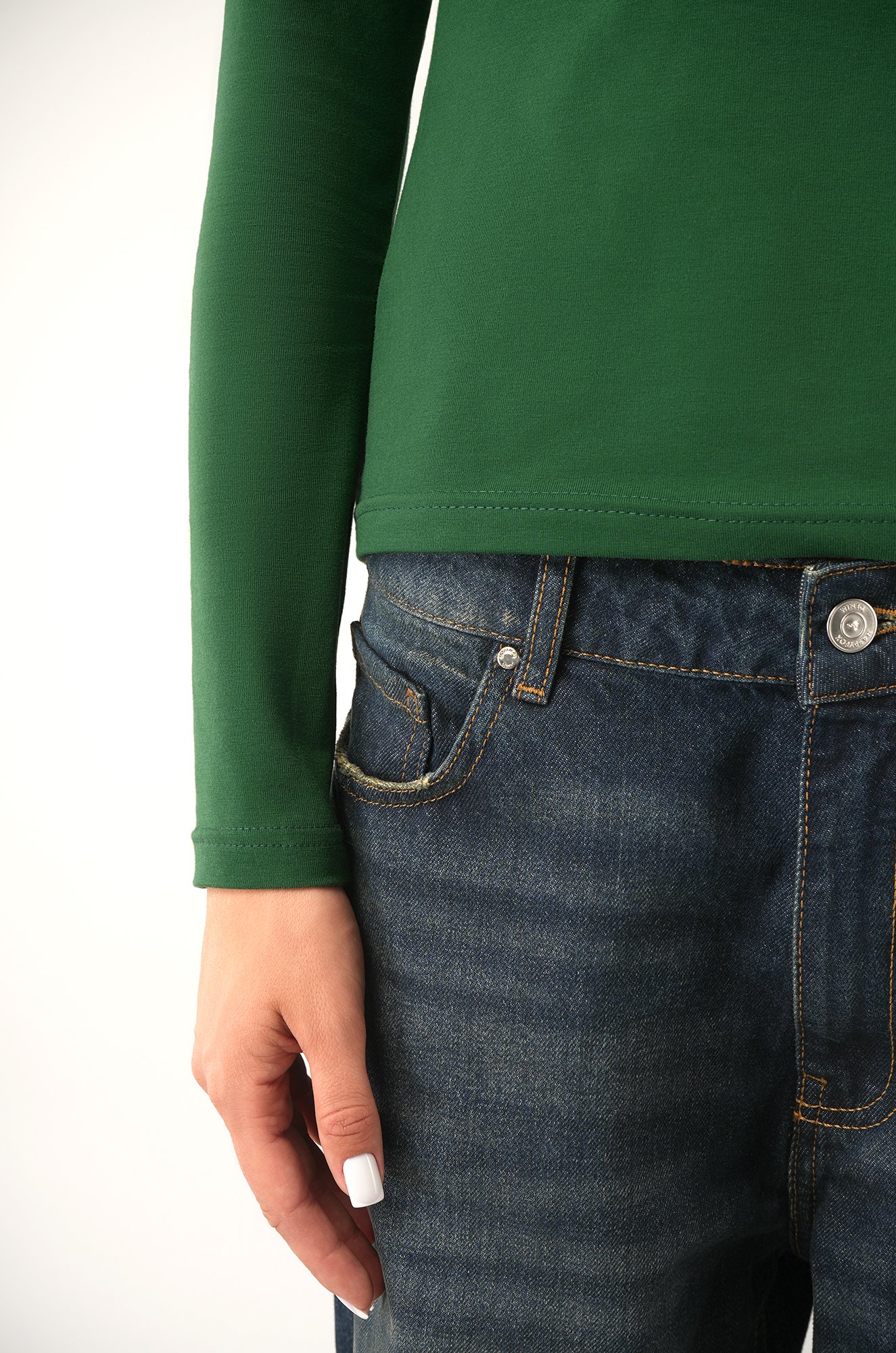 — однотонный зеленый лонг выполнен из мягкого трикотажа на основе хлопка с лайкрой;