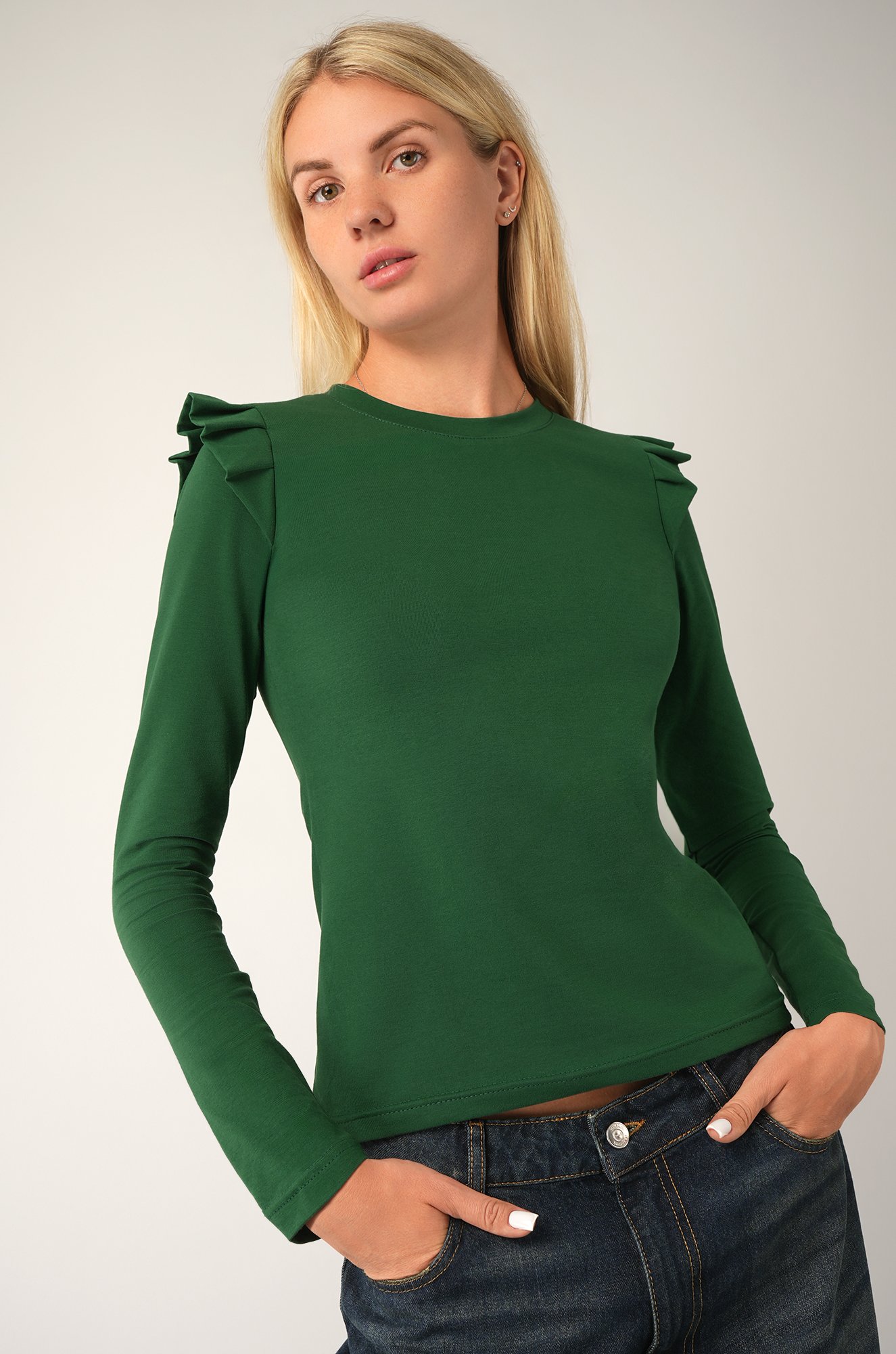 — облегающий лонгслив подчёркивает фигуру, не сковывая движений;