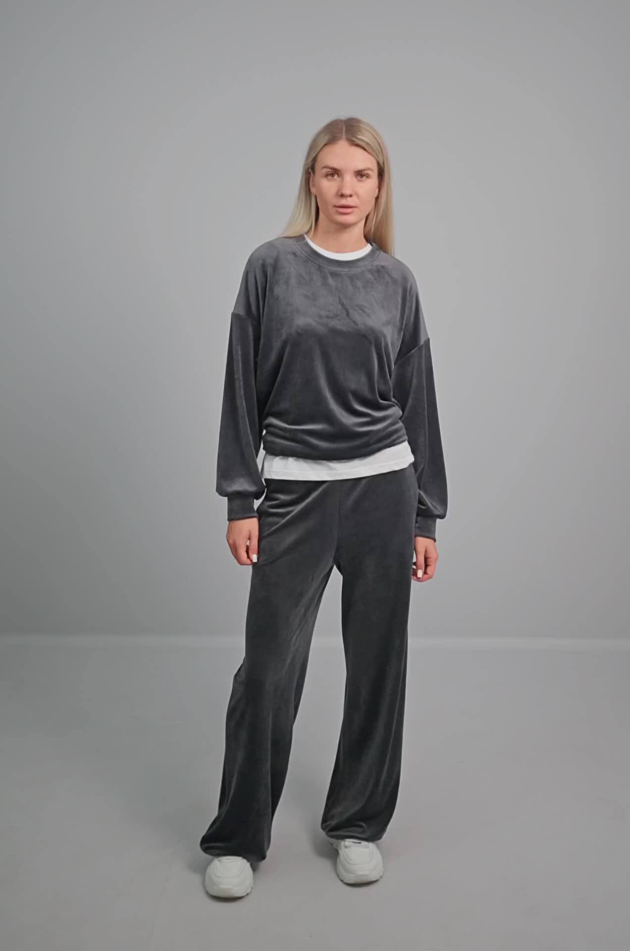 Повседневный велюровый костюм с брюками имеет свободный прямой крой и удобен для дома и прогулок. Бархатный костюм подойдет для путешествий и домашнего уюта. Серый костюм идеален для спорта, осенних и весенних образов.