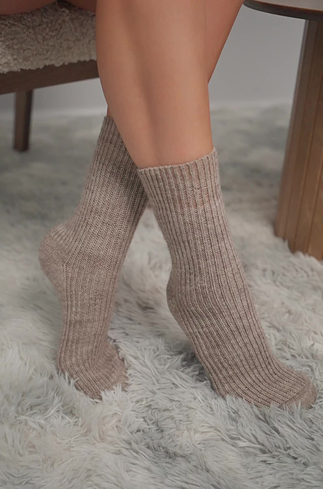Вязаные женские носочки – именно то, чтобы зима была уютной и красивой! Тёплые, плотные и с шерстью в составе, они подарят комфорт в холодные дни и станут базовым элементом для твоего гардероба. Однотонные бежевые носки в рубчик подчеркнут твой стиль и будут радовать каждый день.