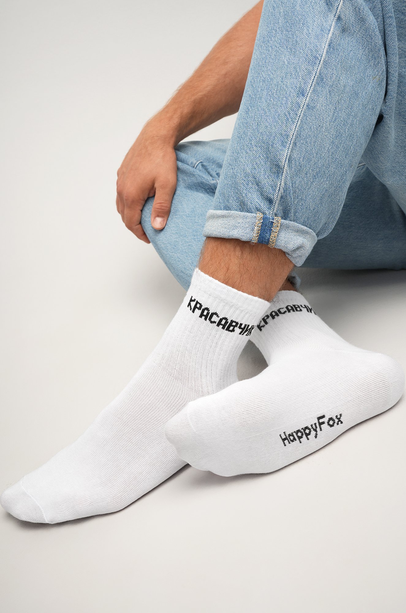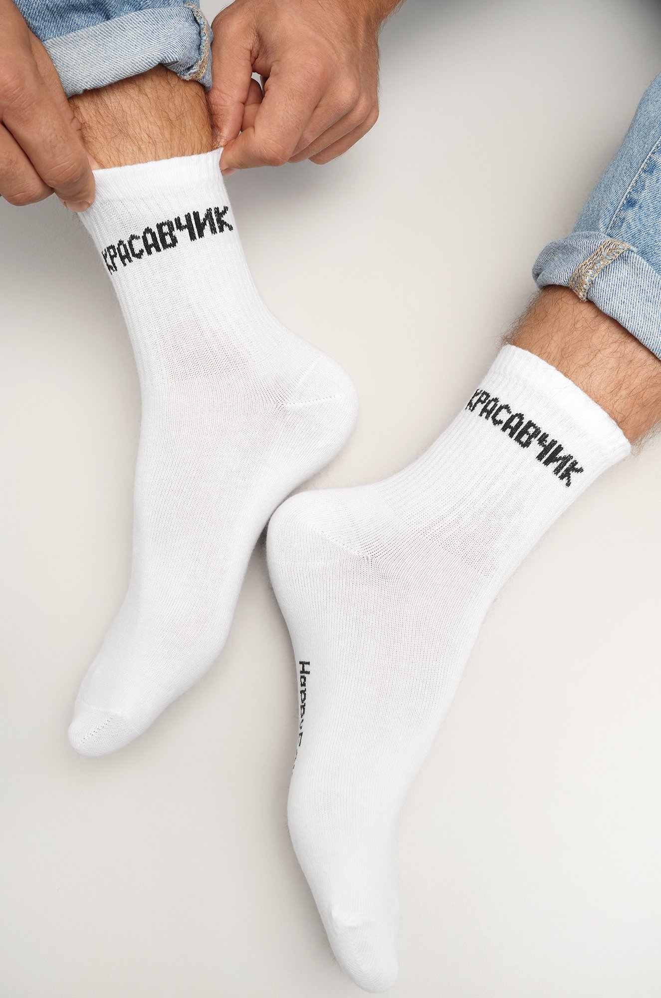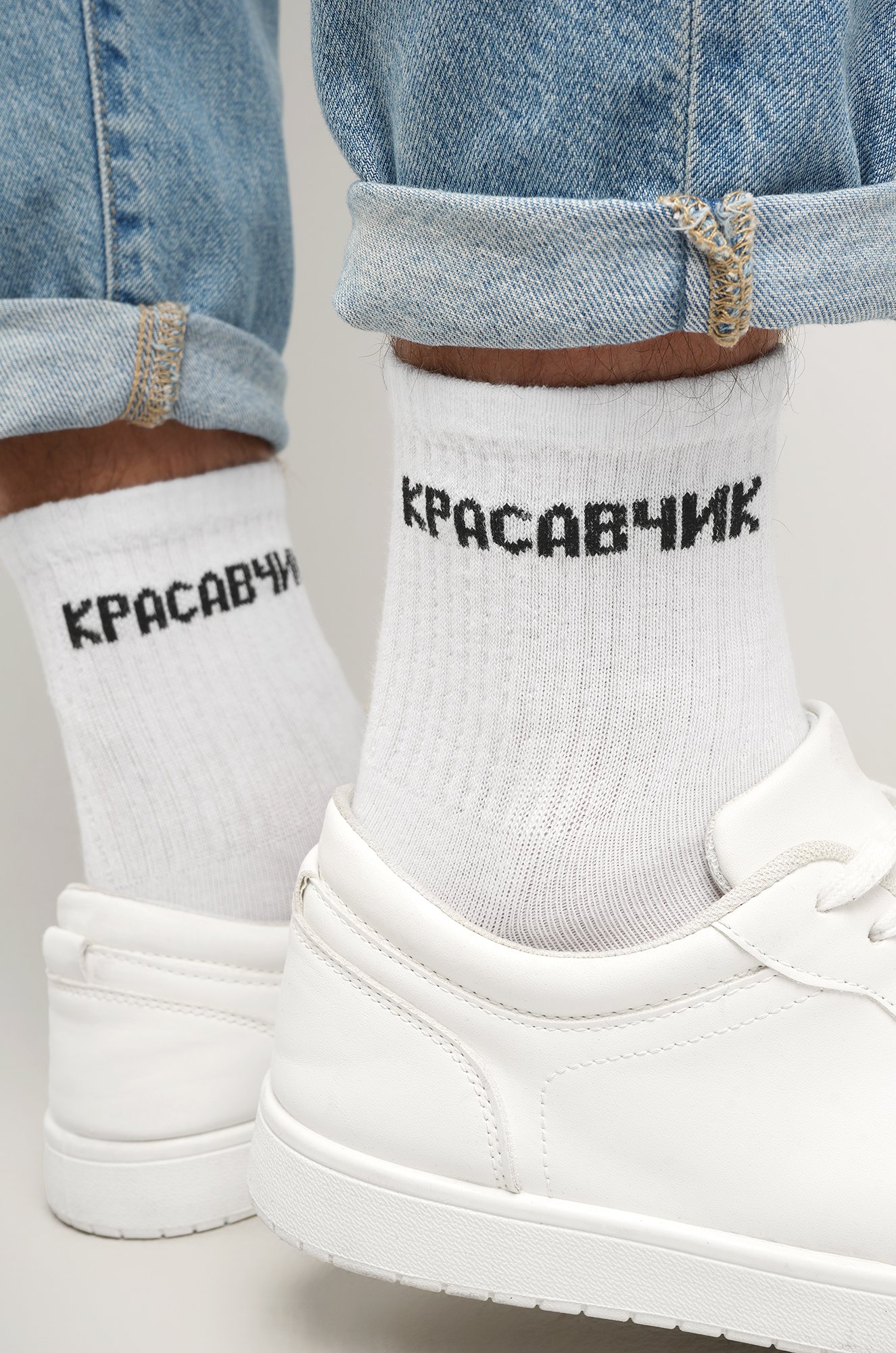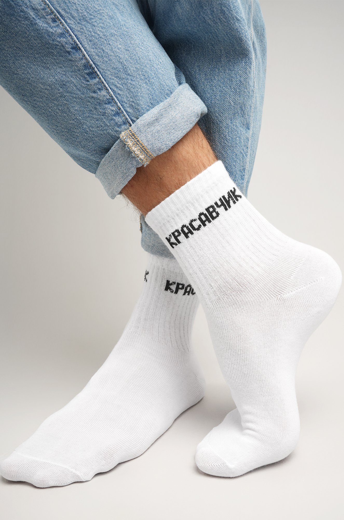 Добавь немного юмора и стиля в повседневный образ! Белые носки с прикольной надписью Красавчик для мужчин поднимут настроение тебе и окружающим.