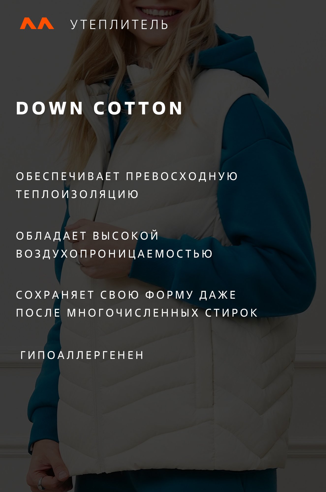 – инновационный утеплитель Down Cotton, синтепон (плотность 160 г/м2) – лёгкий, тёплый и держит форму;