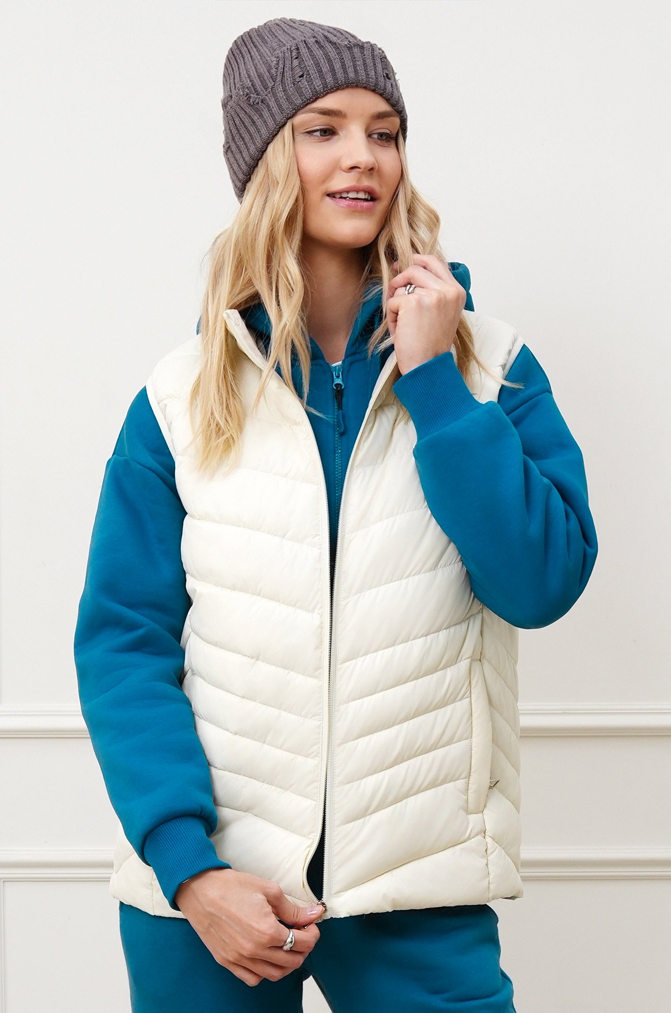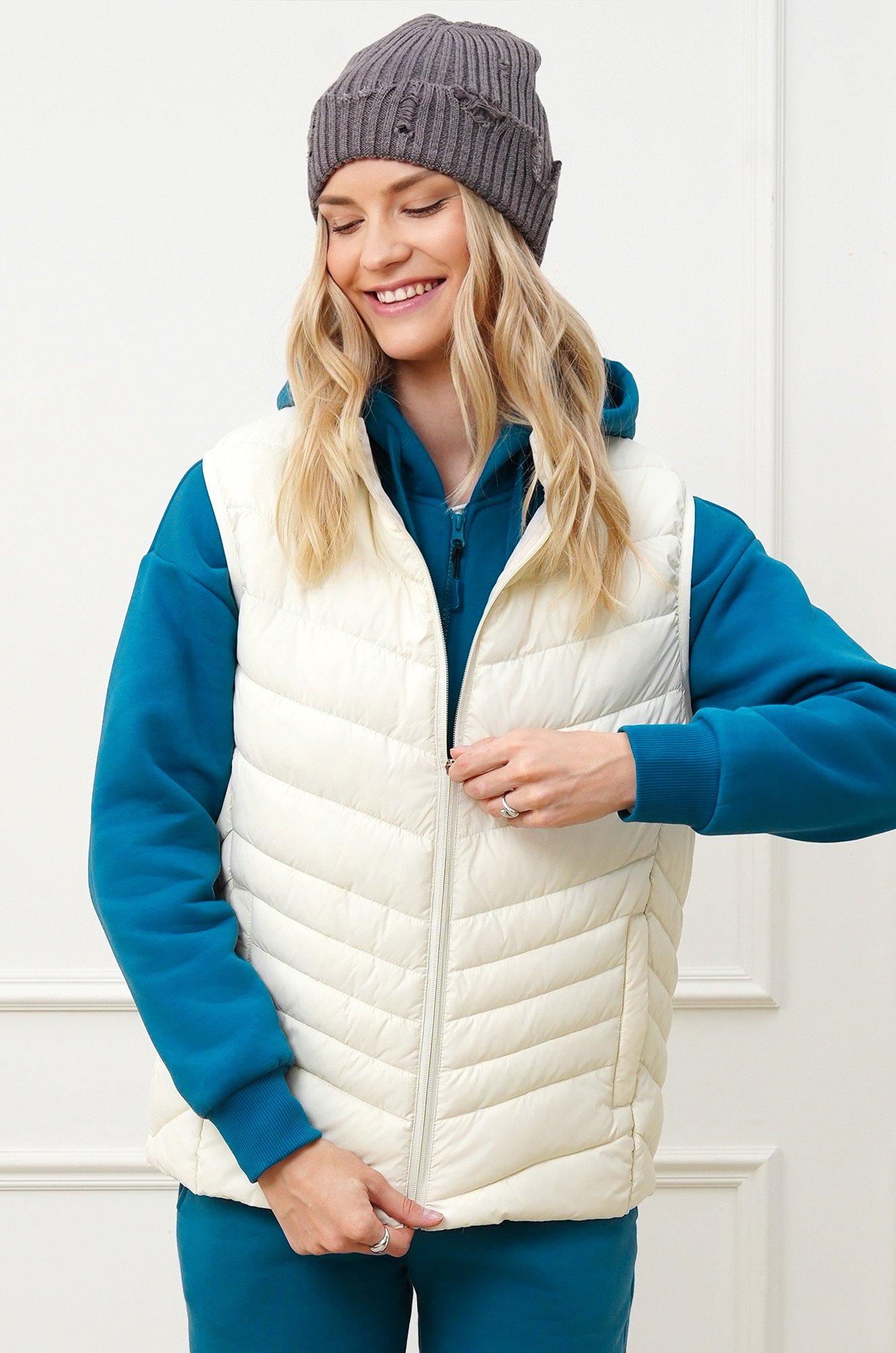 Встречай эту осень стильно! Женская утеплённая жилетка на молнии от Happyfox — это тот самый штрих, который добавит твоему образу лёгкости и уверенности. Стёганая безрукавка молочного цвета подчёркивает силуэт, выглядит актуально и при этом дарит ощущение тепла и уюта.