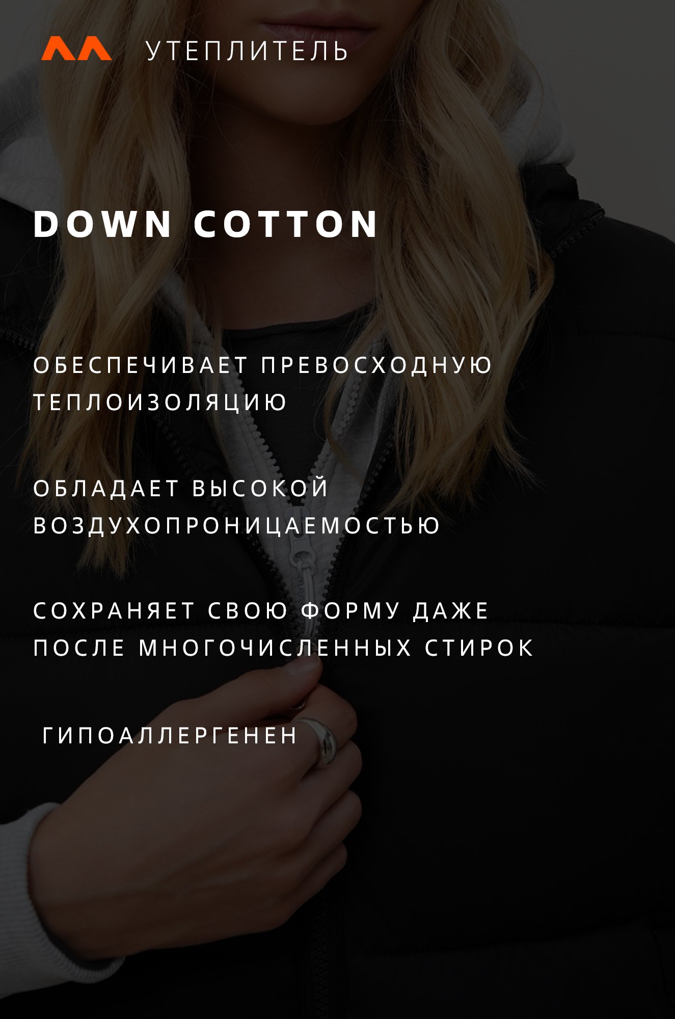 — утеплитель Down cotton (синтепон) с оптимальной плотностью 200 г/м2;