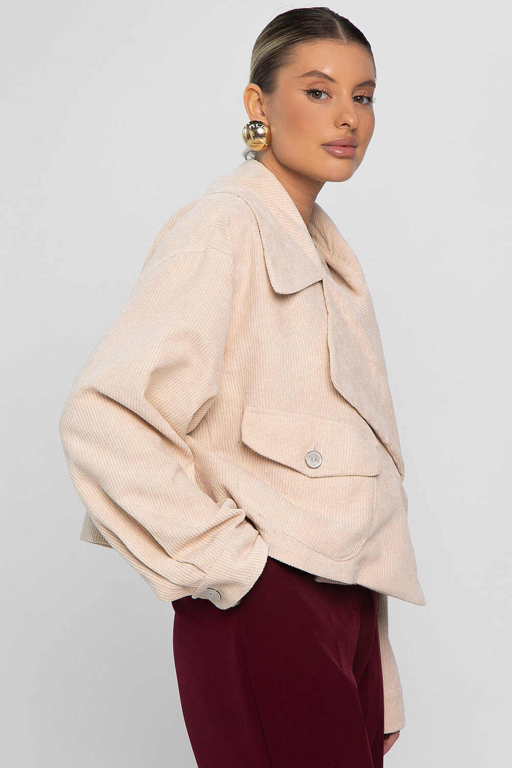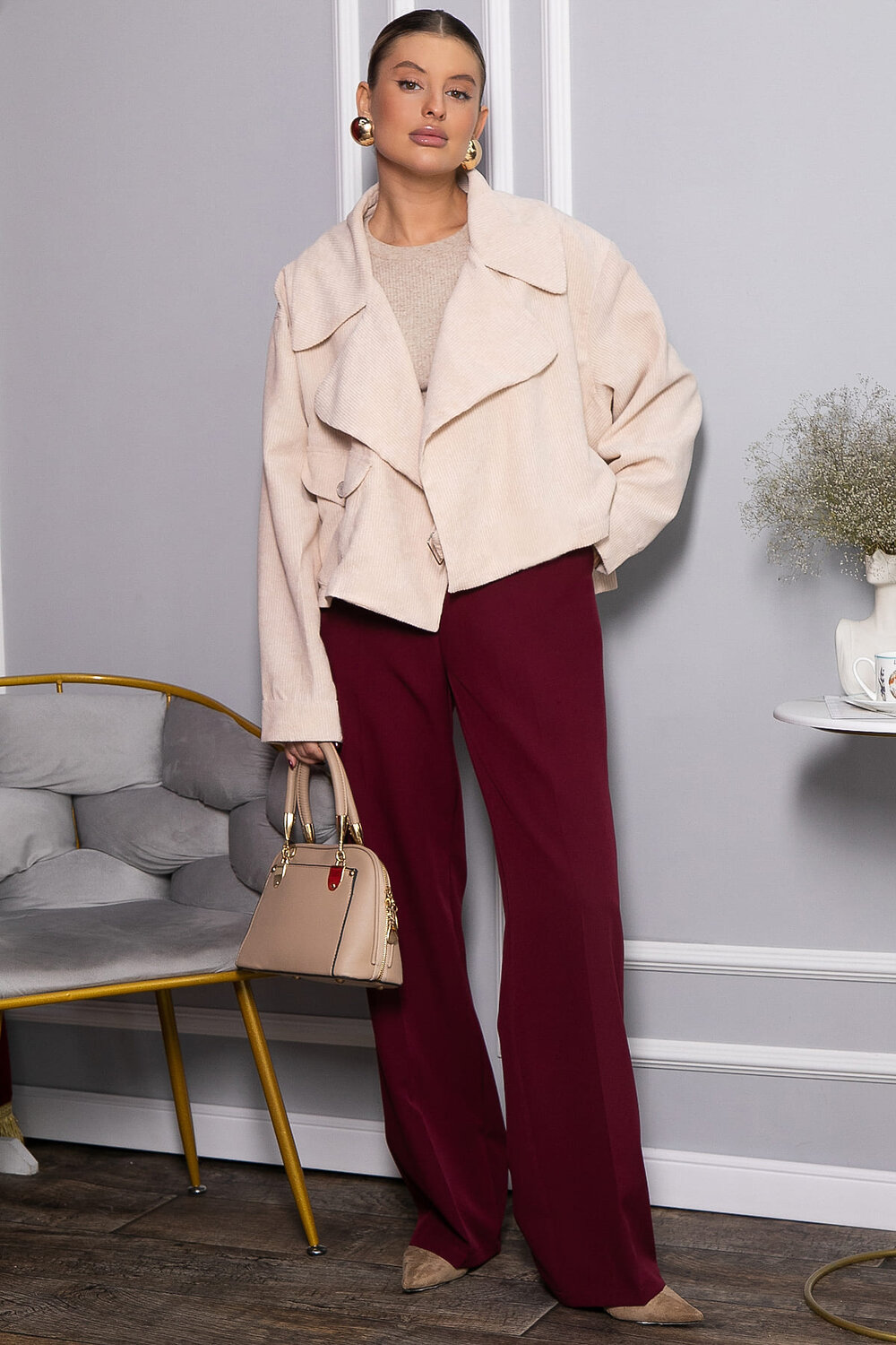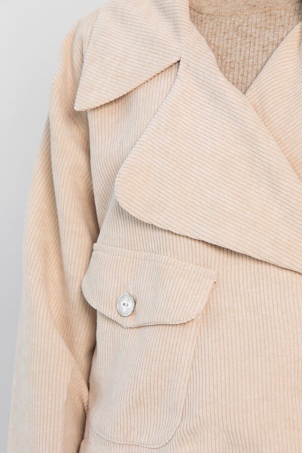 Укороченный вельветовый жакет – это утонченный и женственный элемент гардероба, способный дополнить любой образ. Он отлично подходит как для повседневных прогулок, так и для создания романтичного ансамбля. Рекомендуем сочетать его с брюками из той же ткани прямого кроя. Жакет имеет оригинальную застежку на хлястик. На правой полочке расположен асимметричный накладной карман с клапаном. Рукава со спущенной проймой, а низ рукава оформлен застегивающейся манжетой.